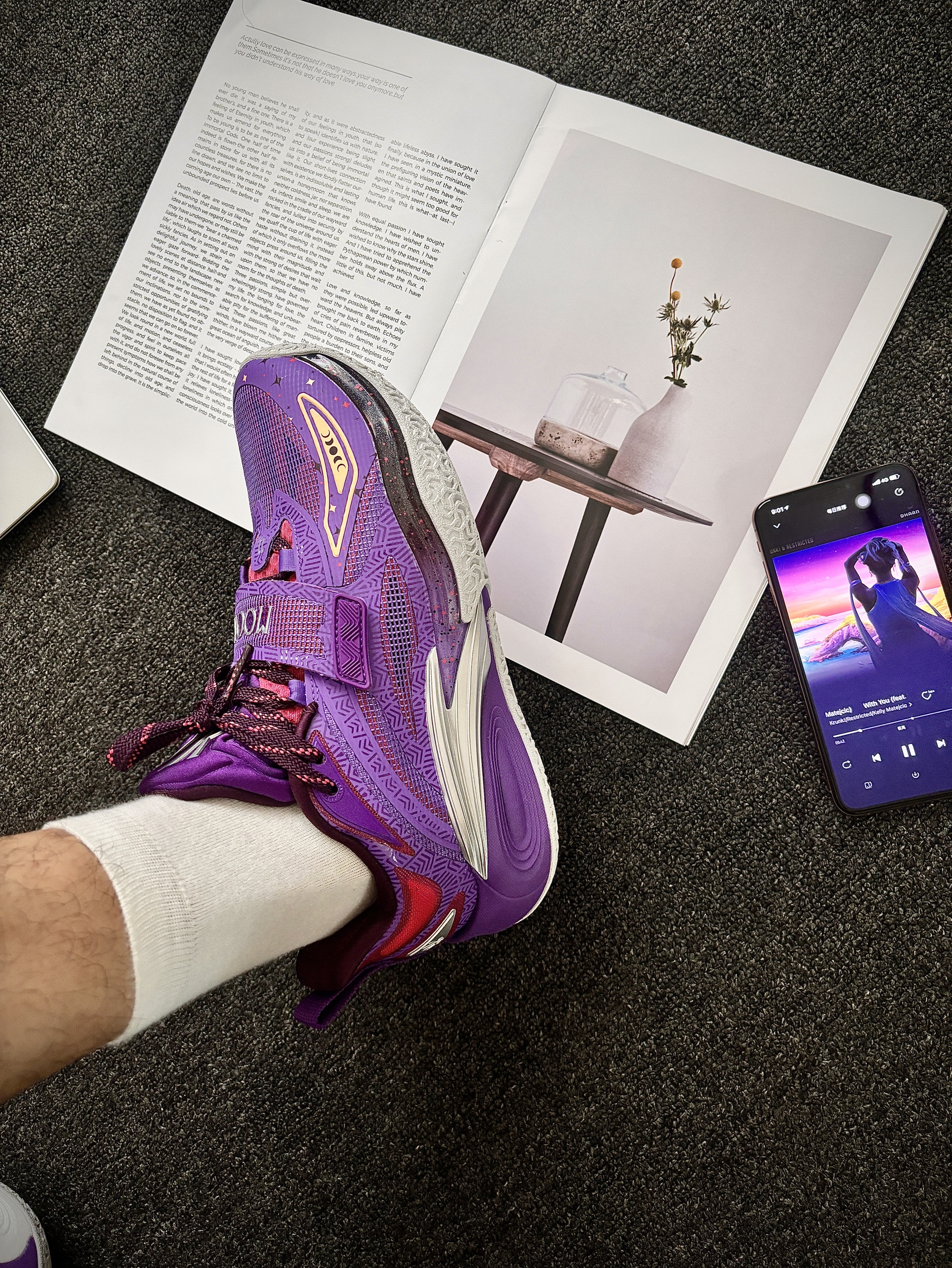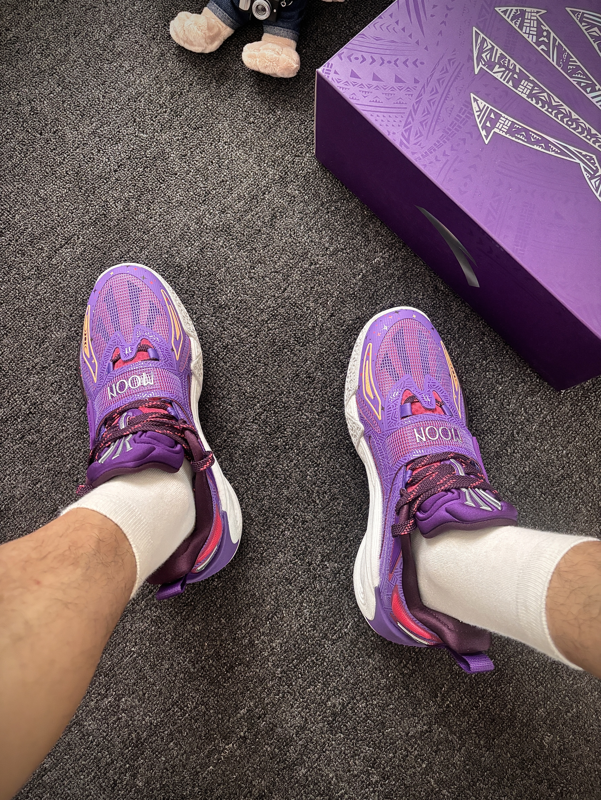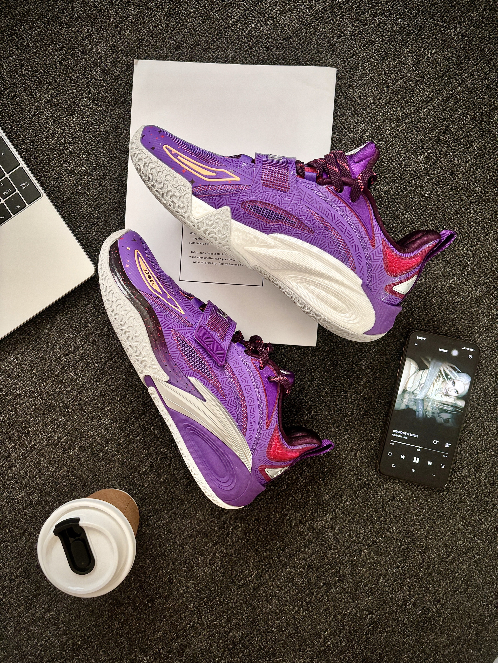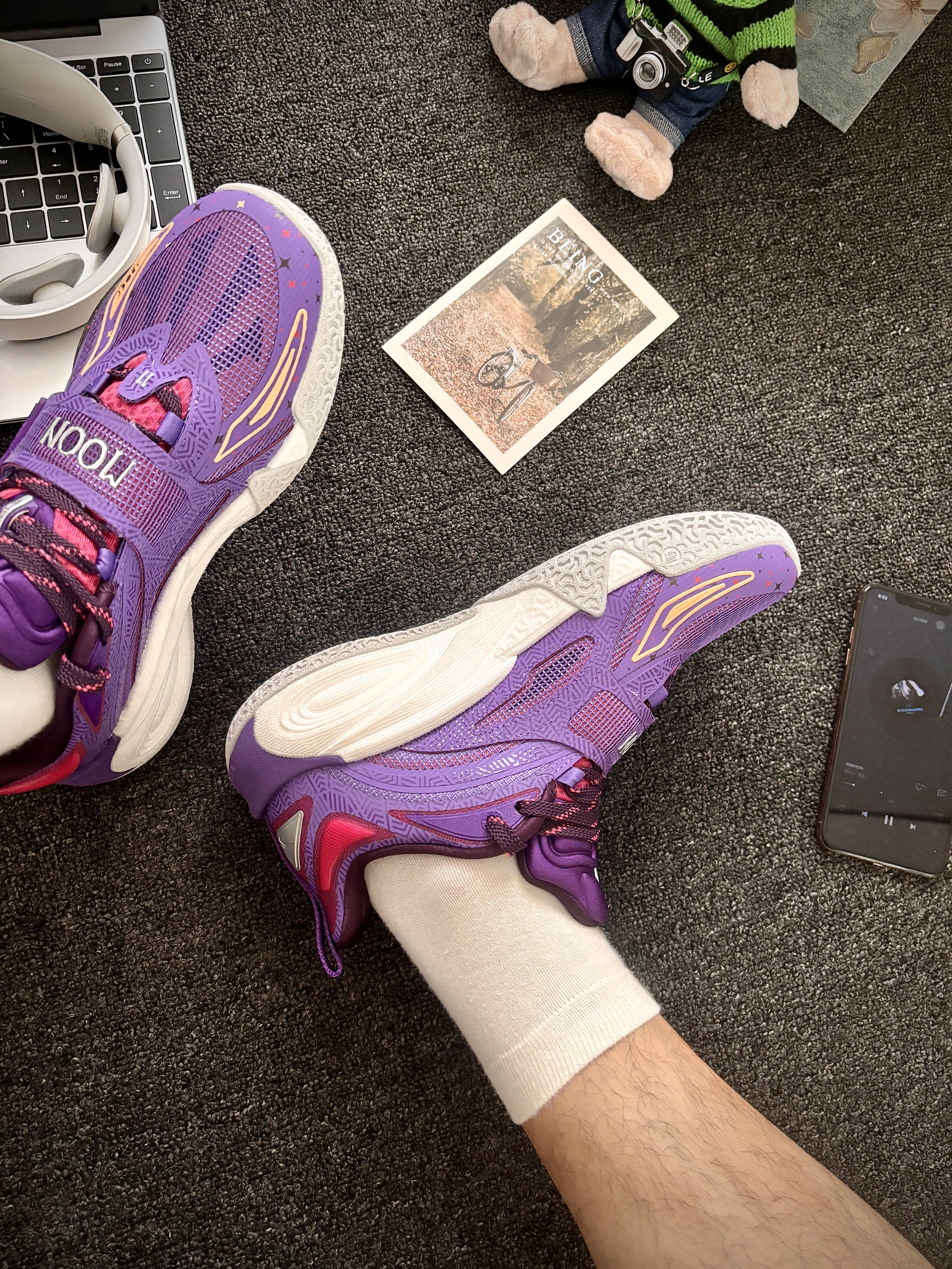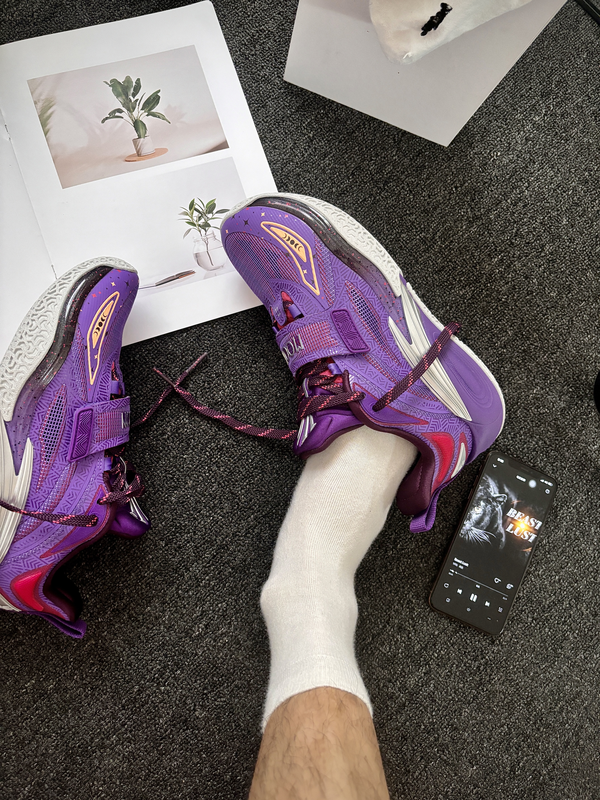 安踏 这双“曜月”配色(紫银红)到手穿了小一周,打完几场球,就一句话:真挺得劲儿! ✅ 先说脚感: “氮科技中底”真不是吹的!上脚第一感觉是 软弹舒服,跑跳落地膝盖不震得慌(懂得都懂😅)。 最惊喜的是 启动不拖沓!前掌蹬地那一下反应挺快,突破变向的时候感觉脚底下有劲儿,不泄力。跟以前穿过的某些“踩屎感”太软的鞋不一样,这个弹大于软,更适合打球发力。 ✅ 颜值和细节: 这个“紫银红配色”实...