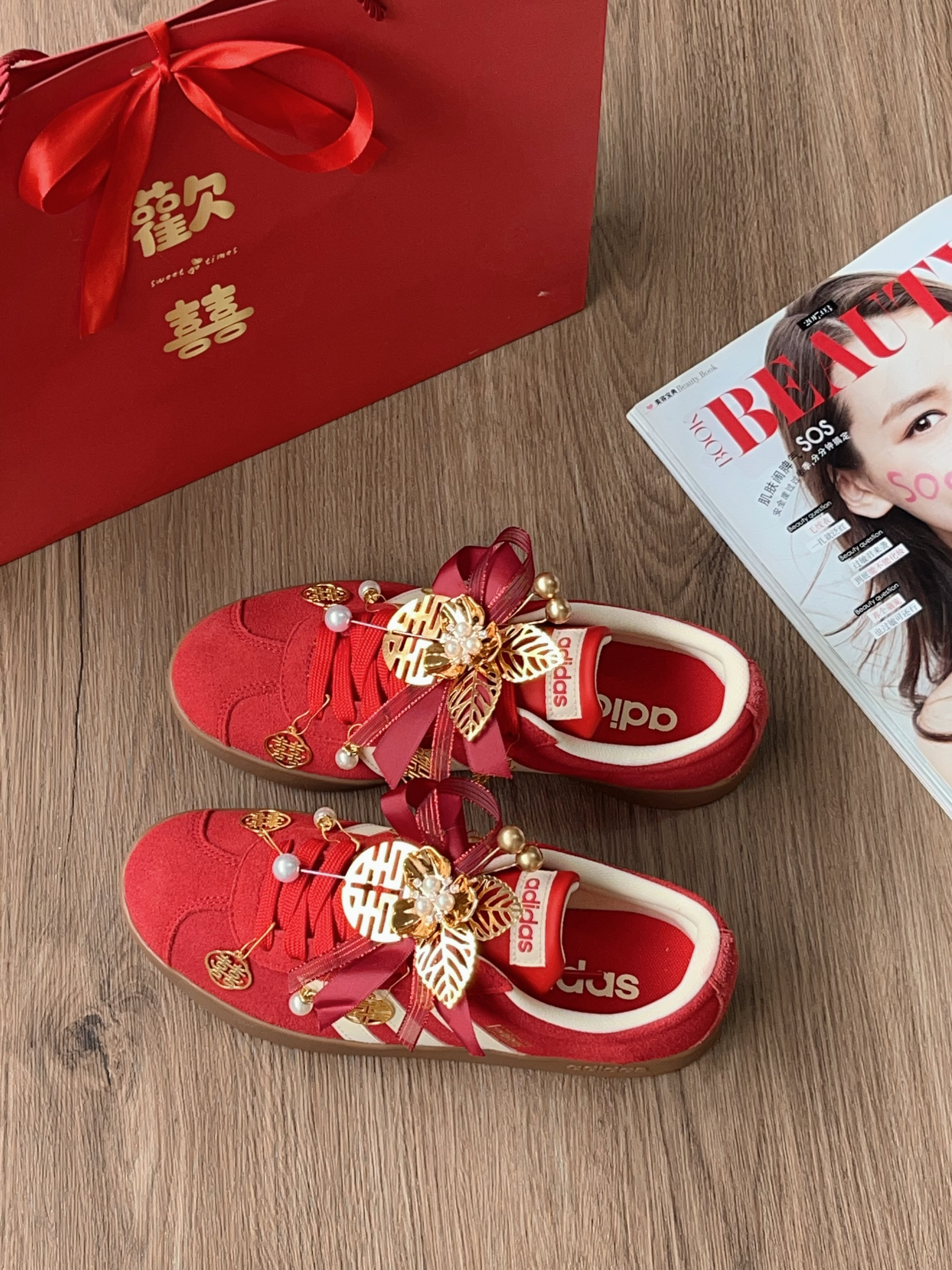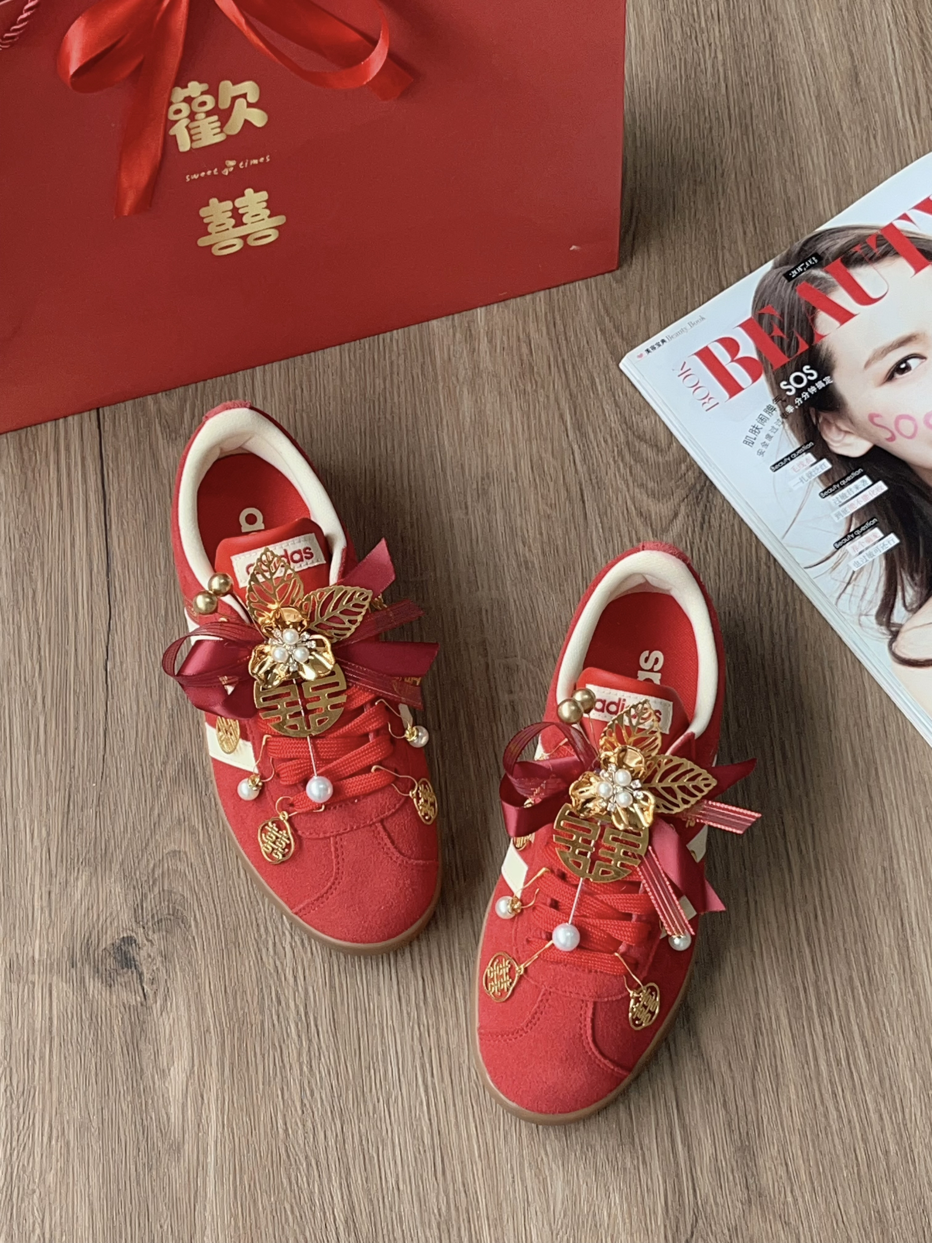 马上结婚挖到超绝的婚鞋 红鞋配金饰,“囍”字和珍珠点缀,中式浪漫拉满,日常穿也很出挑,直接锁死这种独特又好看的设计,一整个爱住了!