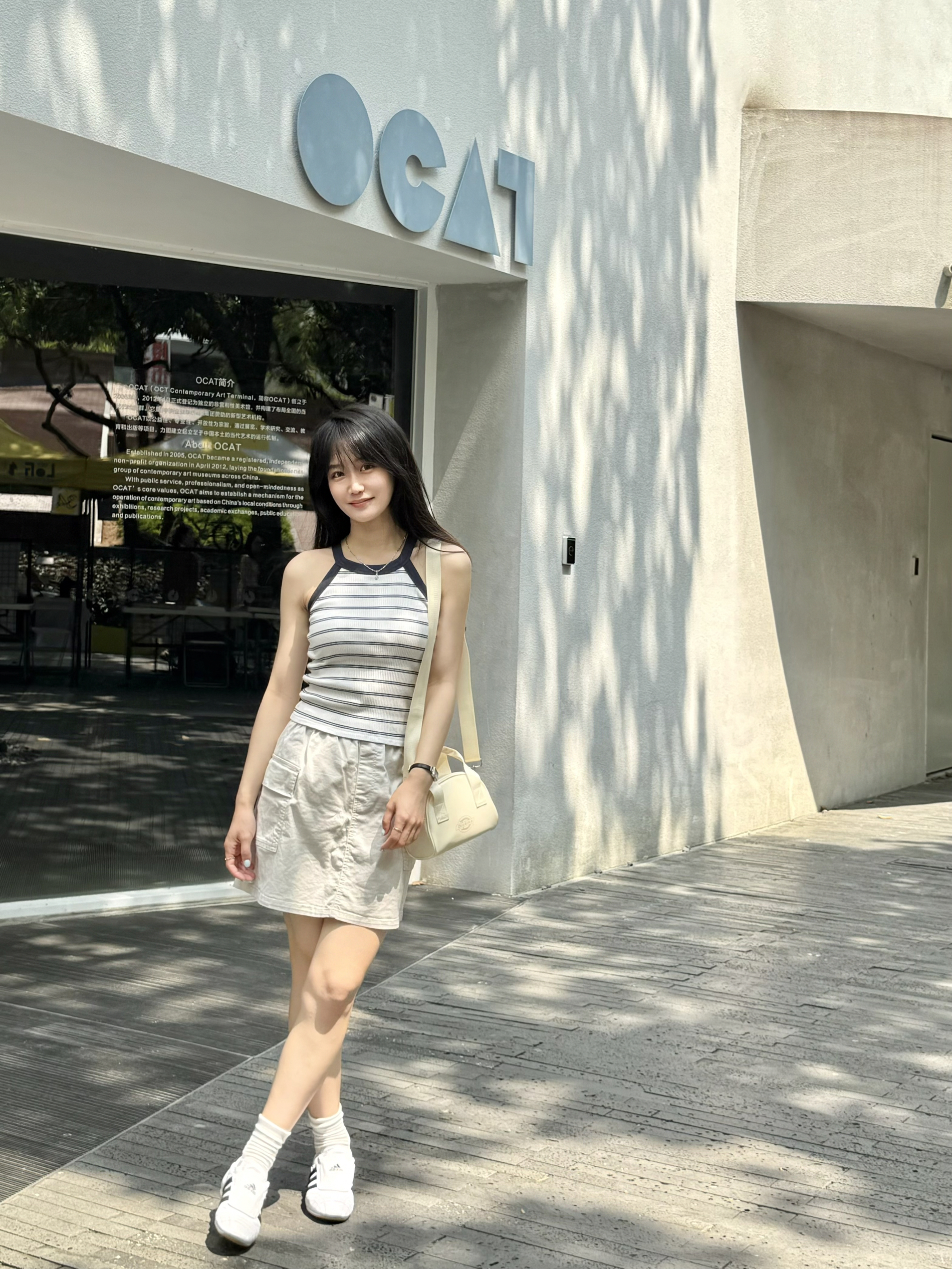 夏天出街 主打清爽又舒适 条纹比心➕工装裙 在搭配奶油色系包包 松弛感轻松 get get!