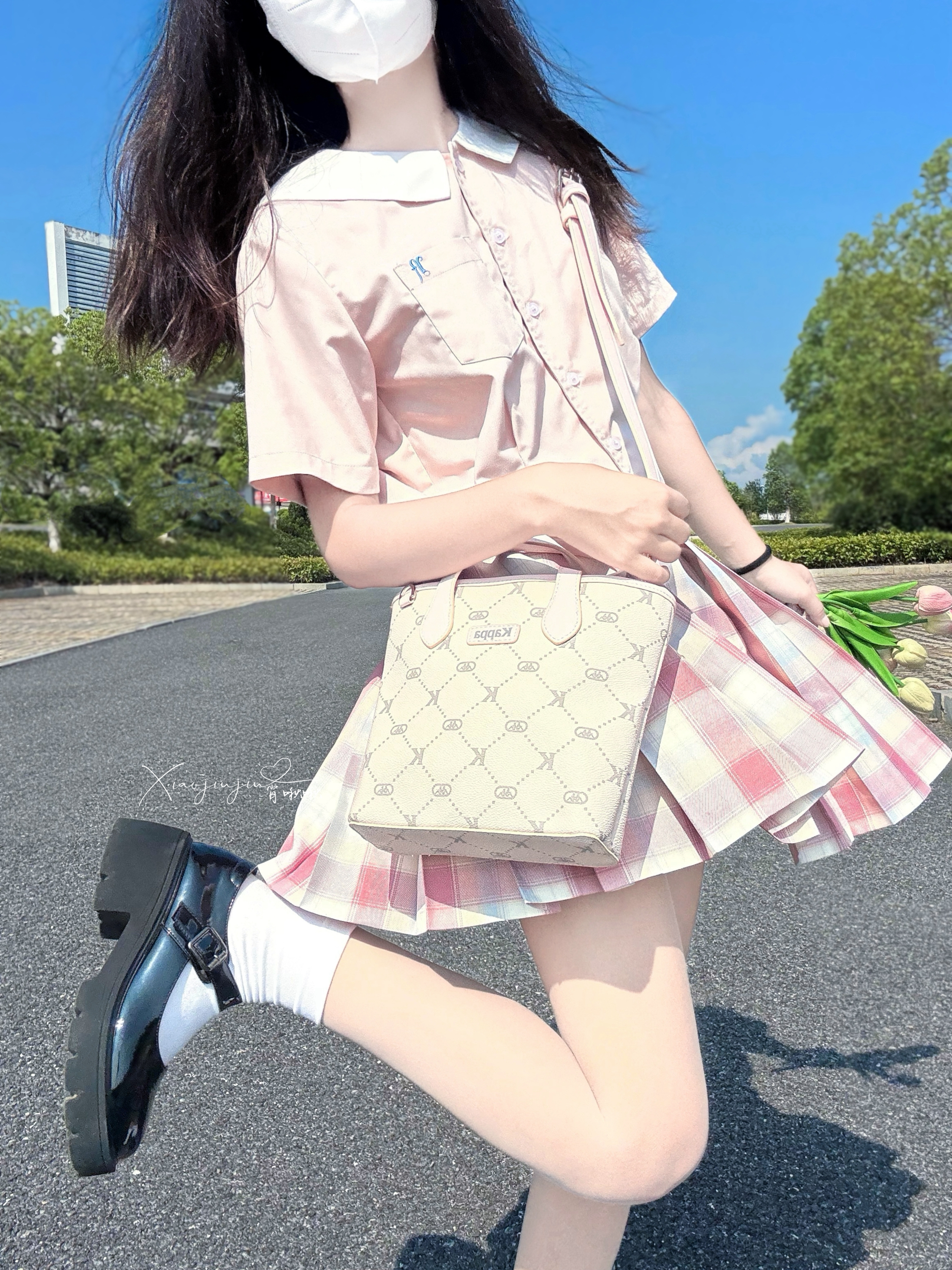 身高|体重:160/43 🧍♂️ 穿搭风格:jk甜美风 👔 上衣:团团的魔法庙会 👖 下装:小偆 👟 鞋子:伯爵猫 🎒配饰:kappa