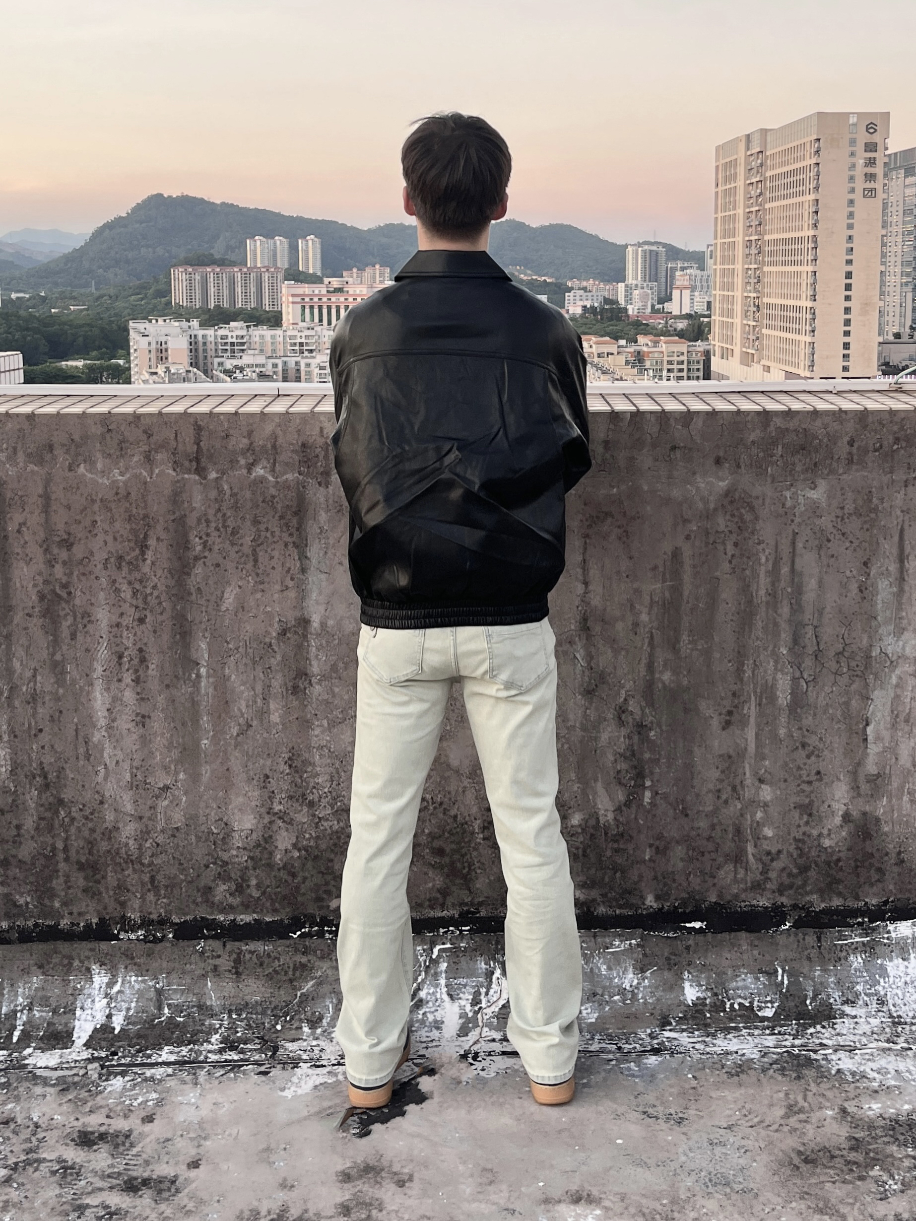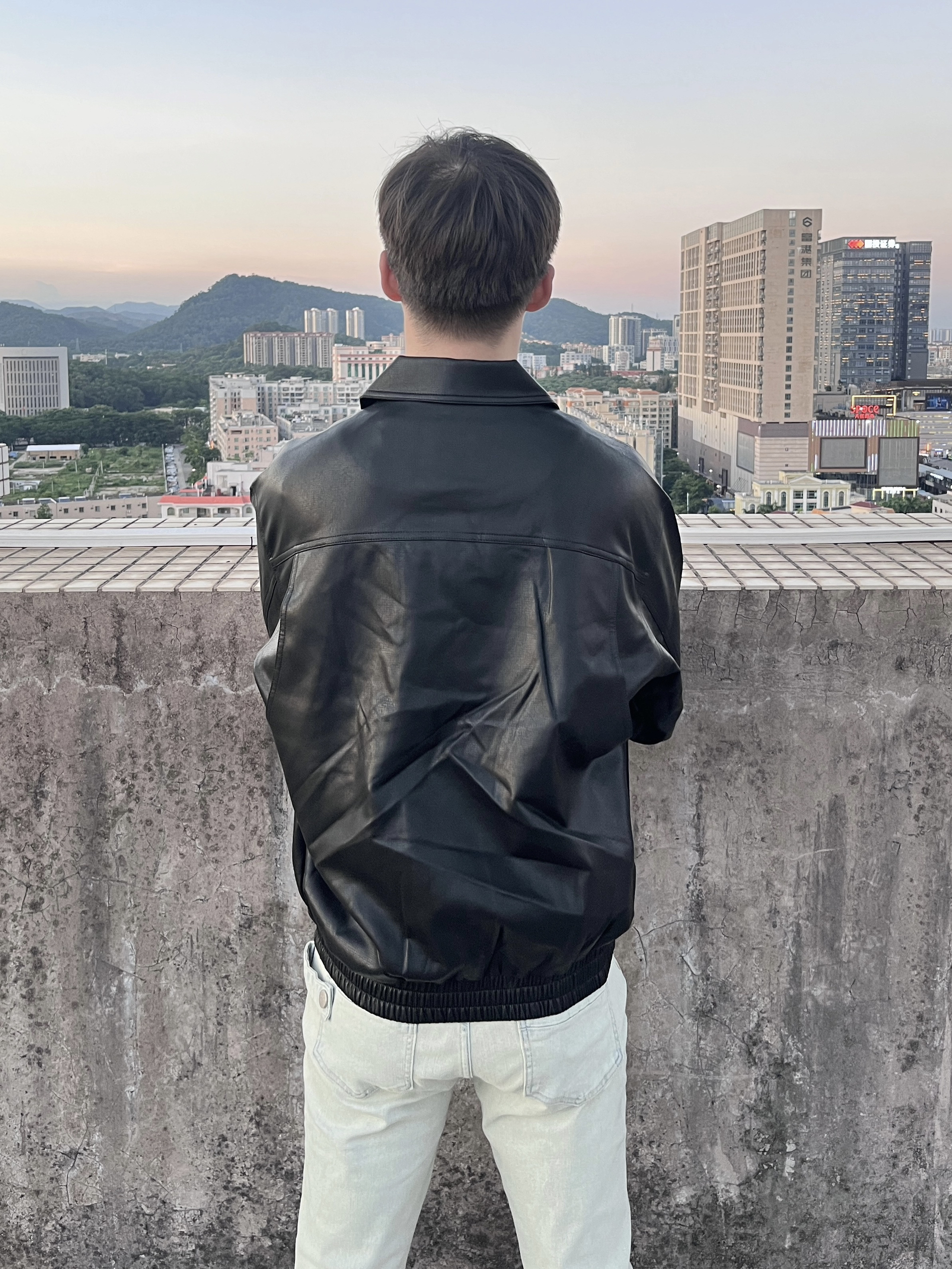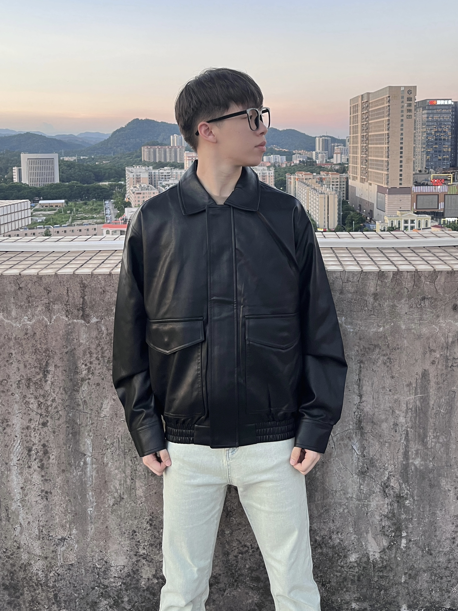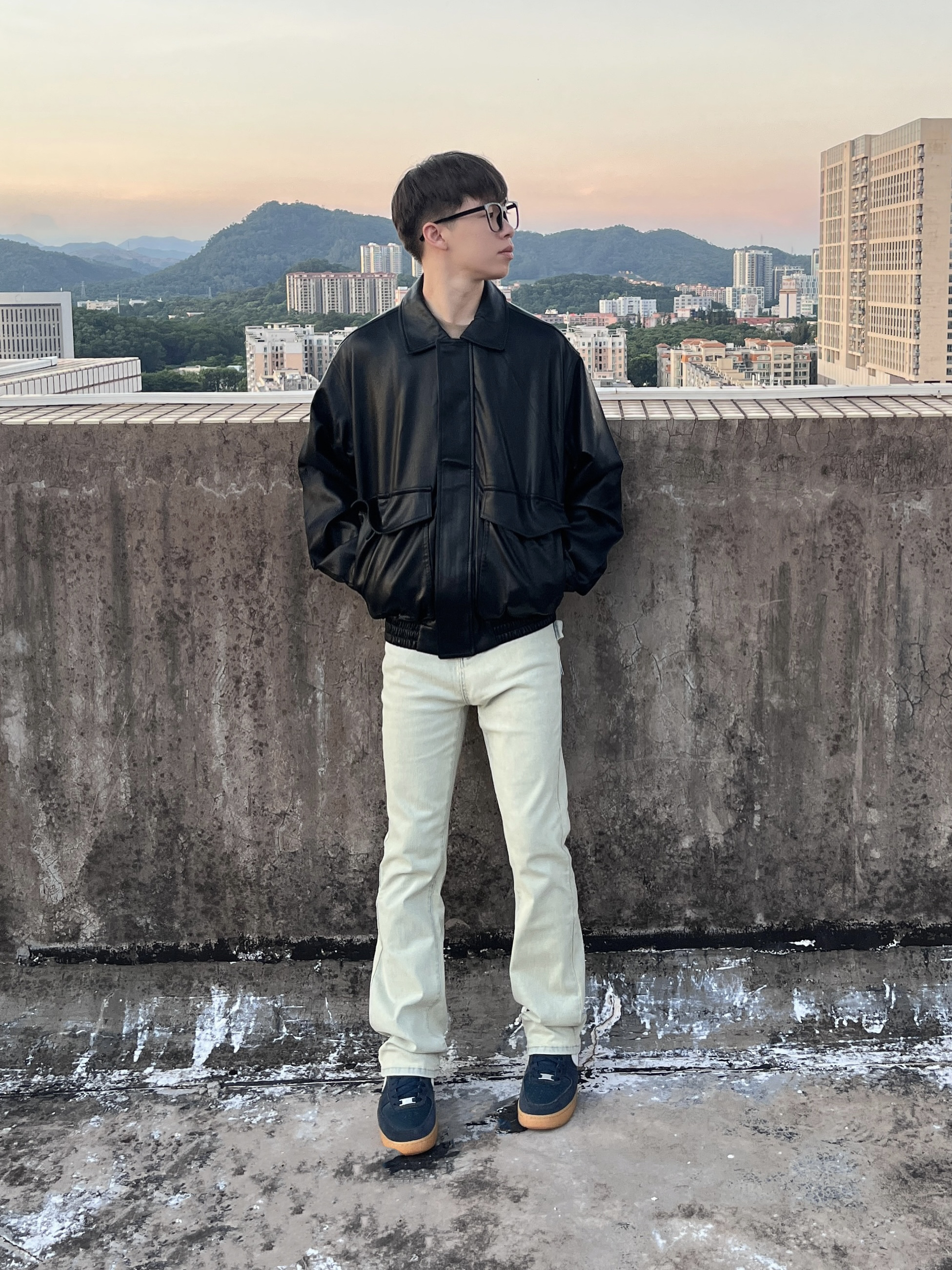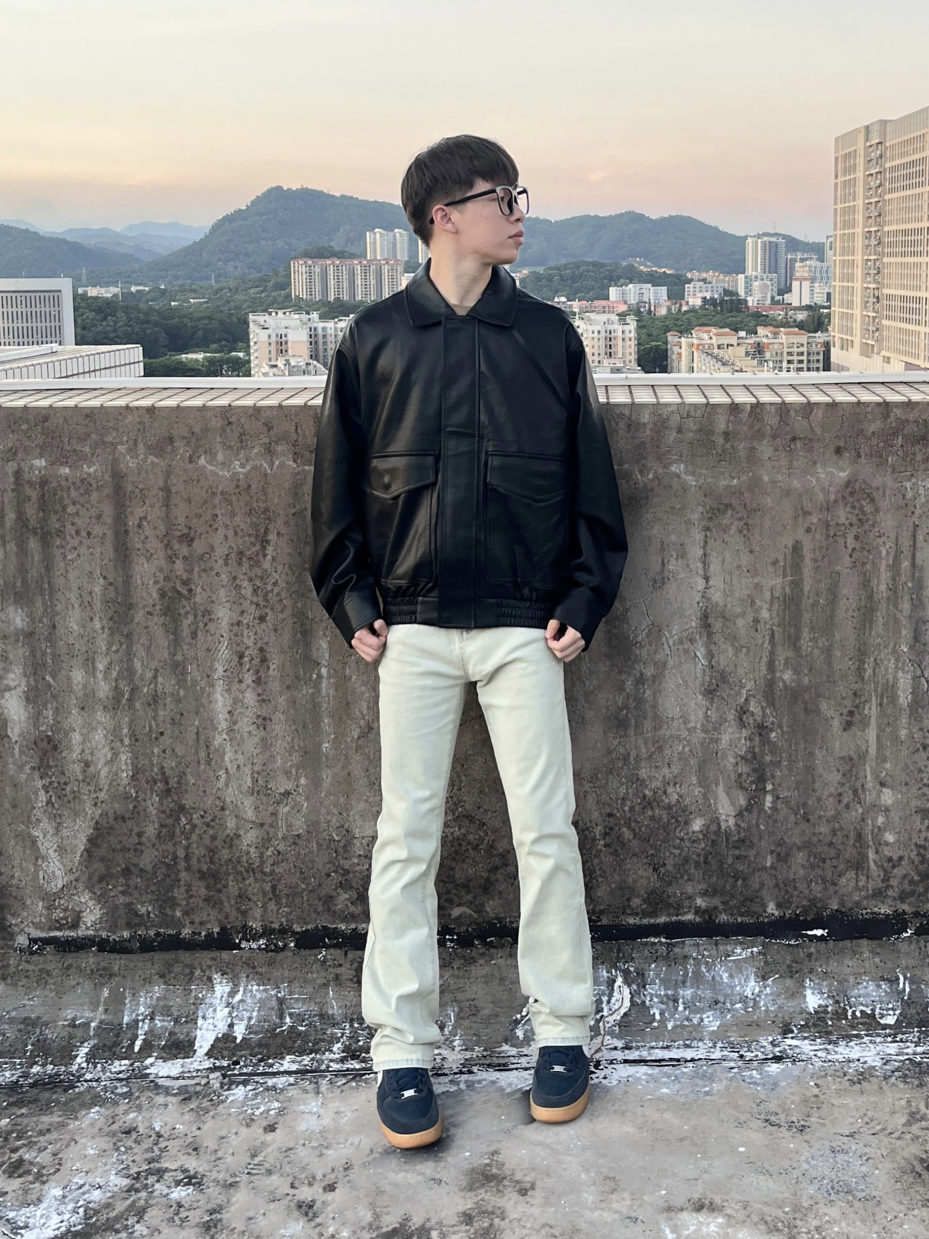 今日份穿搭分享look👀 衣服是 gxg jeans 的复古夹克外套 PU皮面料质感满满 上身版型也很正 再配上一条黄泥色直筒牛仔裤修饰腿型 一套搭配下来 户外出行高街风拉满🔥