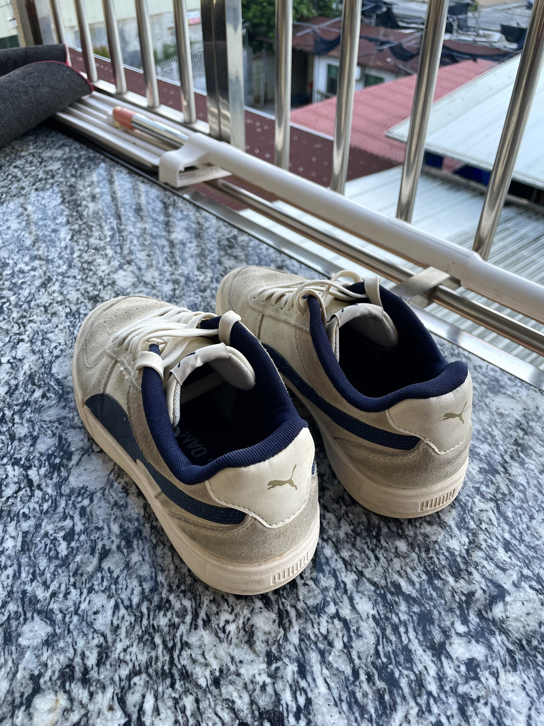 分享一双米蓝色彪马板鞋!颜值突出穿着舒服噢~ 麂皮材质摸起来有质感 缺点就是容易沾灰 深蓝色的彪马侧标搭配黄金色的彪马标志❕简直就是天生一对 鞋垫柔软 透气性效果良好 夏天穿着不会闷 就是不好打理 这鞋面用水洗 质量就不行了❌ 搭配的话 我更喜欢黑色裤子和牛仔裤 鞋子也不容易开胶 防滑耐穿程度极好噢! 而且价格还亲民 属实是买到就赚到! 这款彪马元素拉满的板鞋 你不心动嘛💓💓💓