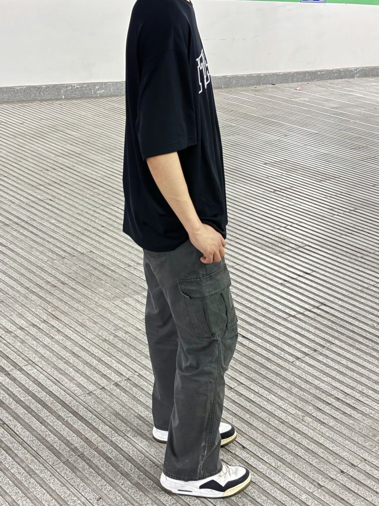 兄弟们!这条深灰色工装裤真的可以闭眼冲了! 宽松的直筒版型真的是超级藏肉!不管是多粗的大肉腿都能完美修饰成细直长的大长腿! 还有还要~!!侧面的大口袋真的很加分!钥匙耳机统统都能吞下!出门在也不用大包小包啦! 尺码参考:178 125 XL