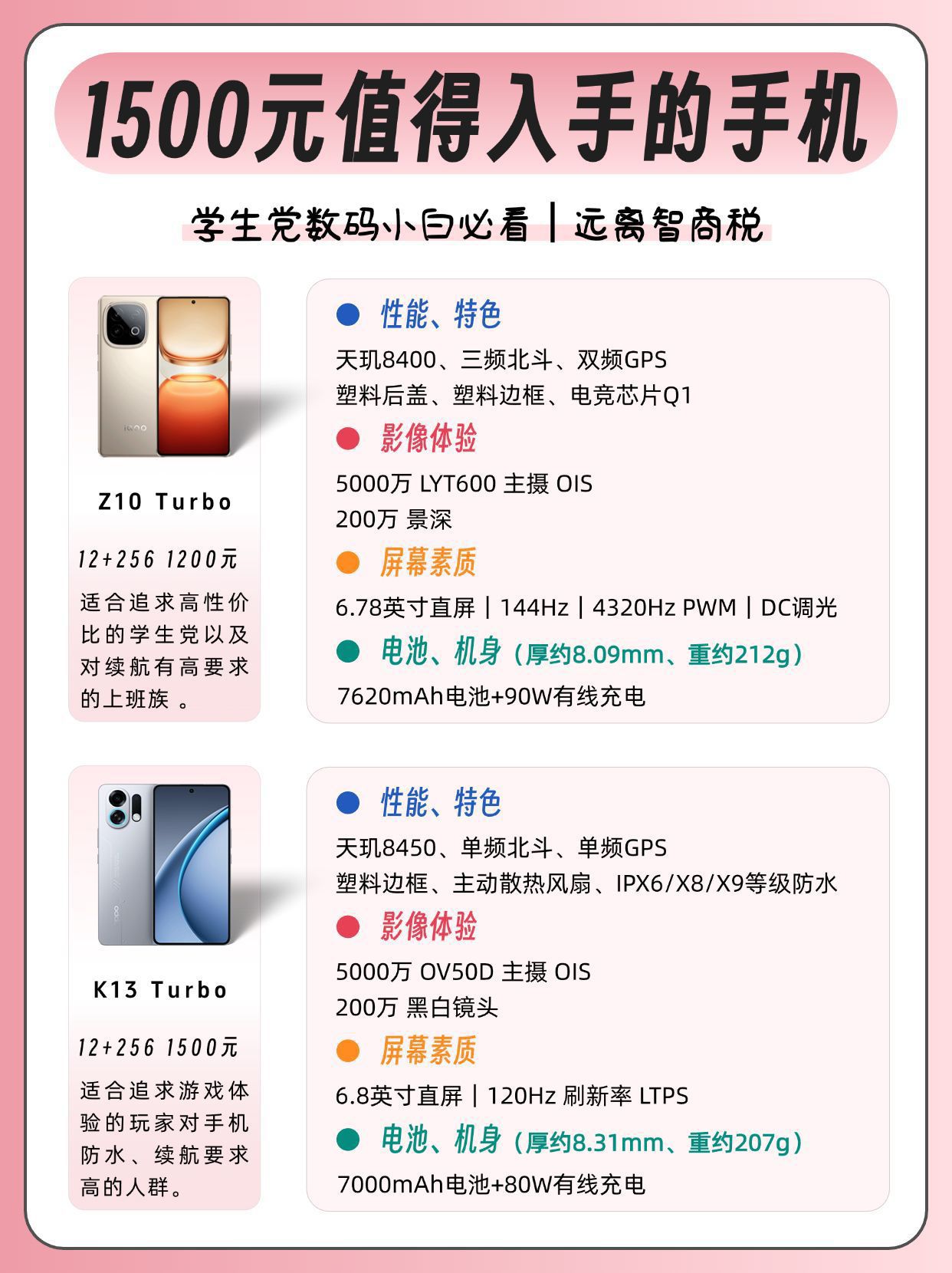 还有二十天不到就要开学了,还有多少学生没有换新手机,今天给大家安排上8 月份 1500-2500 价位值得同学们入手的高质量手机推荐,闭眼入不踩雷💯。 - 👉12 款手机大盘点,具体参数和价格都整理在图片里啦,大家直接右滑查看就行(图 2️⃣和图 3️⃣是帮助一些不懂手机的数码小白 3 分钟快速了解手机的几乎所有配置的思维导图,制作很辛苦在这也求个👍) - ❗️❗️划重点❗️❗️本篇没有任何广告,...