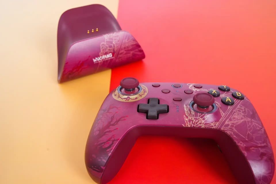 ✨【开箱惊艳时刻】 包装超级有质感 盒盖仪式感拉满 暗红手柄躺在定制泡沫里 文物级精致感 配件齐全:Type-C线/接收器/说明书/充电底座 底座与手柄无缝贴合 雕刻海百合+无常角色图案 细节拉满 🖐️【手感体验】 • 246g重量刚刚好 老婆小手也能舒适握持 • 机身手感绝了! • 背面防滑纹路 手汗党再也不怕打滑 🎨【设计细节】 • 经典按键布局:左侧摇杆+十字键,右侧ABXY功能键+摇杆 •...