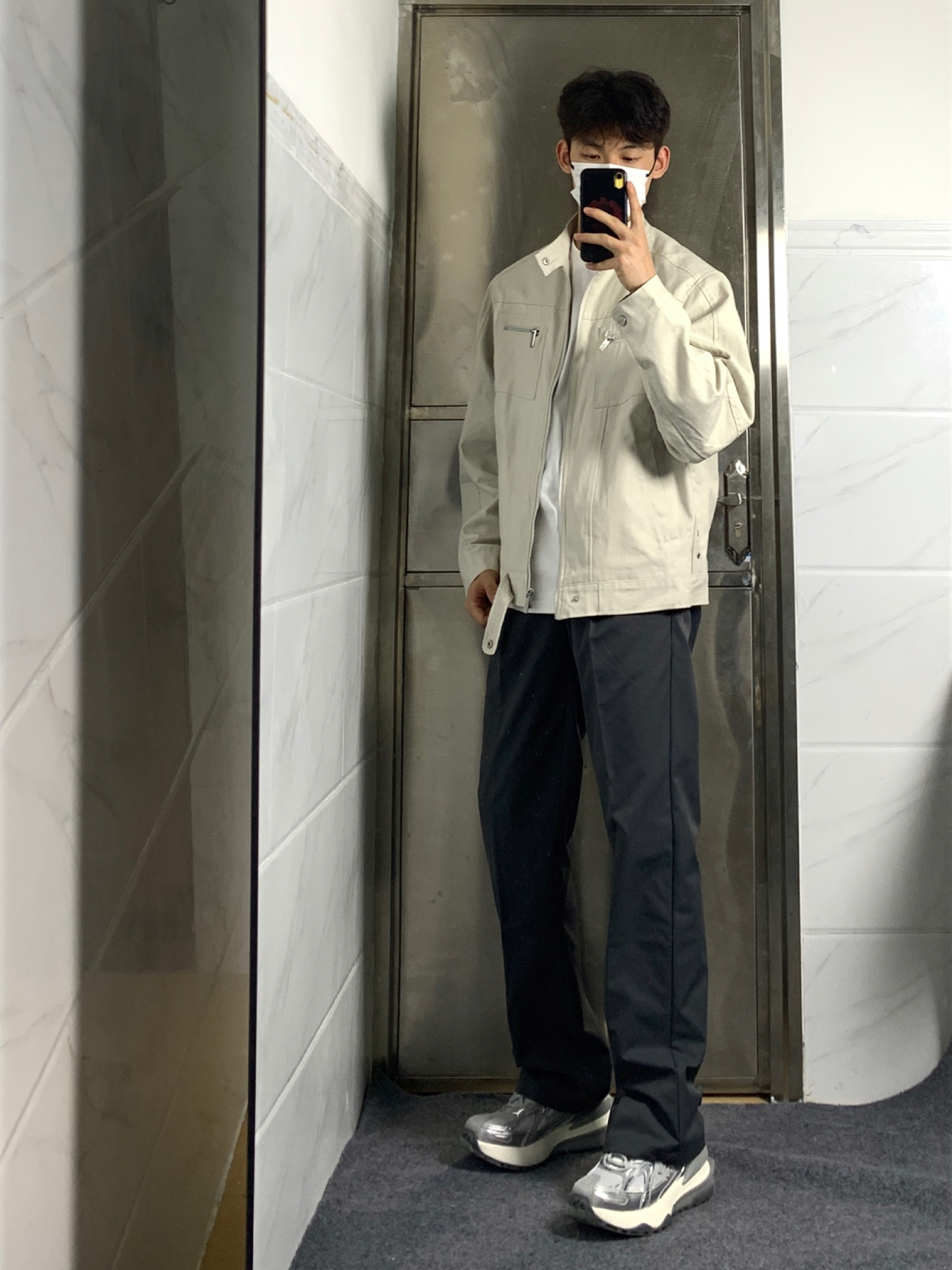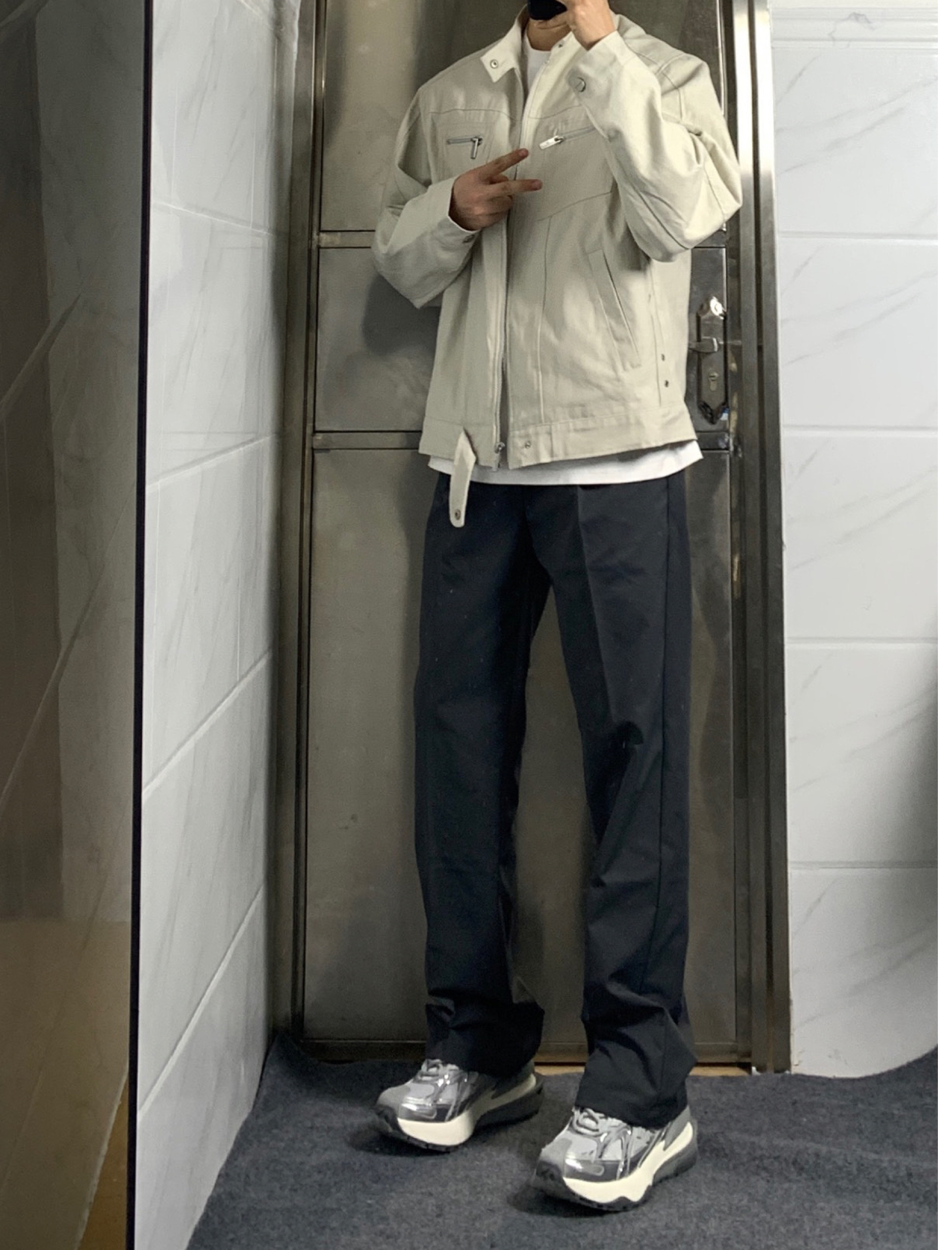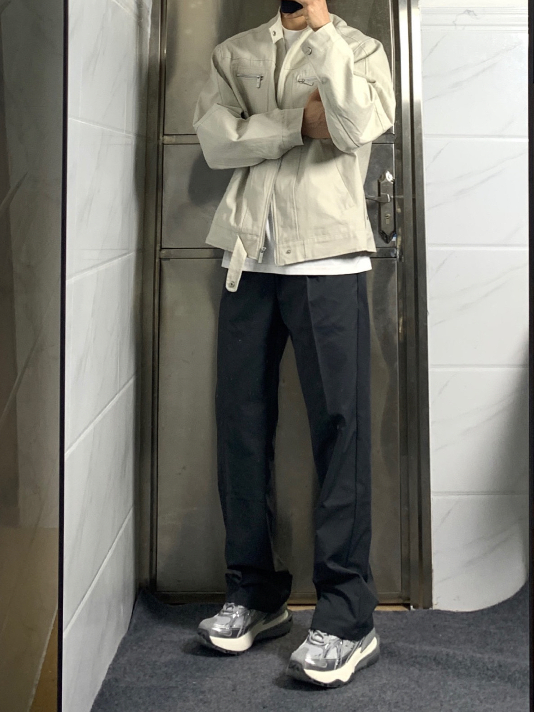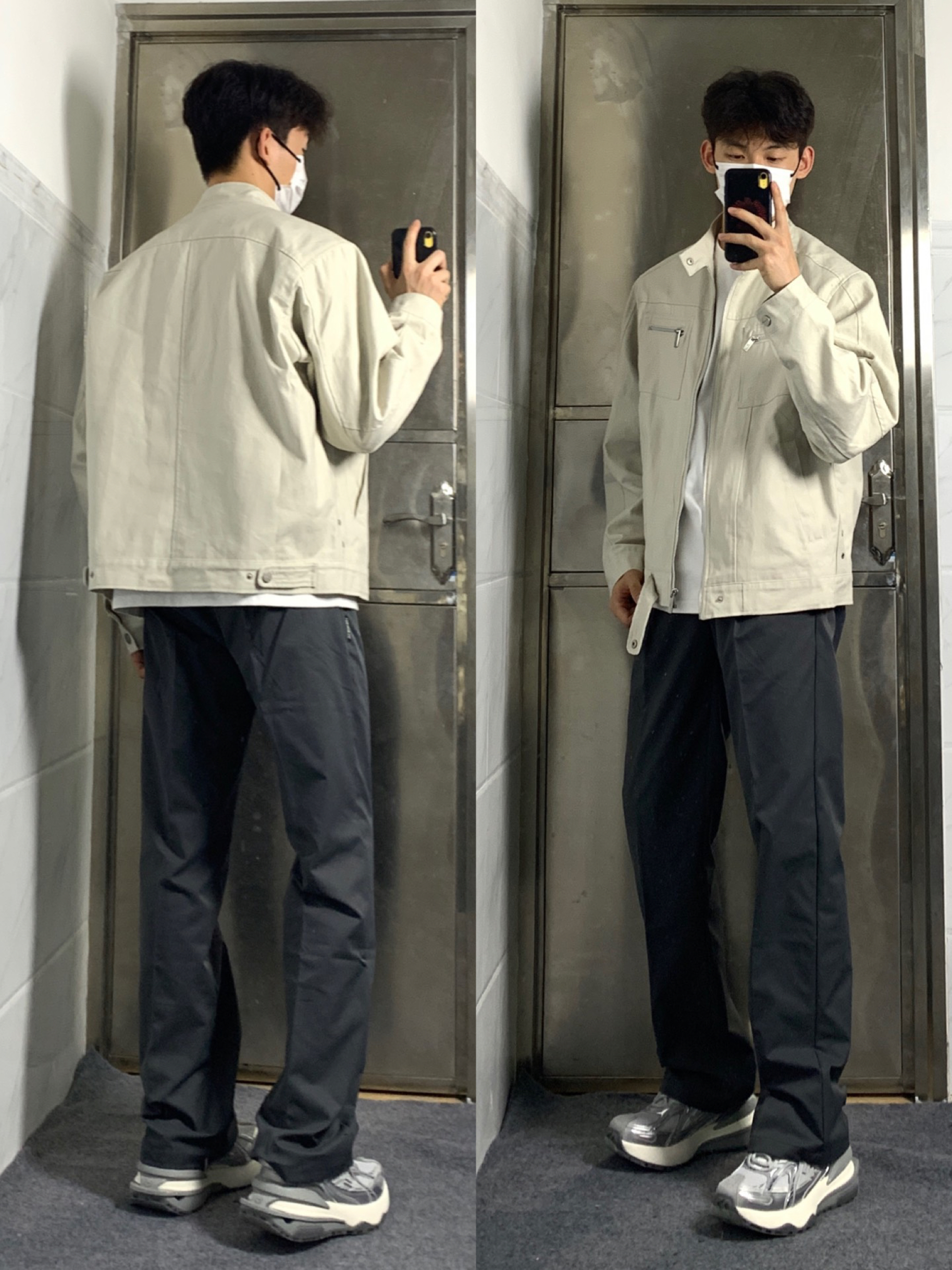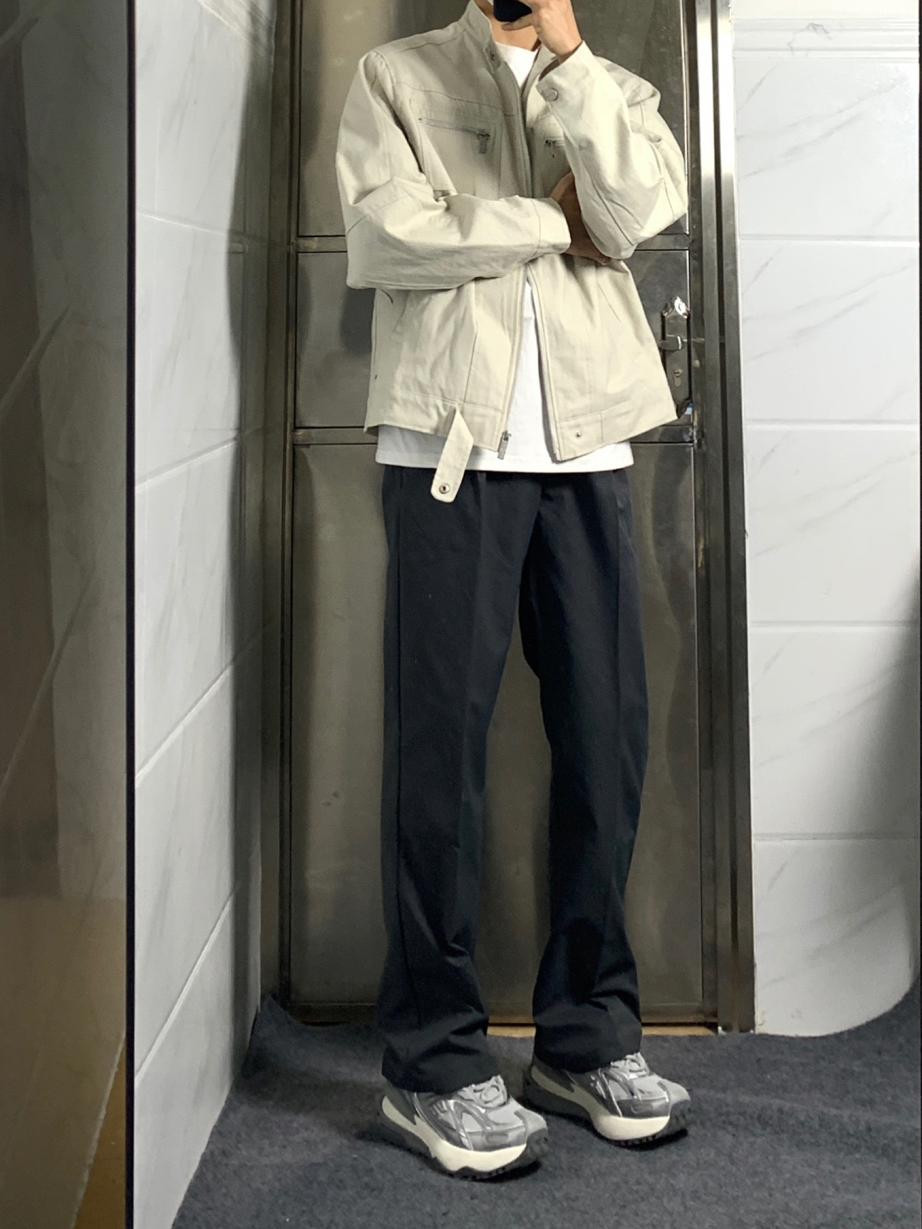 今天来分享一下我的美式穿搭呀🎉 👔上衣是复古哈灵顿水洗帆布夹克,立领的设计尽显美式街头风,休闲又有范儿,穿起来超有感觉呢。 👖下身搭配深灰色微喇叭休闲裤,垂感舒适,关键还特别百搭,和上衣组合在一起超和谐