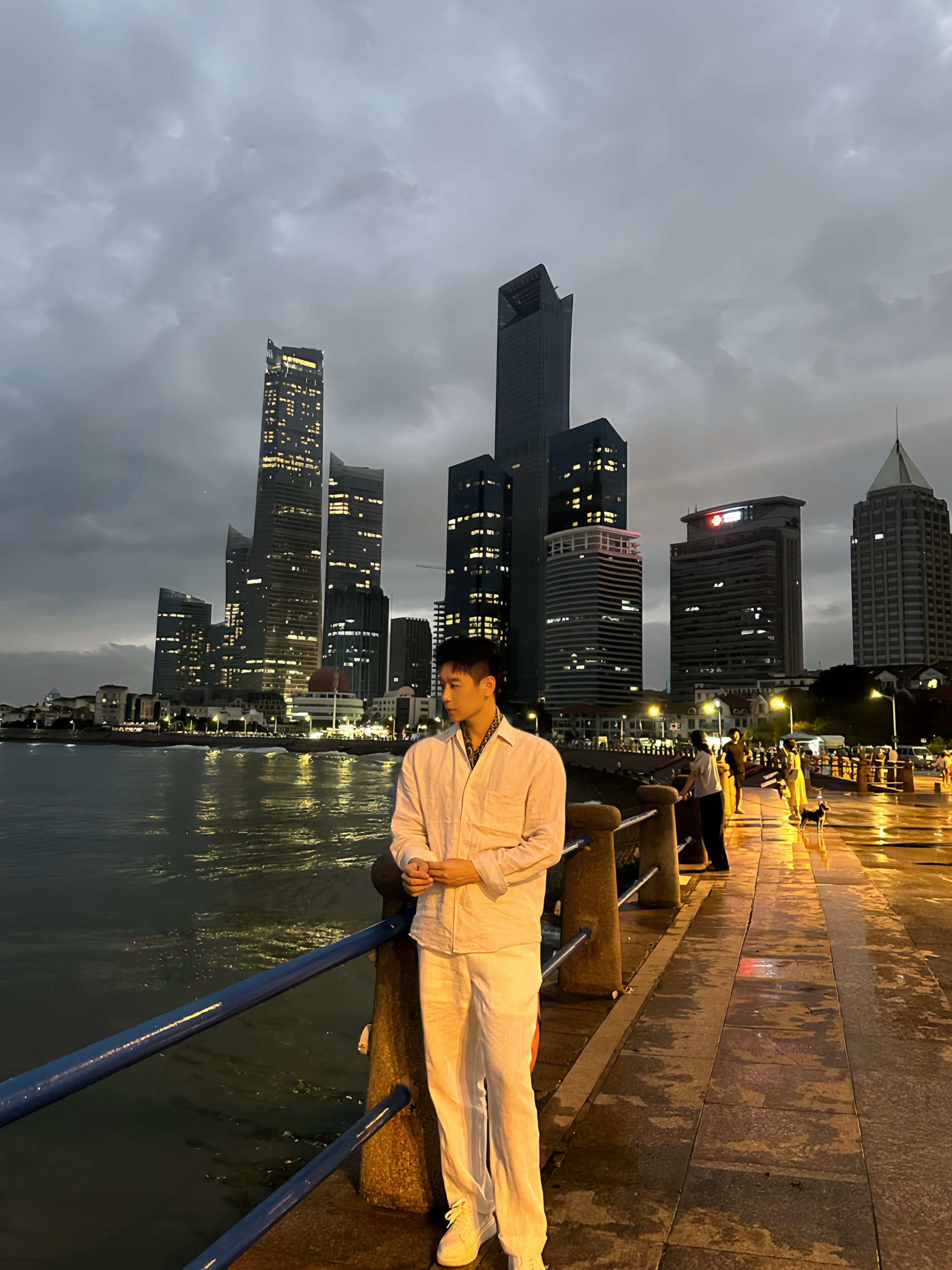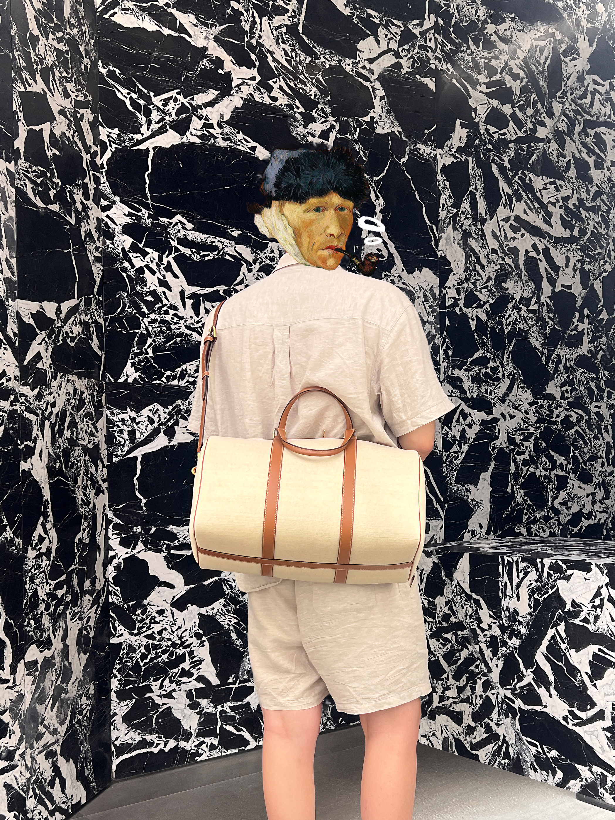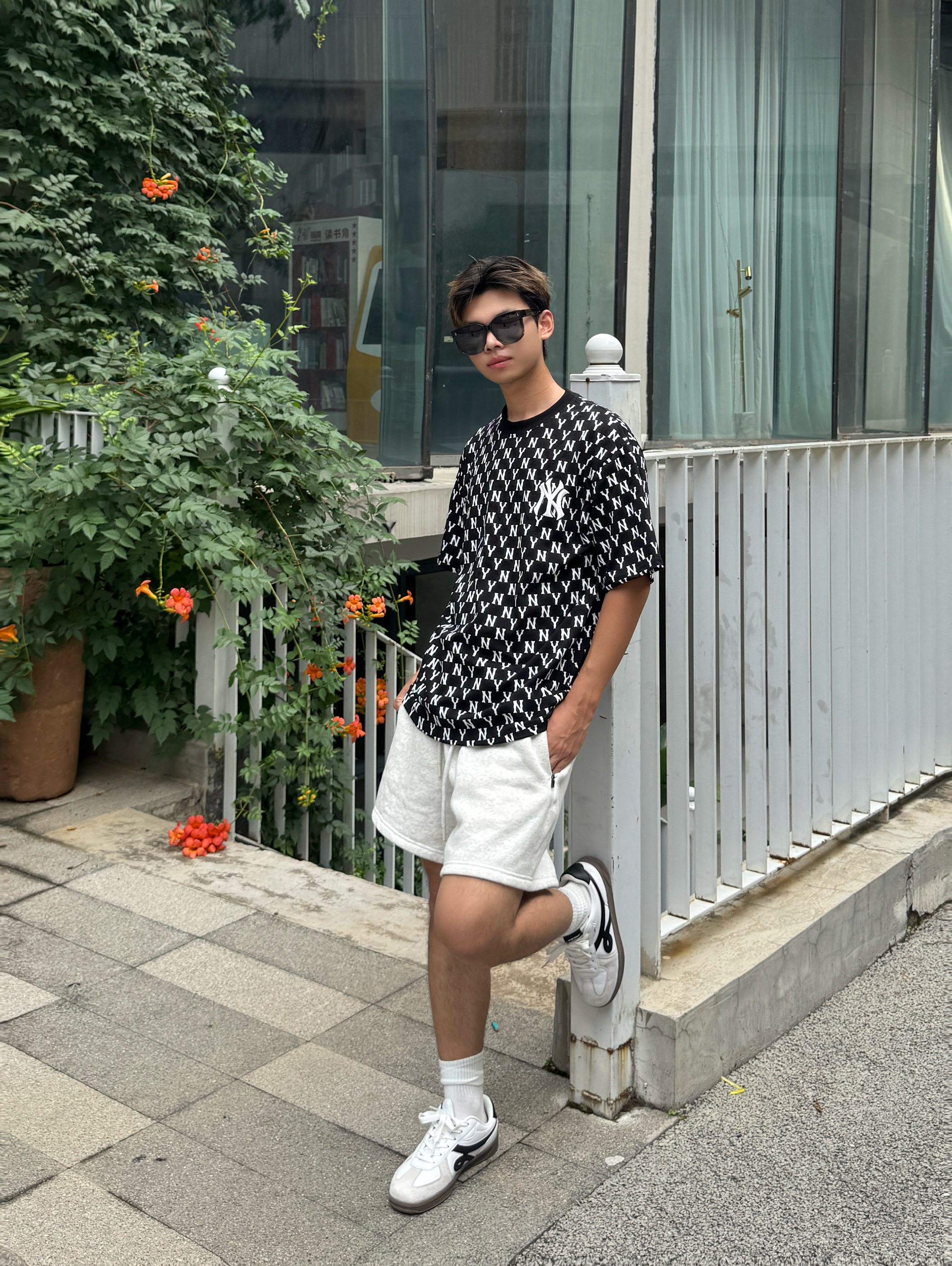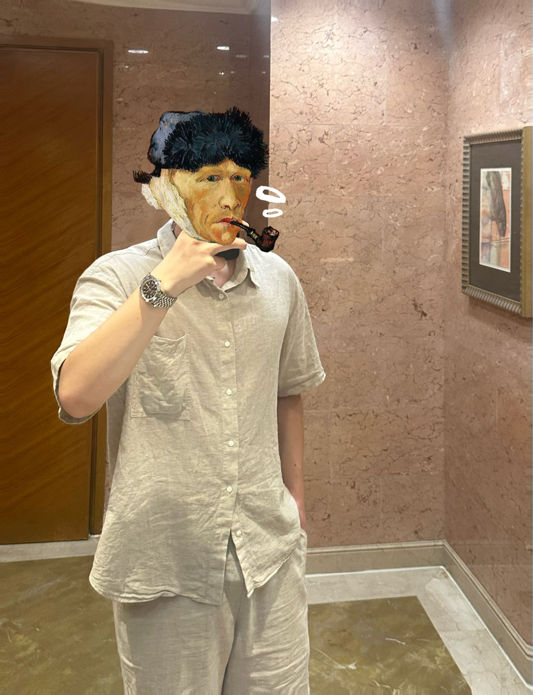 身高|体重:183 160 🧍♂️ 穿搭风格:老钱风 👔 上衣:原麻色亚麻短袖 👖 下装:原麻色亚麻短裤 🎒配饰:香奈儿旅行包