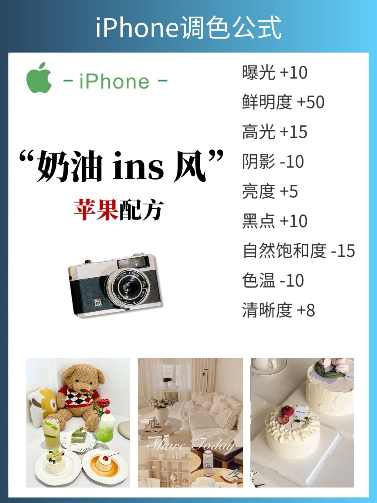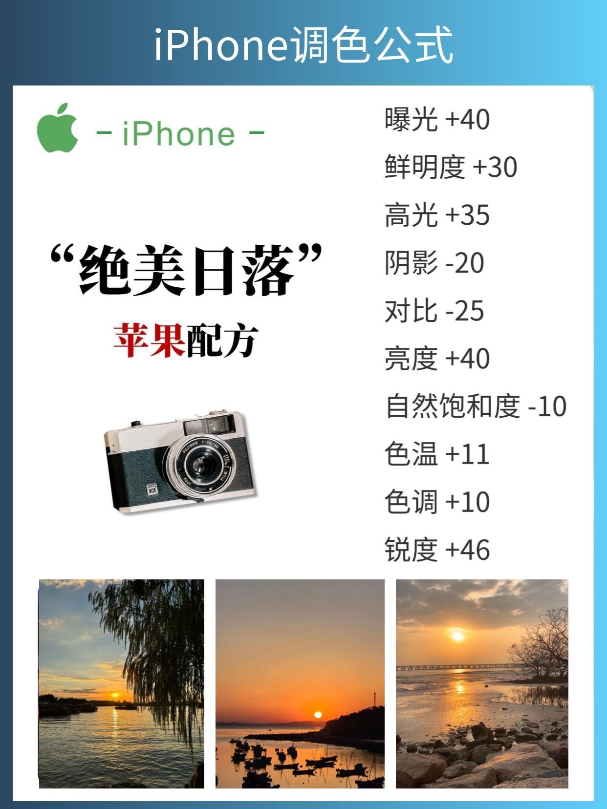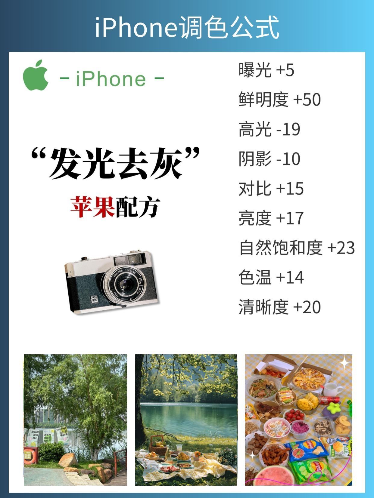 🌟【iPhone原相机调色大法好】🌟 宝子们,iPhone原相机的调色功能真的绝了! 📸✨学会这些调色参数,让你的废片秒变高级感大片~🎬💫 🔥我整理了8款超实用的日常调色教程,快来速速学起来吧!✅ 📌另外,想要拍出更清晰、更高级的照片,这些小技巧你一定要知道: 1⃣ 拍照前记得擦干净手机镜头,这样拍出来的照片才会更清晰哦!🔍 2⃣ 打开相册的九宫格网格辅助线,可以帮助你更好地调整构图比例,让照片更...