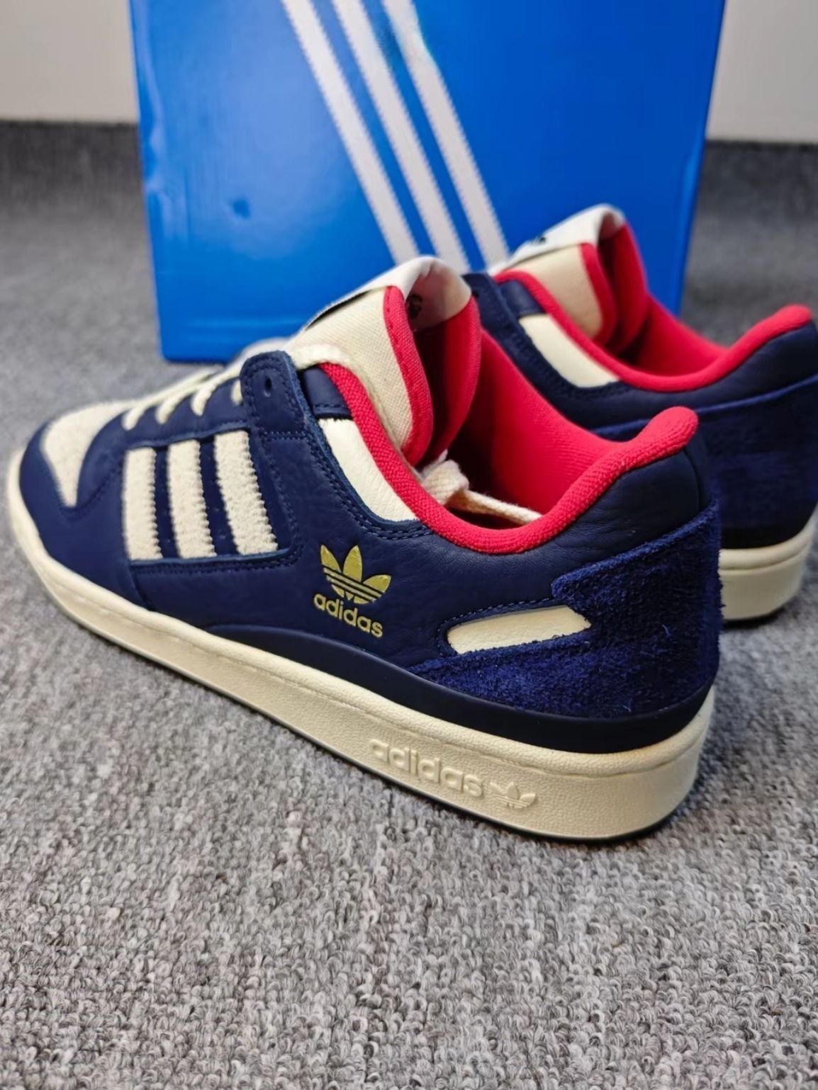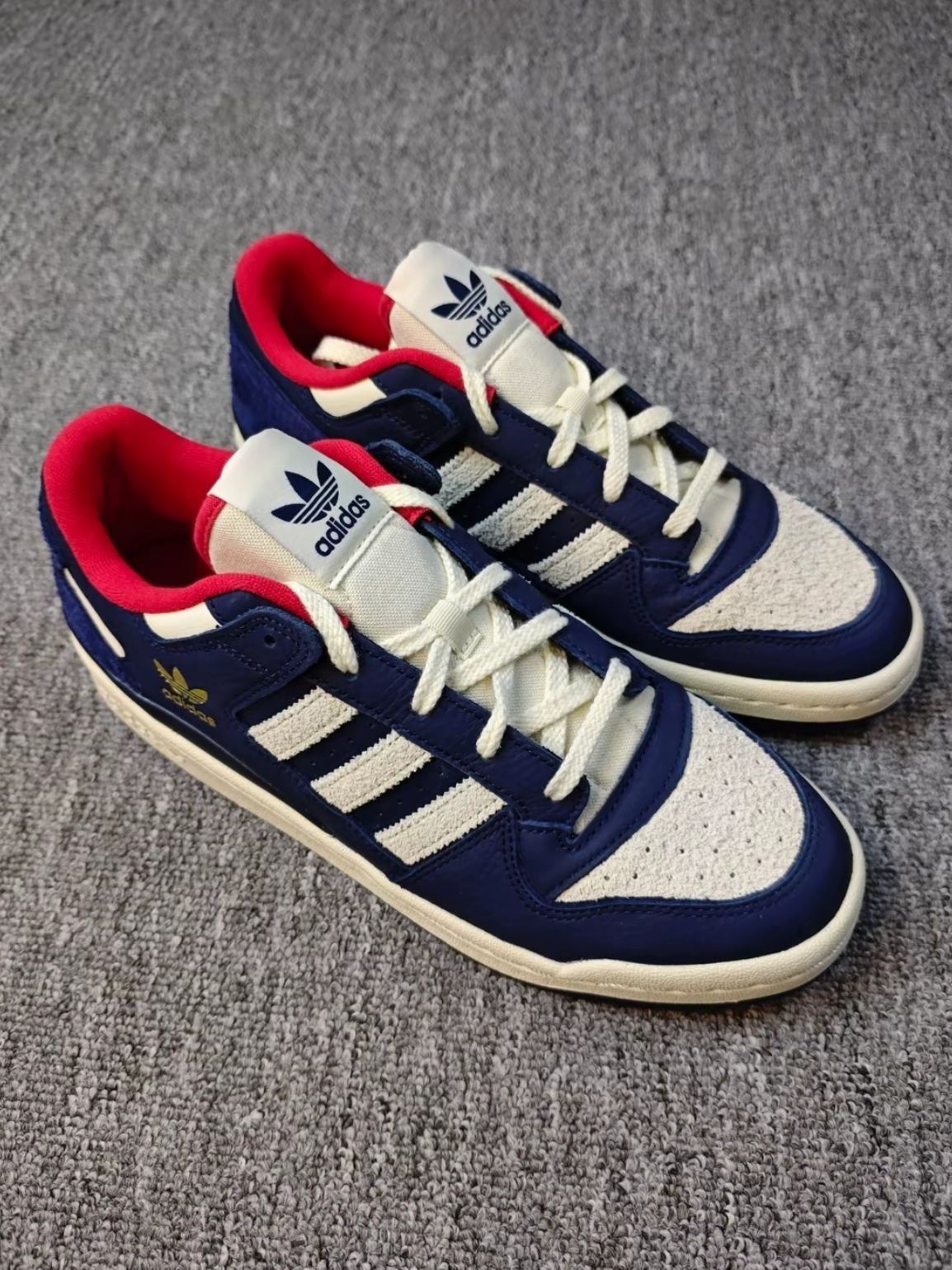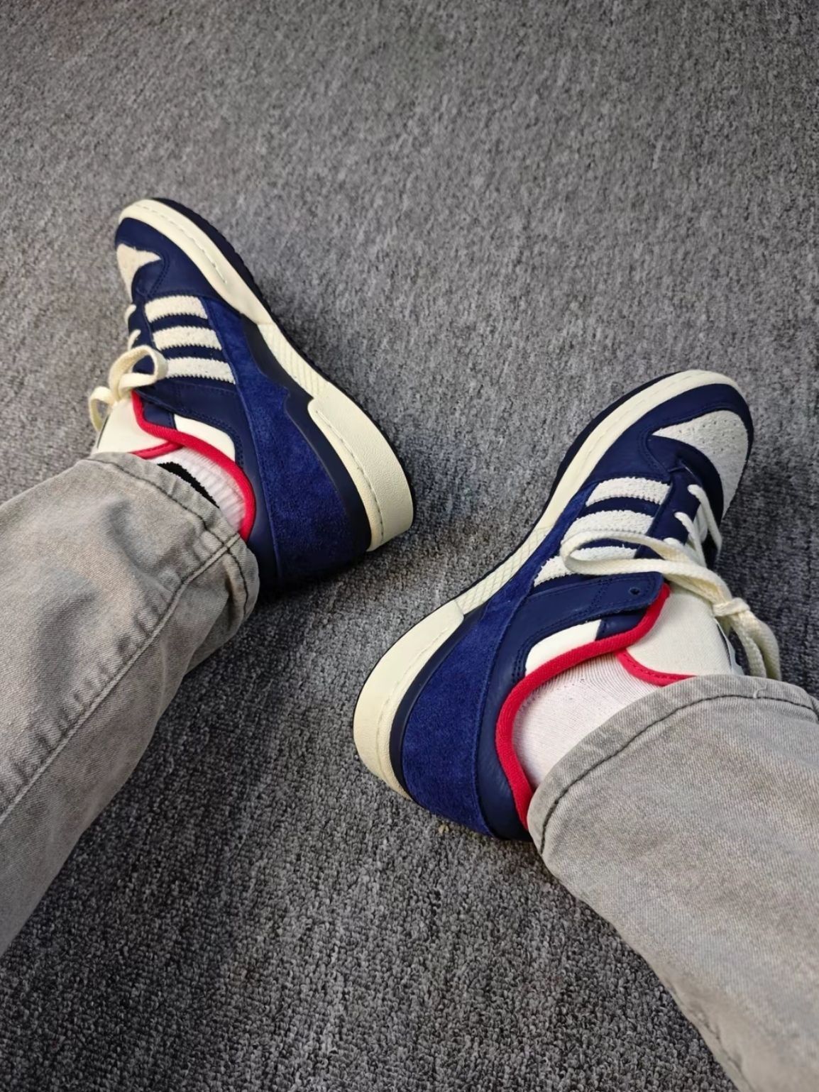 外观设计 这双Adidas三叶草复古板鞋,在外观上完美复刻了品牌经典元素。以藏蓝为主色调,搭配米白三道杠与鞋头,红色鞋口内衬点缀其中,撞色设计既复古又时尚 。鞋侧金色三叶草Logo,提升精致感,整体风格适配多种穿搭,无论是休闲牛仔裤,还是潮流运动装,都能轻松融入,打造出街头潮流范儿。 材质工艺 鞋面采用皮革与翻毛皮拼接,皮革部分质感硬朗,保障鞋型挺括;翻毛皮细腻,增加复古氛围与触感层次...