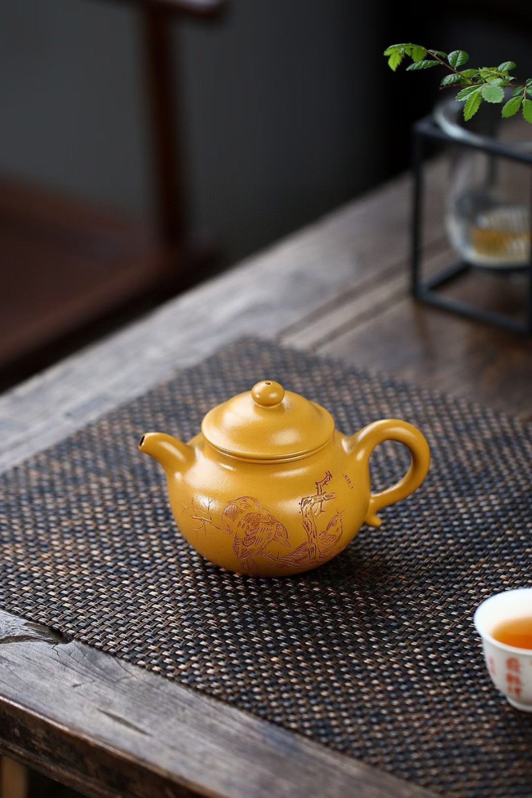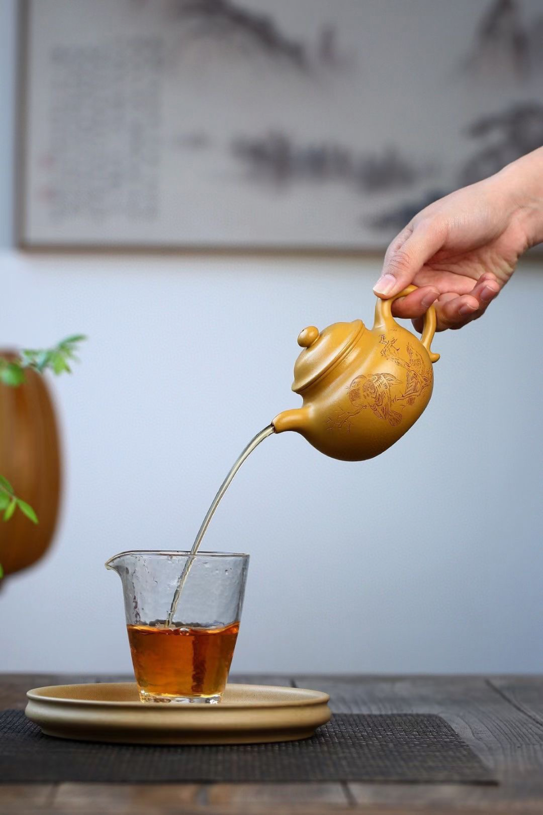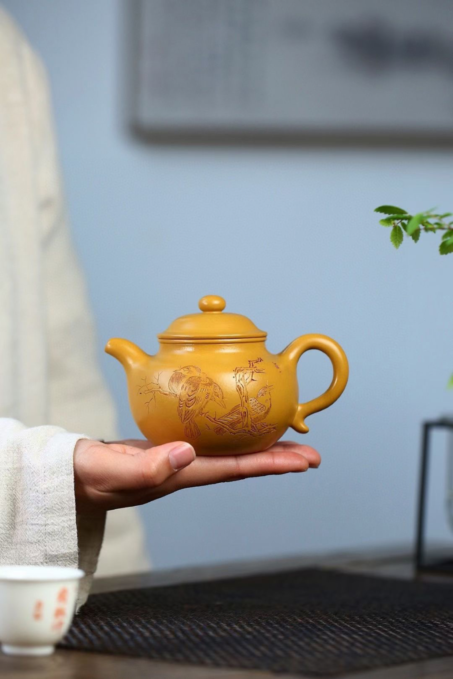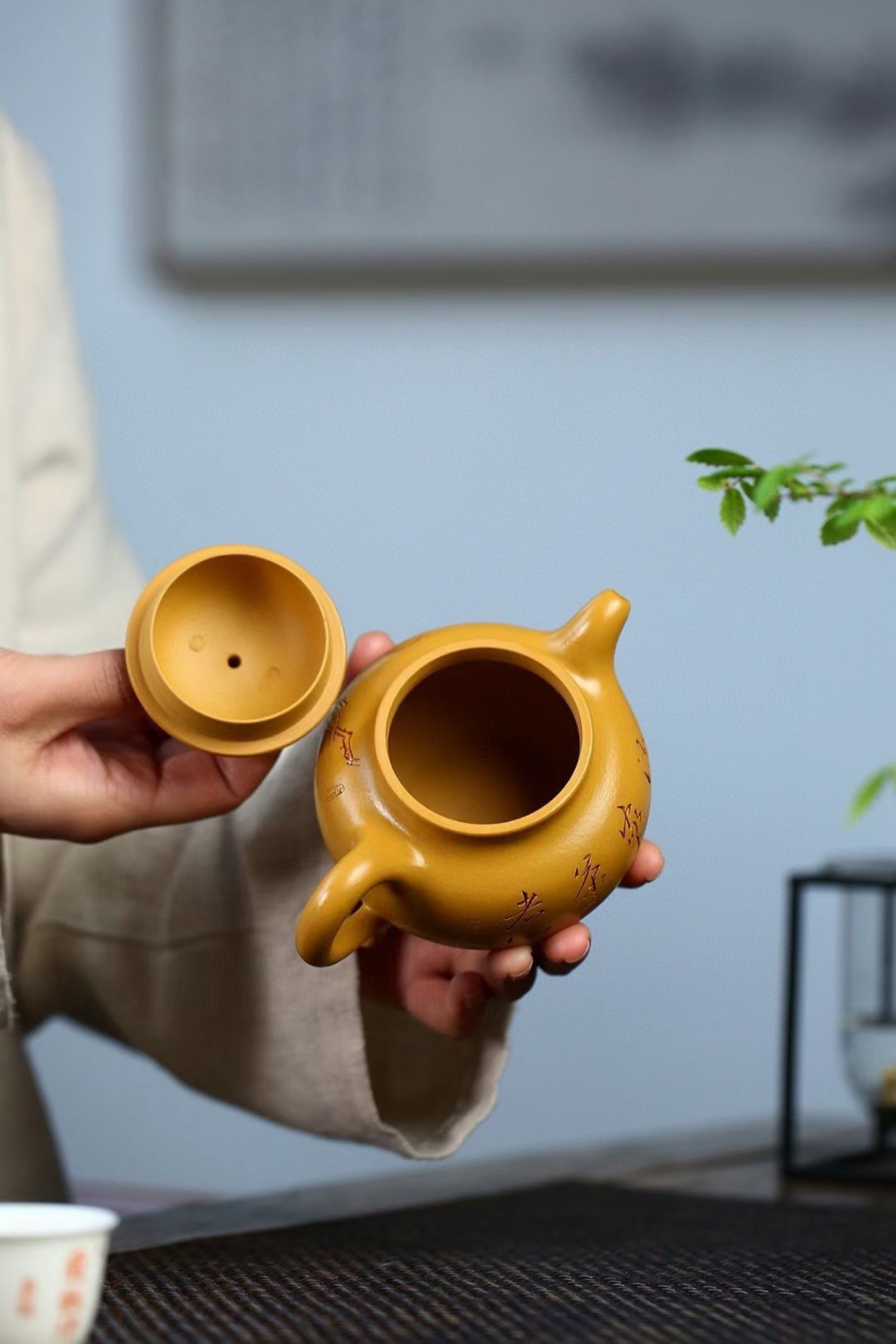 仙家日月蓬壶里,尘世烟花梦寐中。 —【莲子】 原矿黄金朱泥·300cc 作者:吴卫平 国家级工艺美术师 师从国大师吴鸣 1986年开始从事紫砂壶创作,擅长圆器、方器与筋纹器制作,代表作有《三角石瓢》、《提曲》、《汉鉼》等,其中《玉兰花筋瓤壶》曾获第十五届中国工艺美术大师精品博览会金奖。 此壶传统器形,古朴敦厚,非常耐看。整款壶壶身极为饱满,壶钮若点睛之笔,特别显眼,压盖设计,口盖子母线齐整融合...