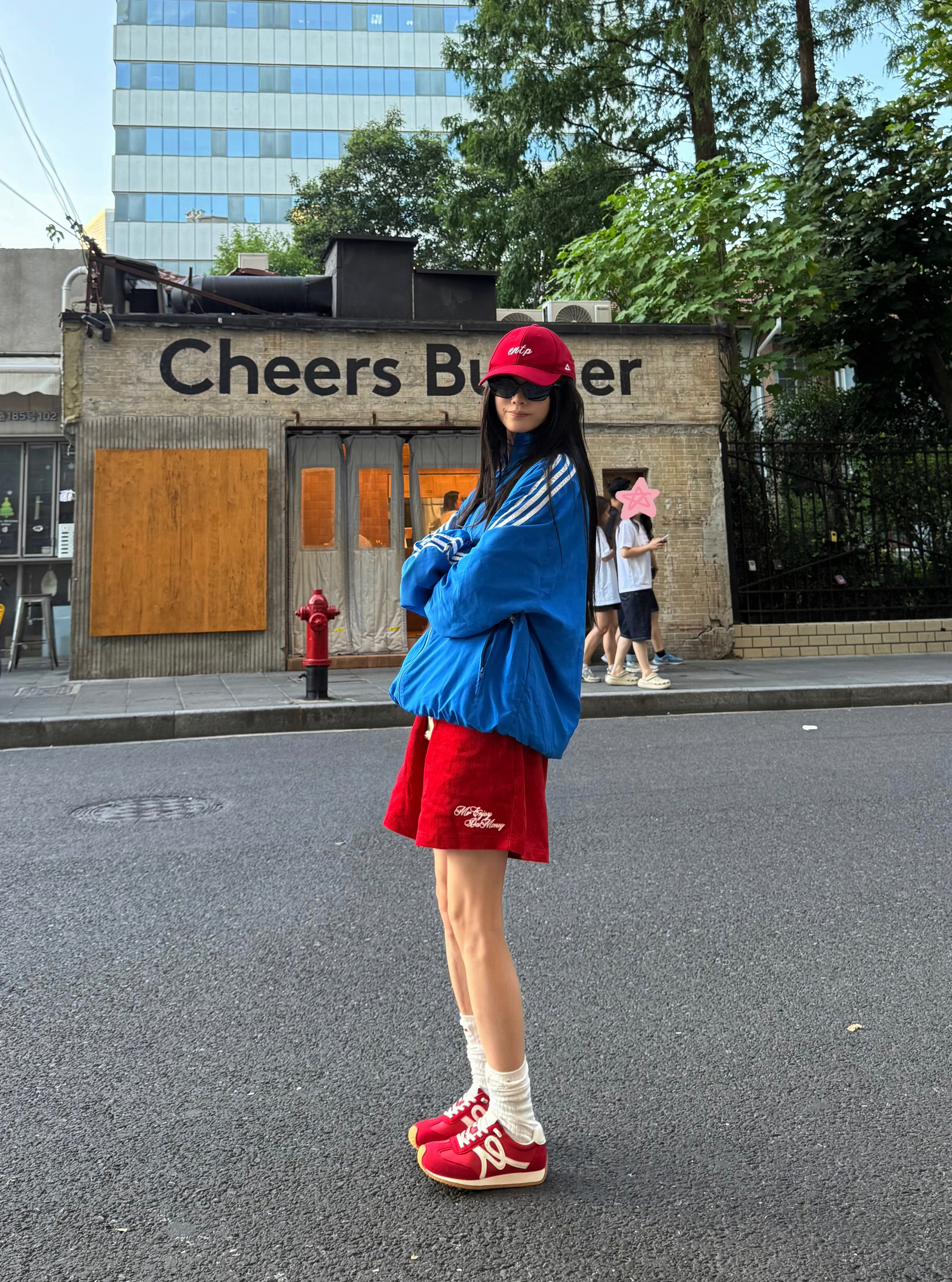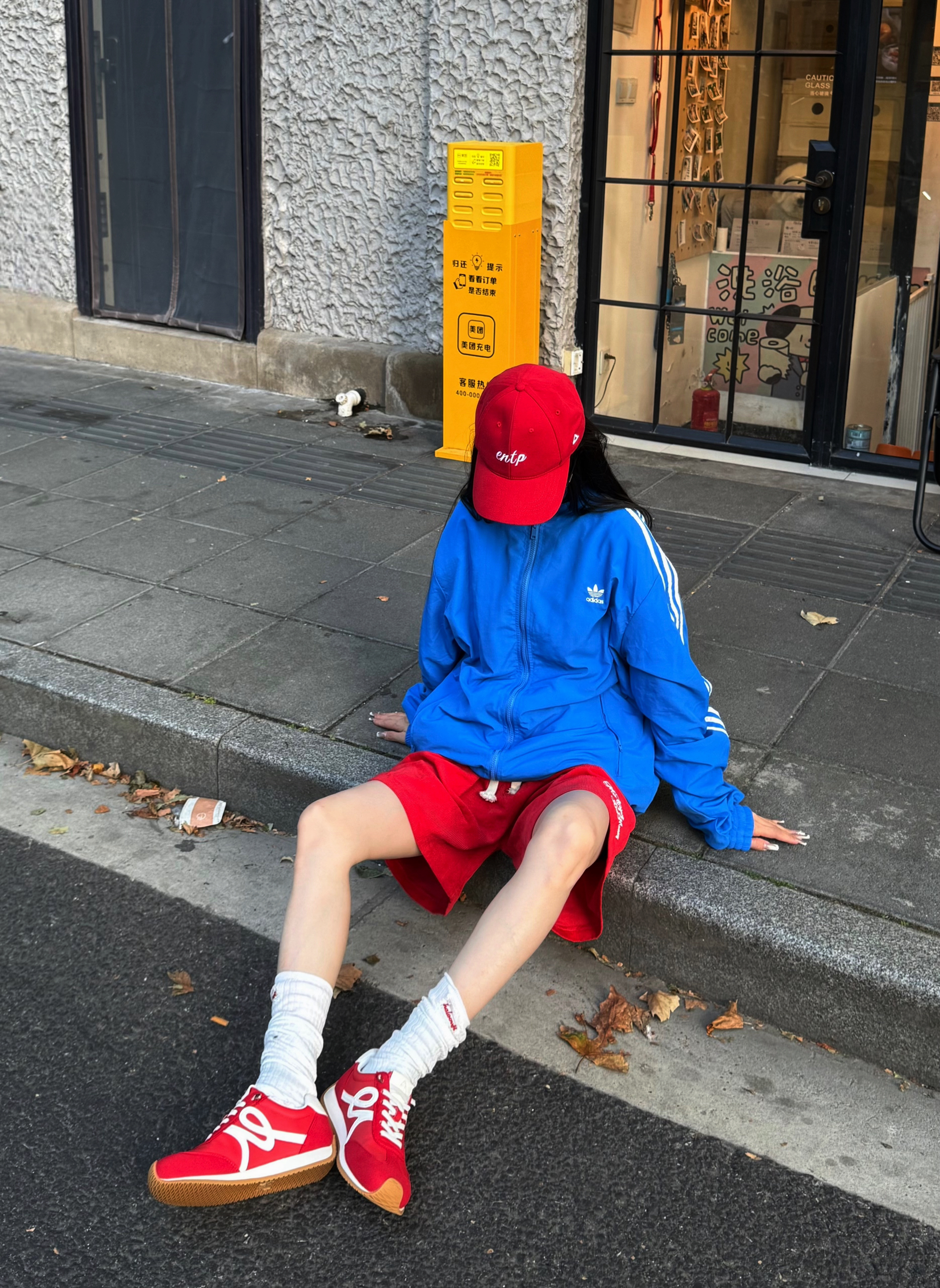 谁懂!软底软面暴走不累脚的德训 随便搭都给人一种很会穿搭的氛围感 红鞋子红帽子红裤子➕蓝色阿迪真的可以很出片 一身红蓝撞色怎么看都好看 随性碰撞 随便一搭就很有动感活力啦