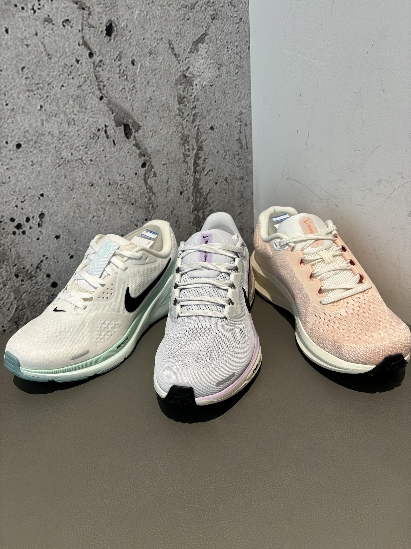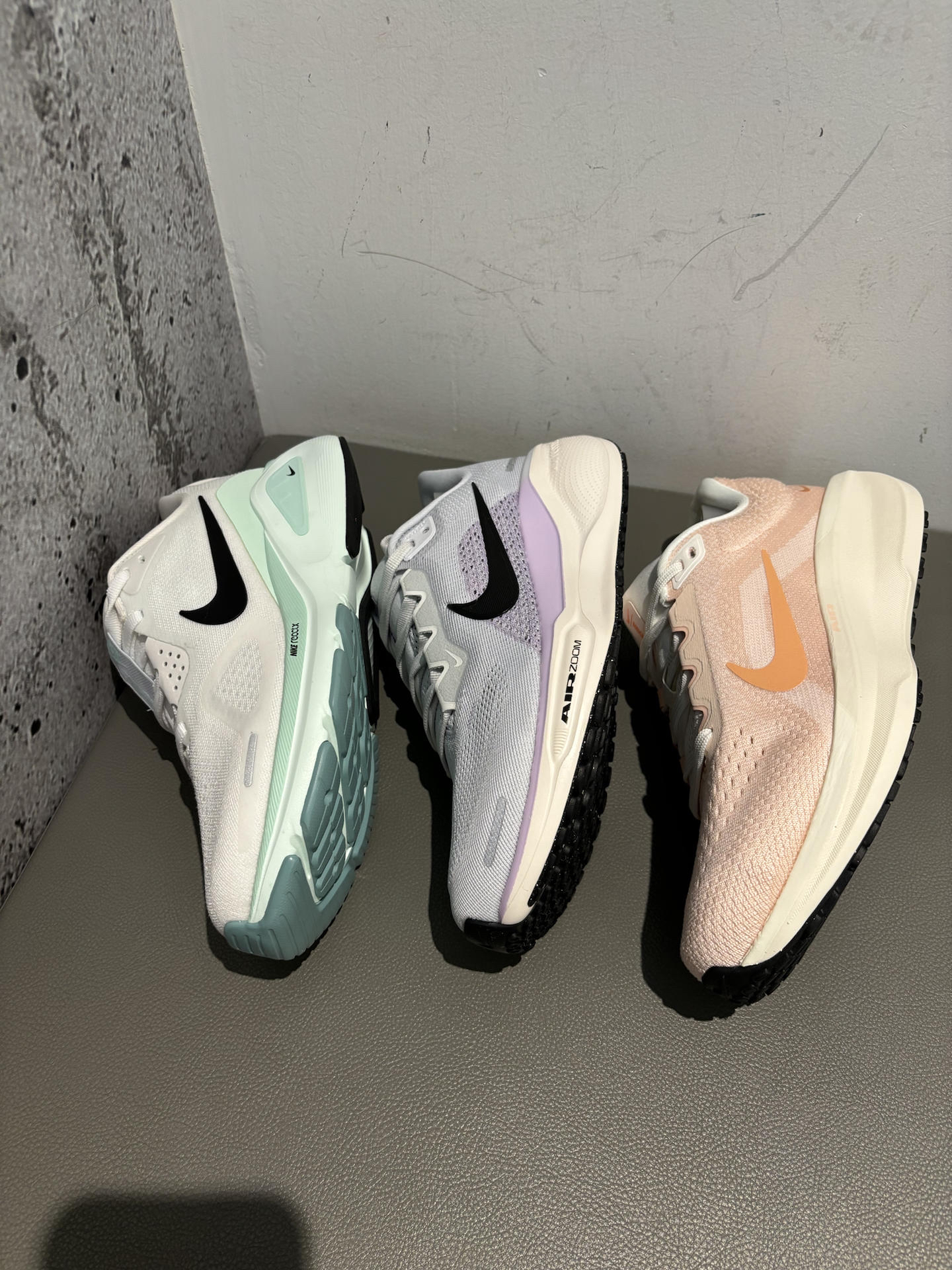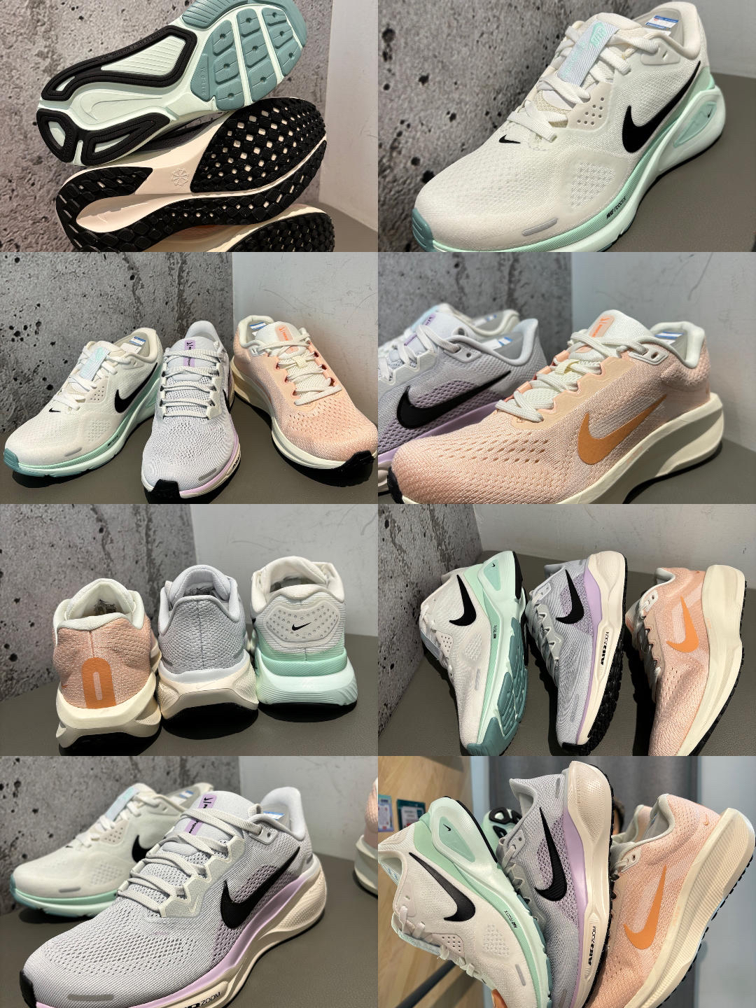 #跑鞋新品速报 winflo11橙色 后掌air气垫踩起来还是很舒服的 鞋面多层更适合秋天现在穿 宽脚很合适 飞马41紫色 前后掌都有zoom气垫,重心比较低 踩起来略硬前掌 过度感流畅,通勤跑步穿都可以 structure26绿色 基础跑鞋通勤跑步都可以 鞋面更厚一点秋冬穿搭可以 鞋底不是很耐磨