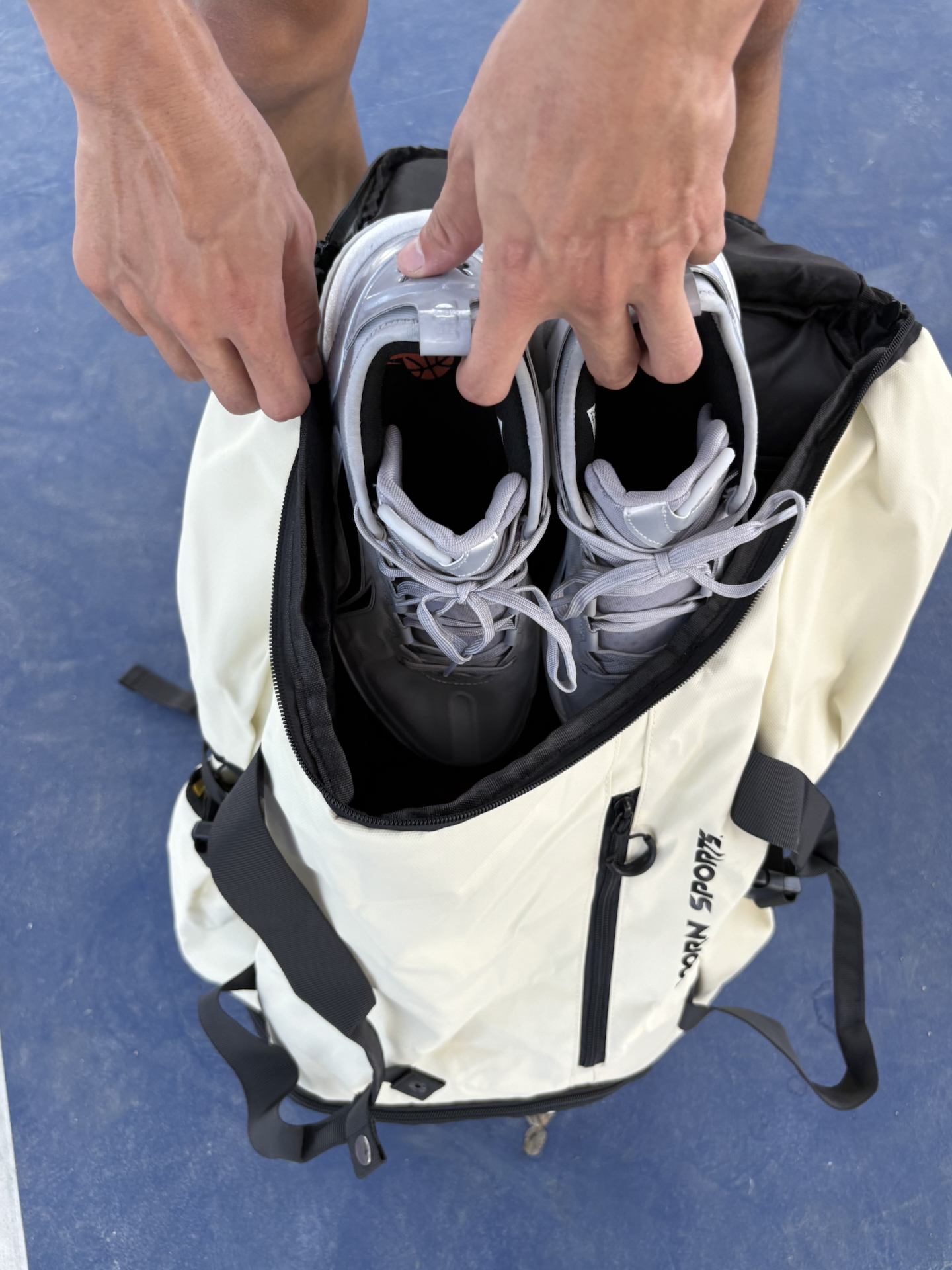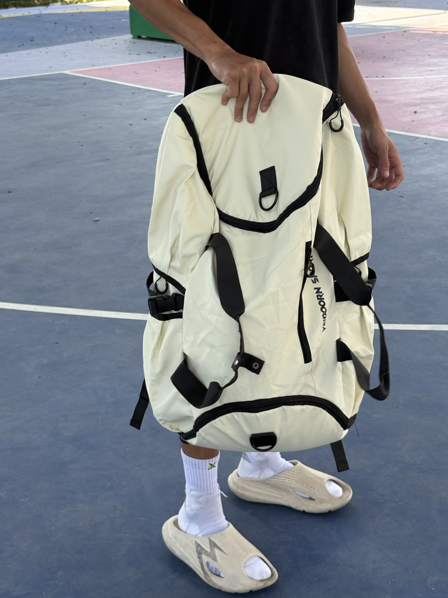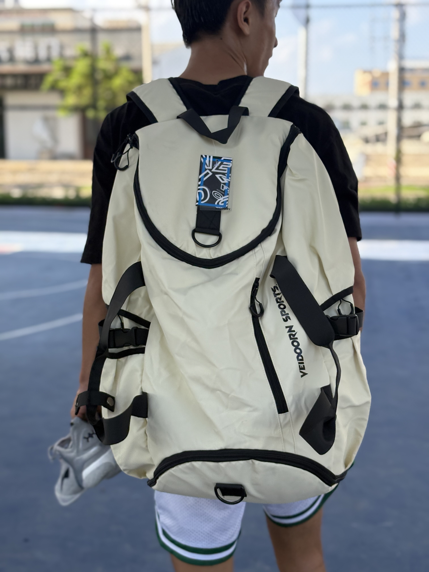 今天给大家分享一款超级帅的篮球背包🎒 #维动 VEIDOORN 的追溯篮球背包,我这个是米白色的,颜值真的非常高! 这款背包🎒的容量是非常大的,我装了一双篮球鞋+一个篮球都还有空余的位置,侧面的水杯网还可以放水,小口袋也非常多,而且背起来的时候不勒我的肩膀,非常是舒适,性价比很高! #篮球背包推荐 #维动追溯系列 #一款超高颜值的背包 #球场实战显眼包 #可以打篮球背的书包