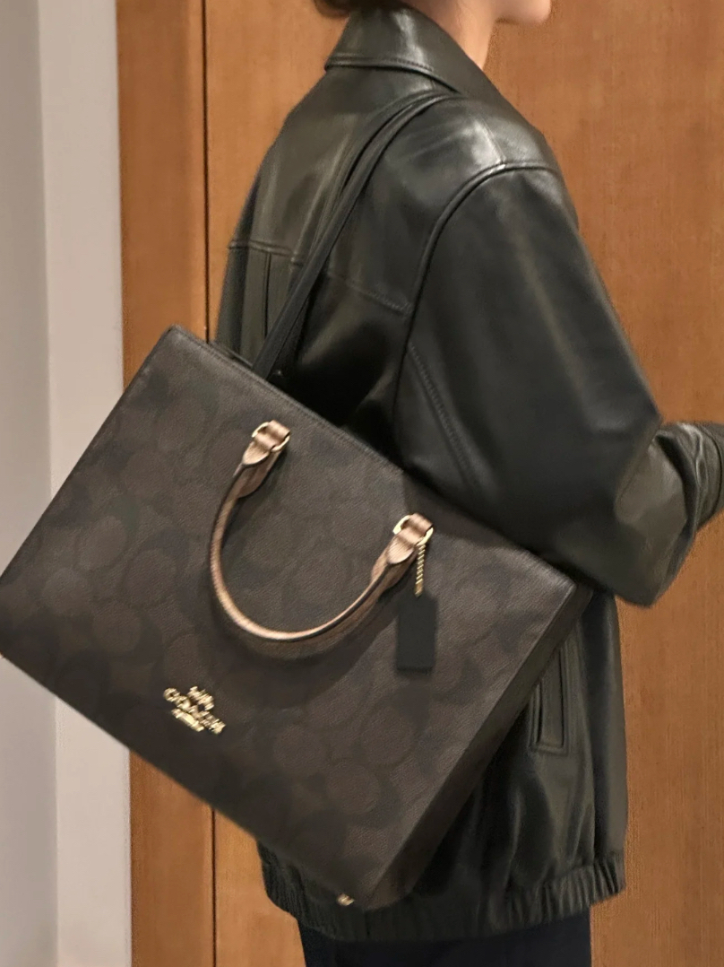 本篇笔记关联了Coach MAGGIE 大号 新品经典标志老花大容量涂层托特包单肩包 深棕色/老花等商品,为用户提供真实的使用体验和购买参考。