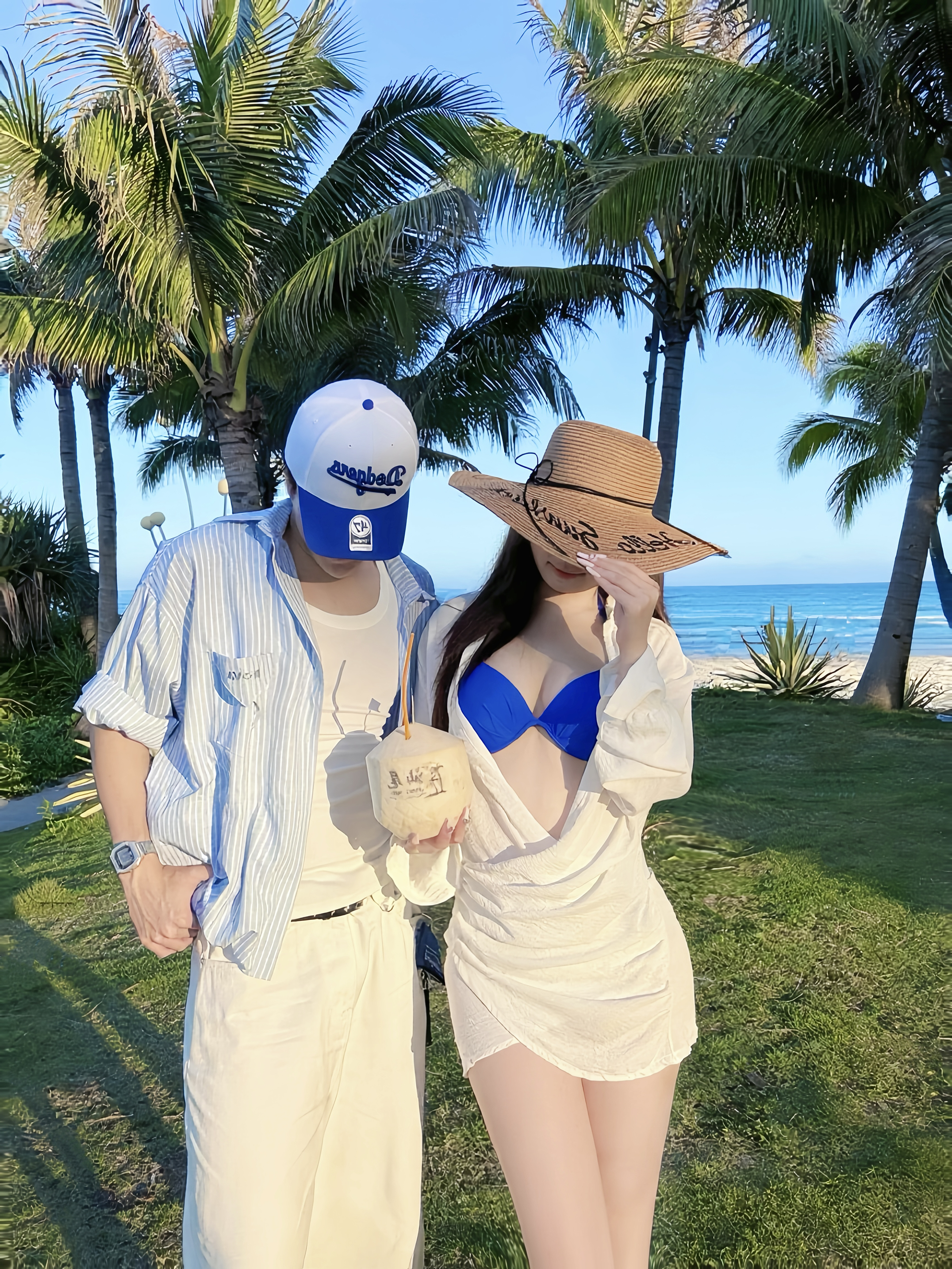 白衬衫裙+克莱因蓝比基尼= 夏日战袍/夏日穿搭 宽松衬衫藏着随性,深V设计又带点小性感, 比基尼当内搭,一键解锁海边辣妹风🌴 海风一吹,松弛感直接拉满~ 随便站在椰林沙滩旁,出片率100%📸