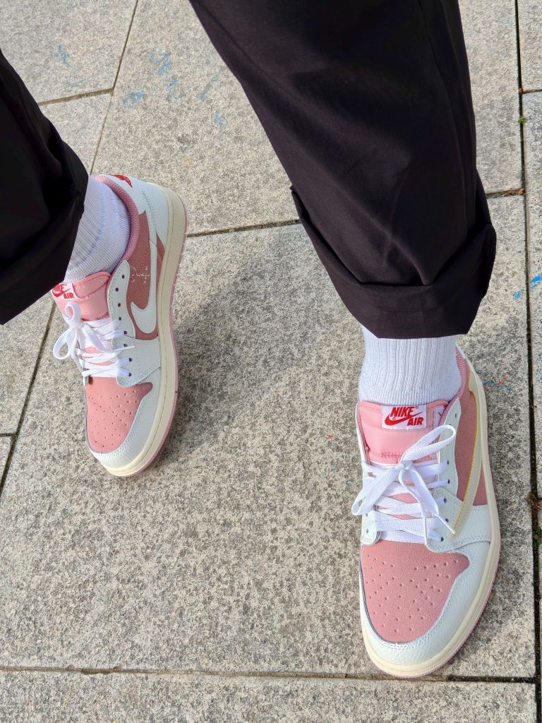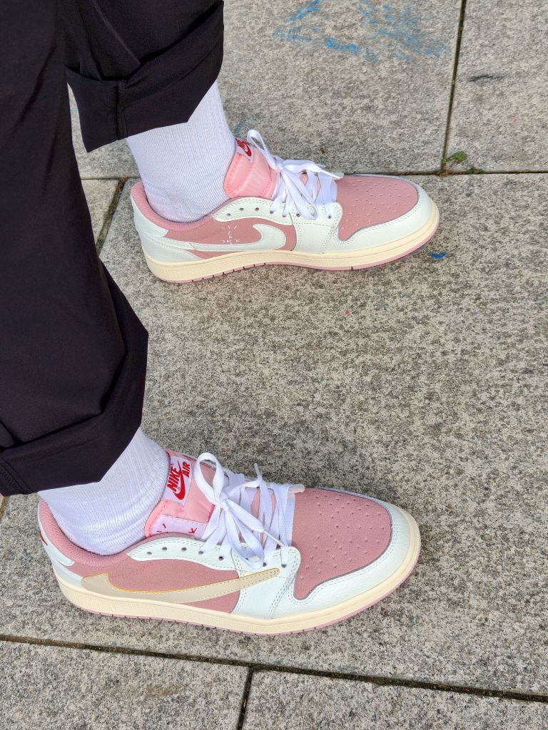 本篇笔记关联了Air Jordan 1 板鞋 运动休闲鞋 复古潮流支撑合成革 Travis Scott联名/粉红色/白色等商品,为用户提供真实的使用体验和购买参考。