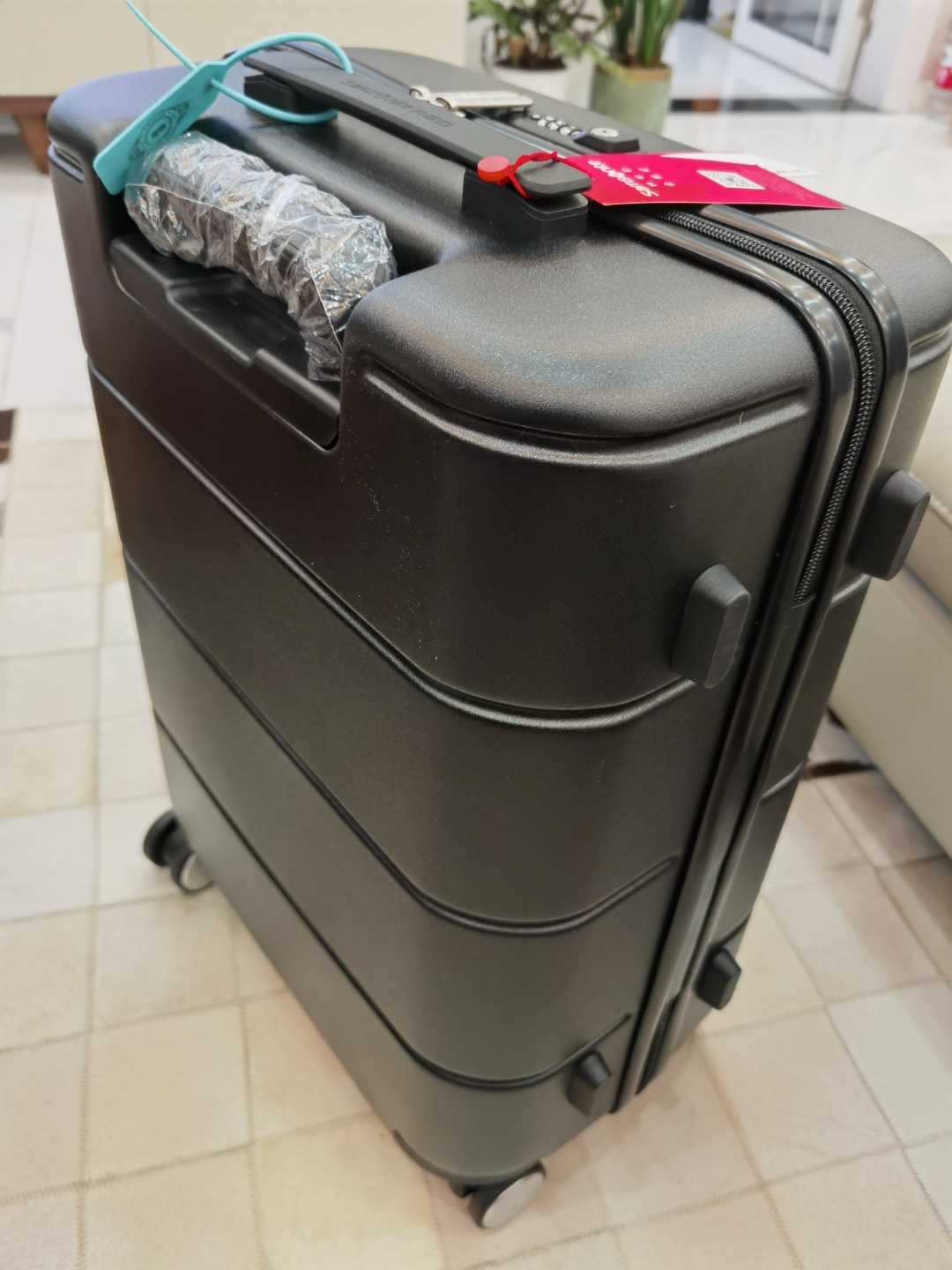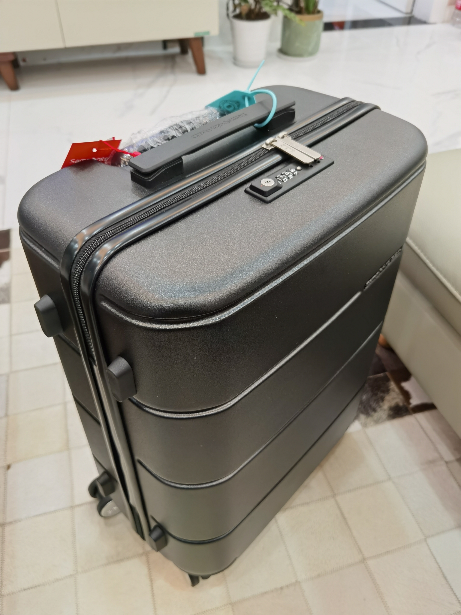 第一次入手行李箱🧳,选了个黑色磨砂款。拿到手感觉挺轻,轮子滚动起来也安静🤫。虽说拉杆有些摇晃但可能是正常现象。整体颜值还行,没想象中难看。PC材质结实耐用~商务、出游都能带着,牌子也靠谱,后续使用看看咋样😃。