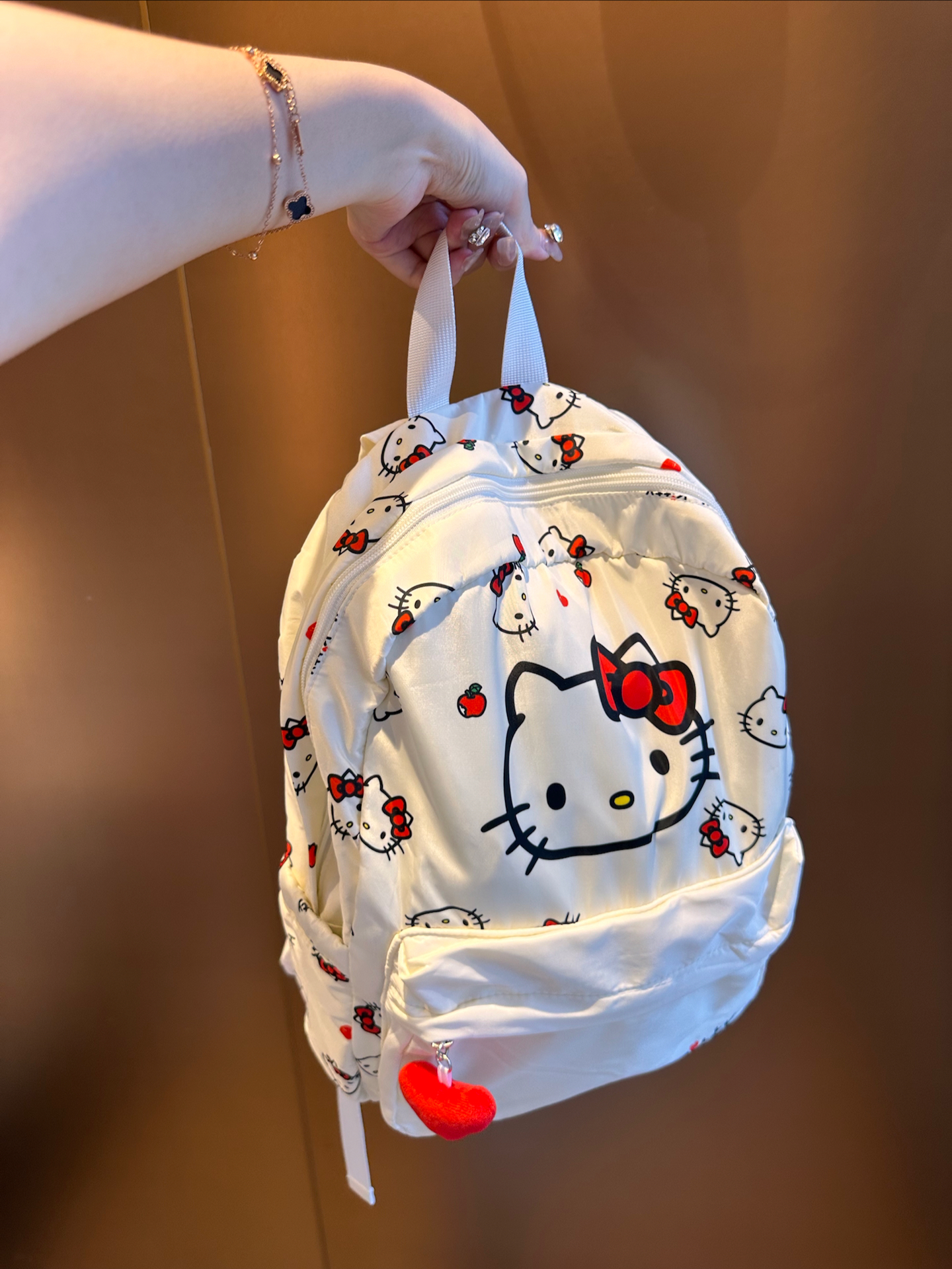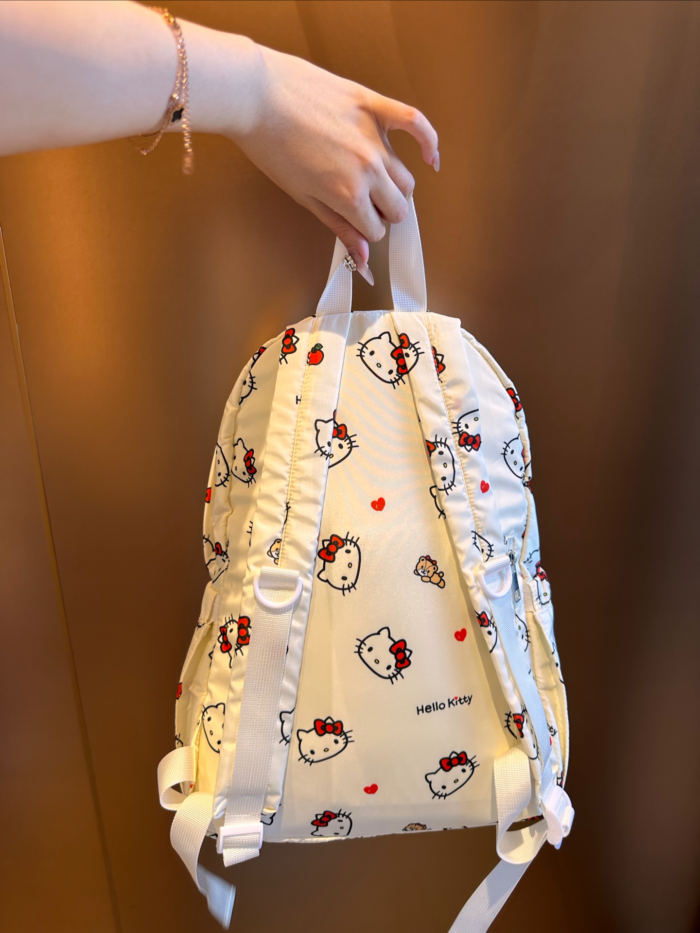 作为超爱Kitty的少女一枚,我可太稀罕这个双肩包啦🤩!白色和红色的搭配,一整个青春活力住了~印花可爱到犯规,背上它感觉自己都萌化惹🥰。它容量真挺大,装几本书和笔记本轻轻松松👌。不管是上学还是出去玩背都好合适~唯一小不足可能就是浅色不耐脏,但谁让它好看呢!冲就完事儿~ 图源网络侵删