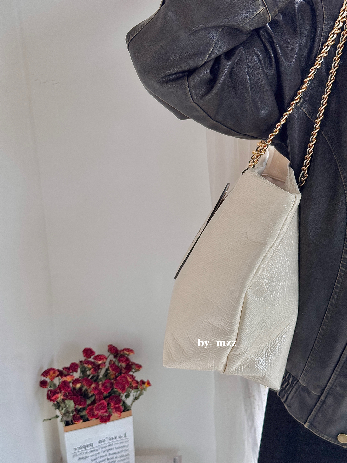 谁懂啊?燕麦色真的超级显气质。 平时休闲百搭但不失精致~ 容量不过也很大 双根链条肩带设计,时尚感十足✨ 整体来说,真的很适合追求精致感的上班族或者学生党日常使用