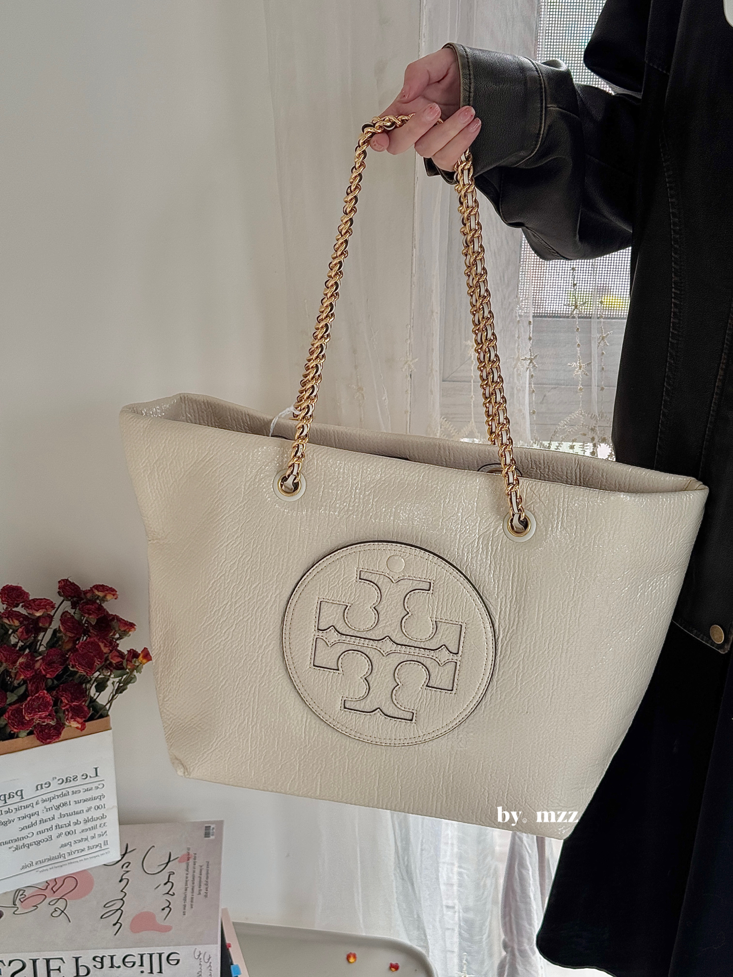 本篇笔记关联了TORY BURCH/汤丽柏琦 Ella 褶皱细节链条Logo徽标棉质托特包购物袋手提包单肩包 燕麦色等商品,为用户提供真实的使用体验和购买参考。