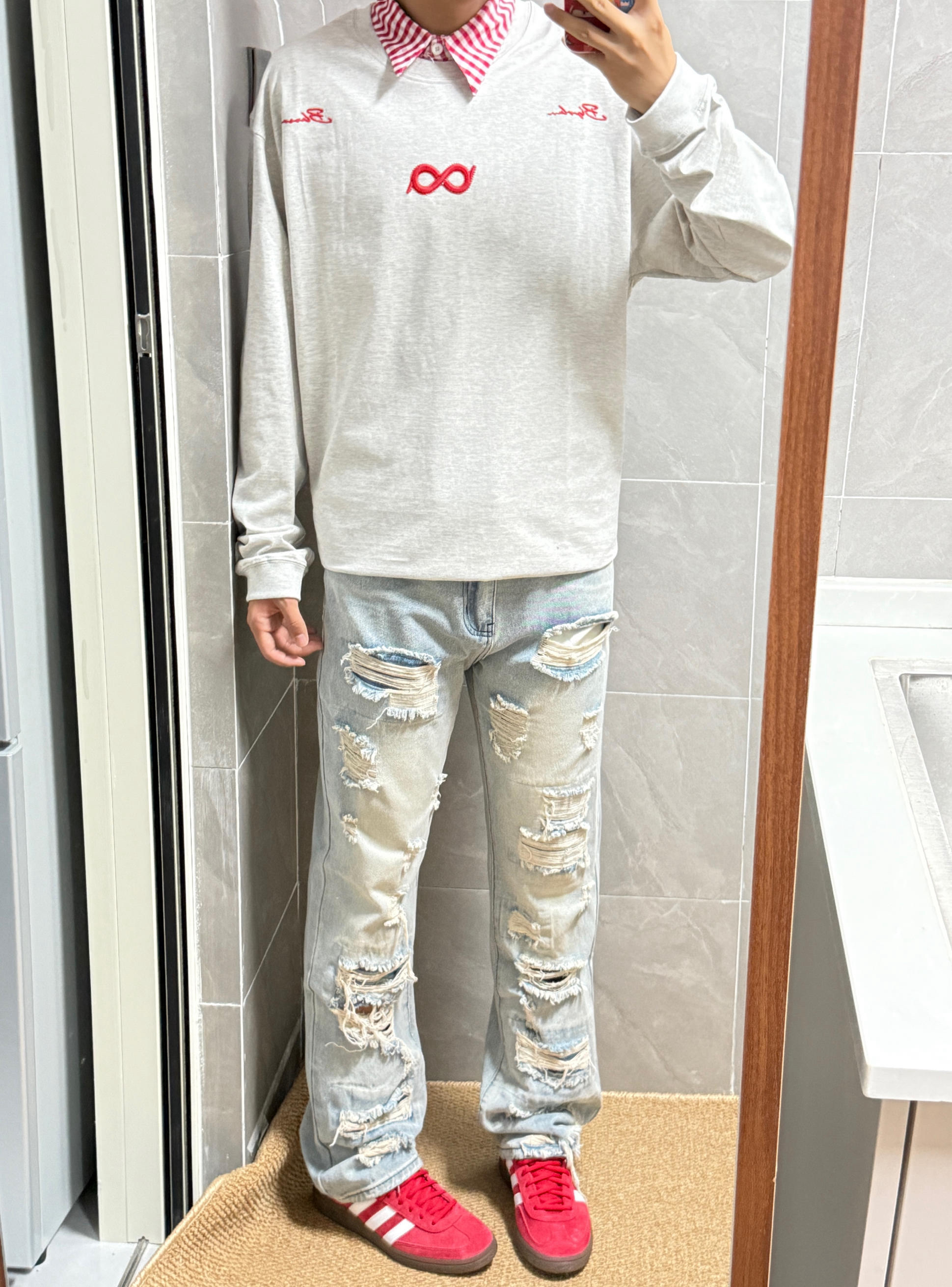 星星🌟冷帽➕红衬衫📕内搭/l /叠穿白花灰🩶刺绣Logo长袖 搭配浅蓝🩵破洞牛仔裤自带松弛感~ 红白🔴板鞋和帽子颜色呼应 让这套ootd更吸睛了👀