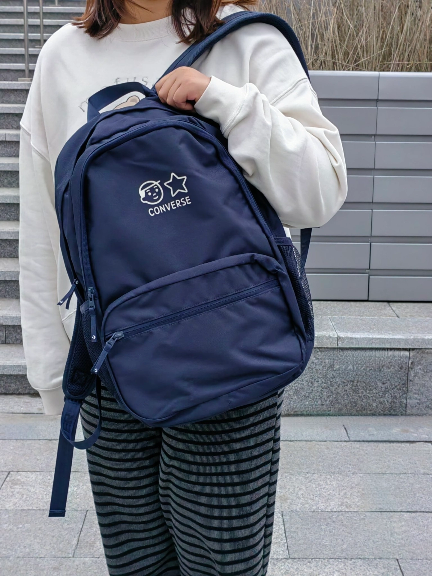这个联名真的让我一万次心动💗 Converse专属五角星⭐和 Noritake简笔画勾勒的人物形象巧妙的融合在了一起,松弛感拉满🈵,简约又充满童趣~ 包包容量也很大,两侧还可以放雨伞和水杯,无论是学生党还是出门通勤都可以背哦~