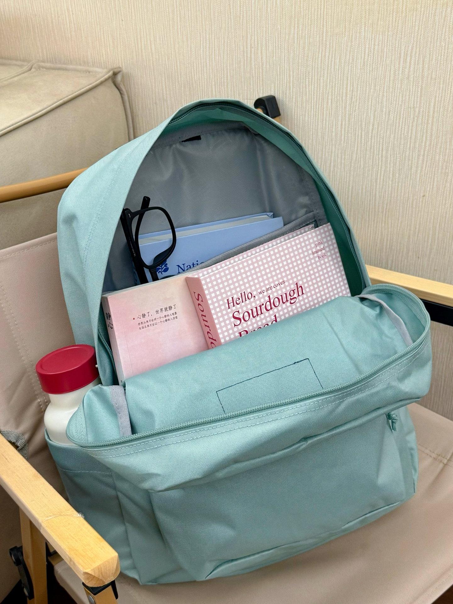 炫耀一下我的新书包 薄荷绿的配色中又带了点蓝调 , 我觉得整体色调看着好清爽 还蛮适合夏天的🍃 书包的内容量我看了下也Ok , 侧兜可以放水杯、雨伞 、拉布布 。 主打一个啥都能装! 宽肩带的设计 背着也舒服 不勒肩膀。 平时背着去学校或短途出差我觉得都够用✔️