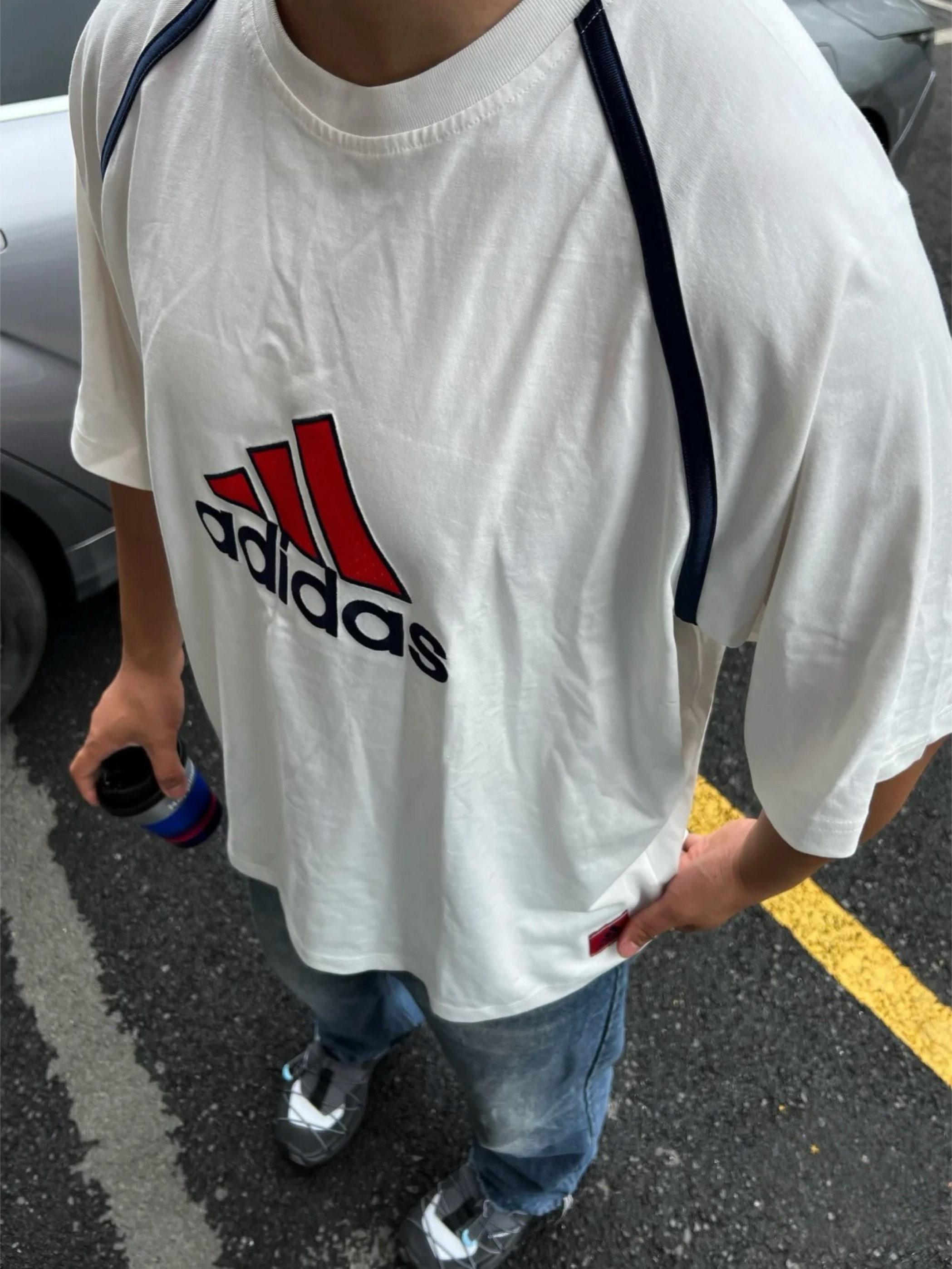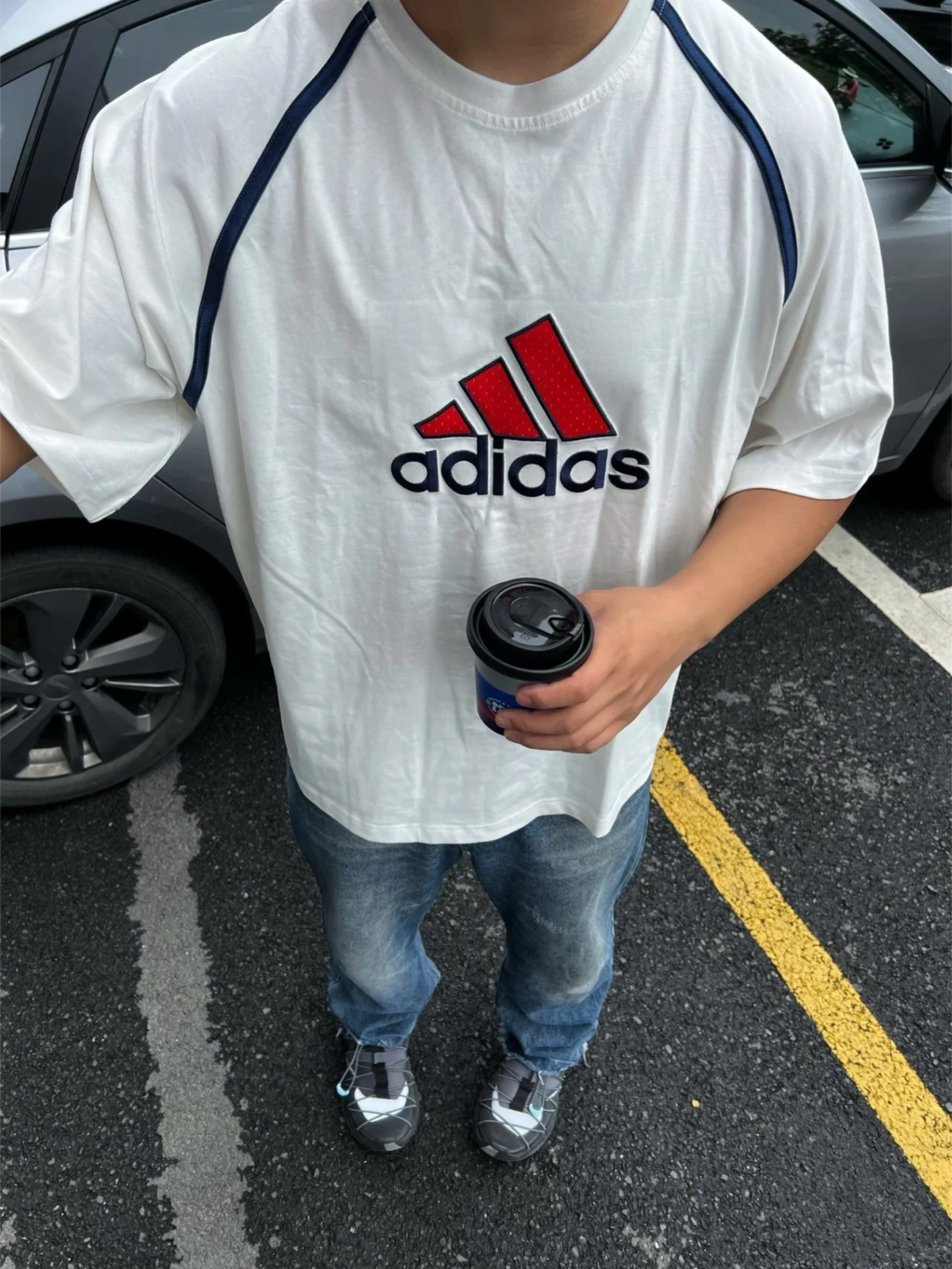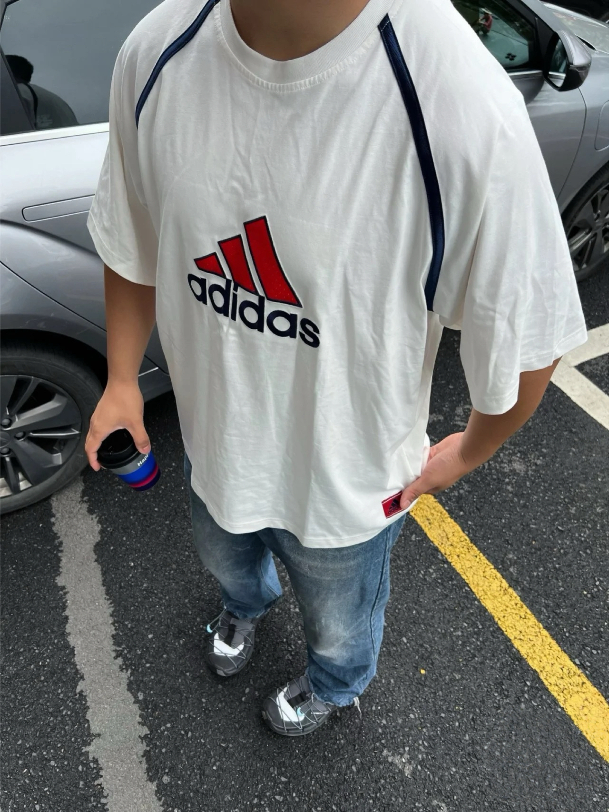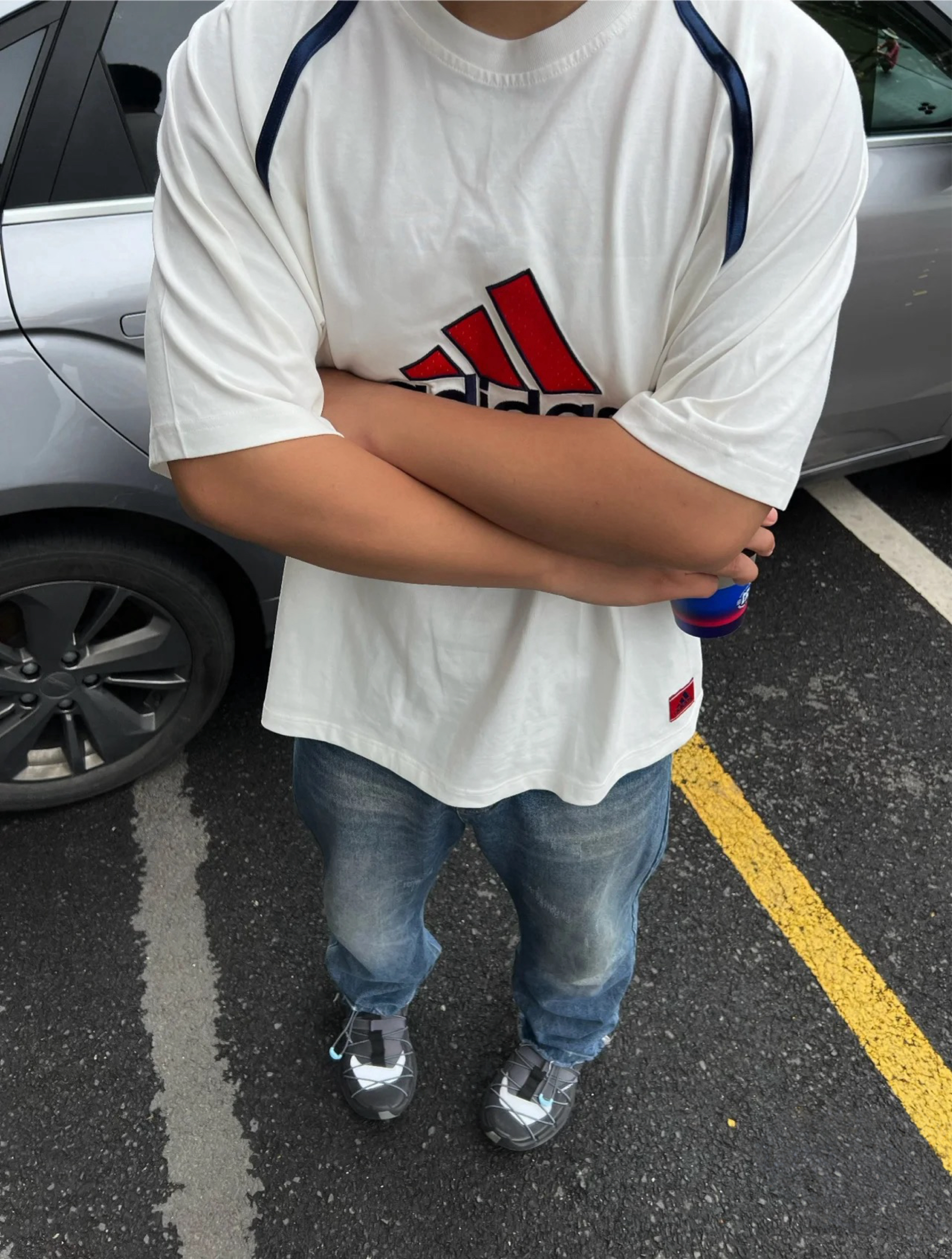 今天是夏季休闲穿搭分享 上衣选择一款白色宽松T恤 经典logo字母点缀,辨识度还是蛮高的 红白拼色也比较显眼,氛围感拉满 宽松版型不挑身材都可以驾驭 下身搭配一款修身牛仔裤 简简单单拿捏相机失序高校风