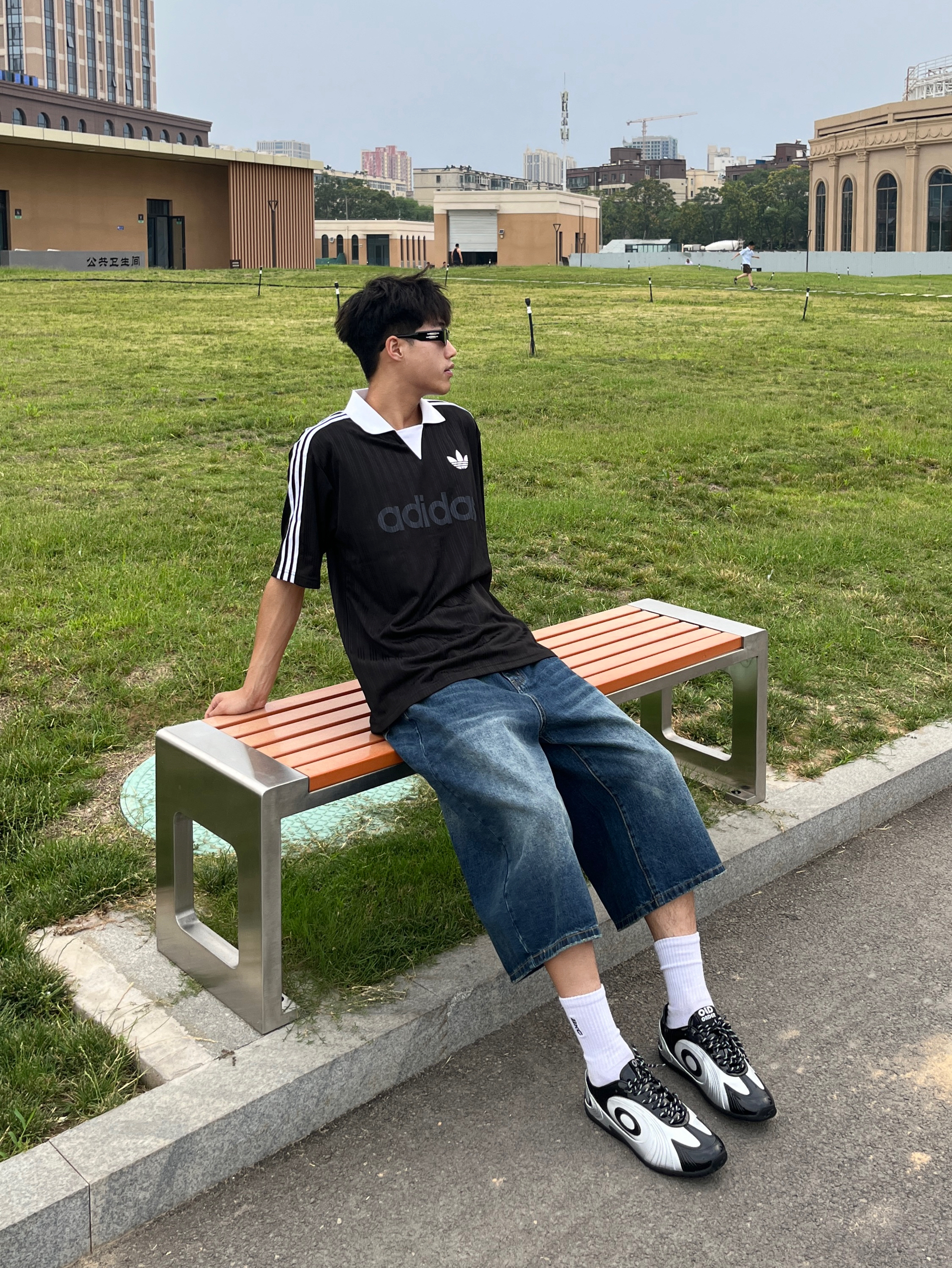 身高|体重:183/65 🧍♂️ 穿搭风格:cleanfit静态耍帅 👔 上衣:是一件灰色正肩短袖 👖 下装:水洗冰蓝牛仔裤👖 👟 鞋子:匡威白色低帮鞋