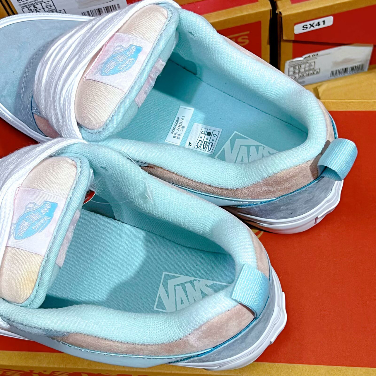 👟 VANS 新款面包鞋👟 浅蓝与粉的配色超清新,麂皮质感高级又好搭~ 叠穿堆堆袜走甜酷风,光脚穿又很夏天☀️ 潮流感直接拉满,日常出街校园暴走都适配,这波青春感拿捏住啦✨