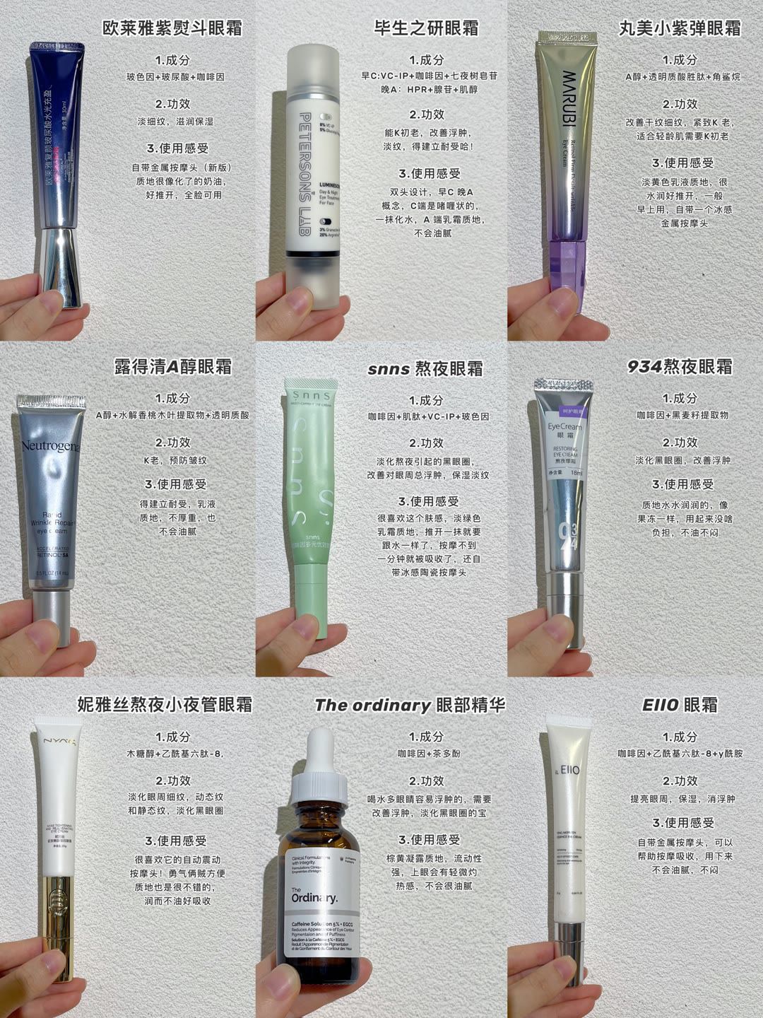一直很喜欢牛尔家产品的 推荐的东西性价比都还挺高的✔️ 这个应该是最平价最好用的了😜 眼霜主要成分就是A醇视黄醇本身 特别针对熬夜加班和用眼过度疲惫 所导致的眼周问题 (基本上都存在的问题) 简直太适合熬夜追剧的我了😂 凝乳精华质地 好推好吸收 滋润轻薄 不用担心会长脂肪粒 而且小小只 出门携带也很方便✔️ 用了一周了 越用越喜欢