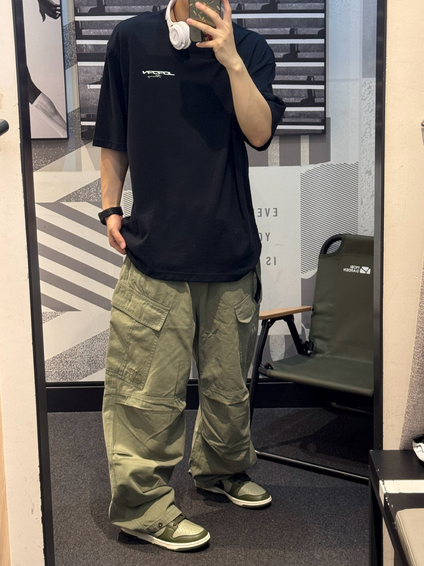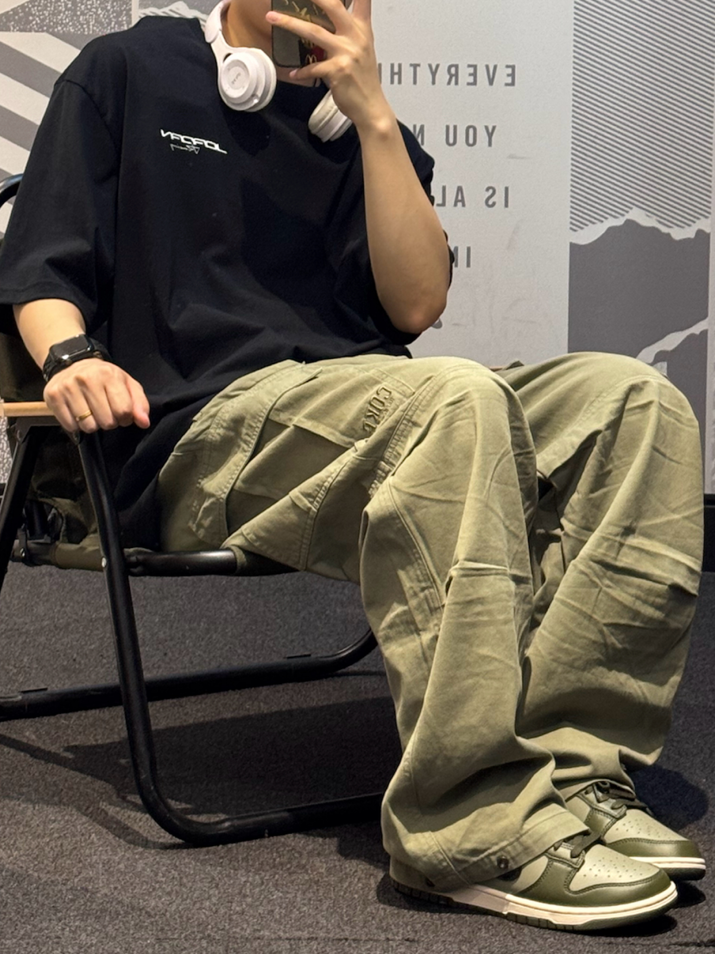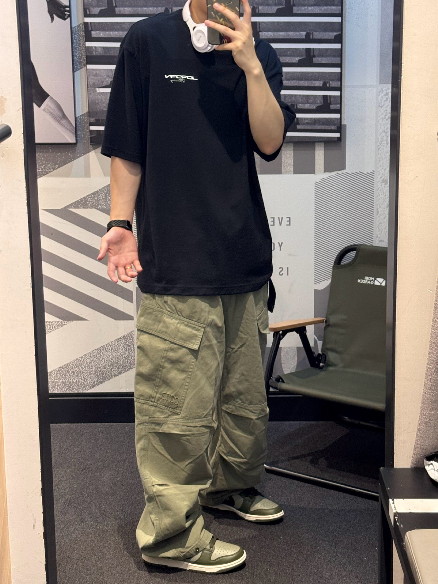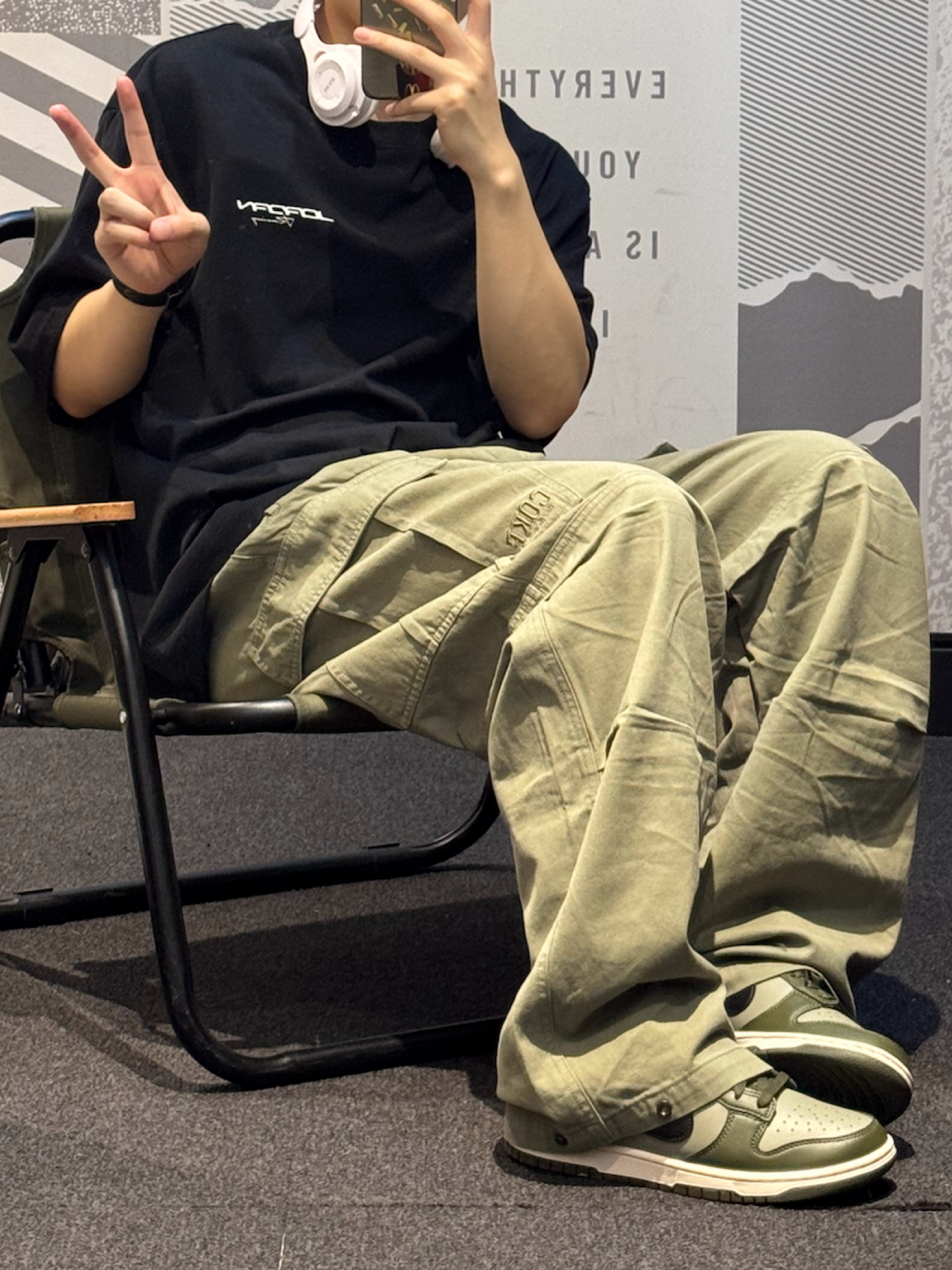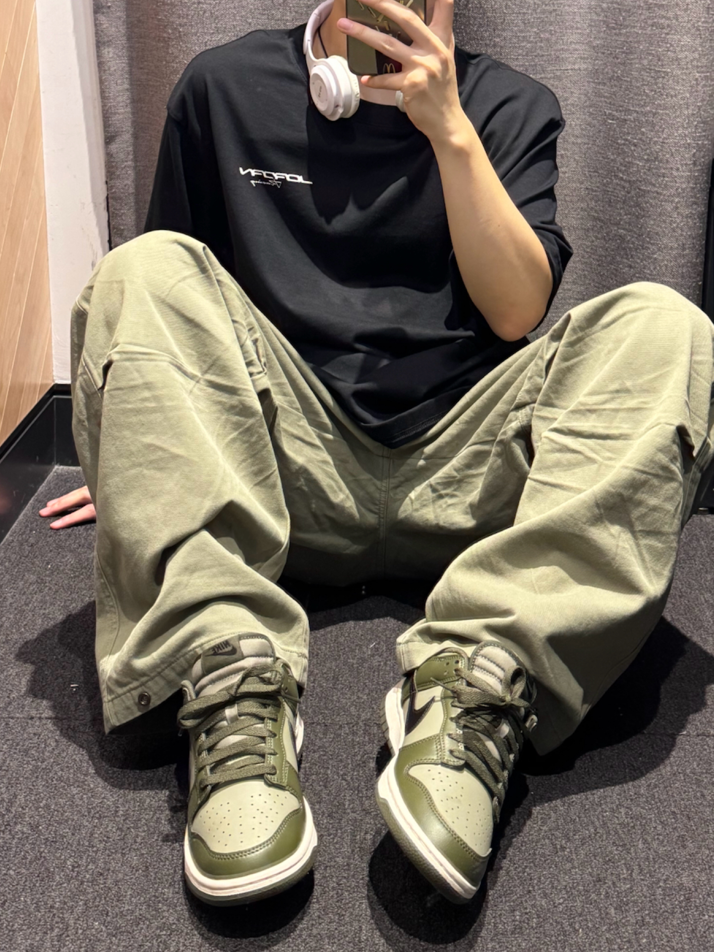 谁懂这条工装裤的含金量🥺 做旧灰绿色有点小帅‼️ 直筒宽松版型 完全不挑腿型怎么穿都好看😉 重磅工装面料 上身嘎嘎板正💢 搭配同色系dunk➕黑色T恤 轻轻松松get街头少年感穿搭 #夏天剪吊牌最快的一次 #把可乐穿身上 #夏日gymfit #这条裤子我必买 #夏日穿搭主打松弛感