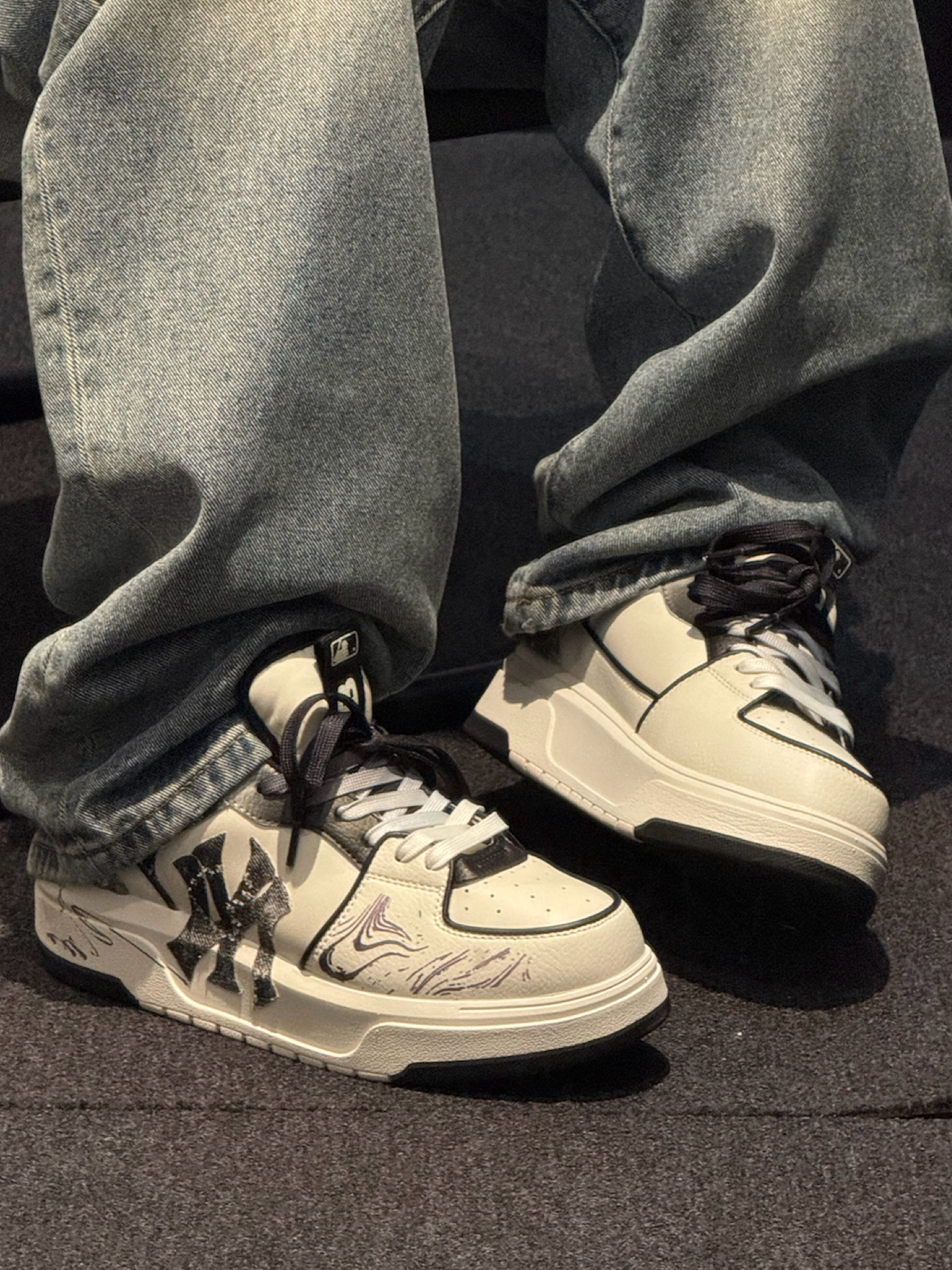 谁懂这双 #MLB 的含金量🥺 这双制定球鞋给我很大的惊喜‼️ 烂大街的普款 这个双上脚真的不一样细节感满满💯 炒爱整体做旧的风格 换了一双适配的鞋带就很搭~ 上脚增高3~4cm 小个子男生也能轻松get大长腿😉 搭配牛仔裤➕半袖黑色polo 轻松拿捏夏日少年感穿搭🎧 #万花弄 #夏天剪吊牌最快的一次 #夏日穿搭主打松弛感 #酷暑穿搭不重样 #夏日gymfit