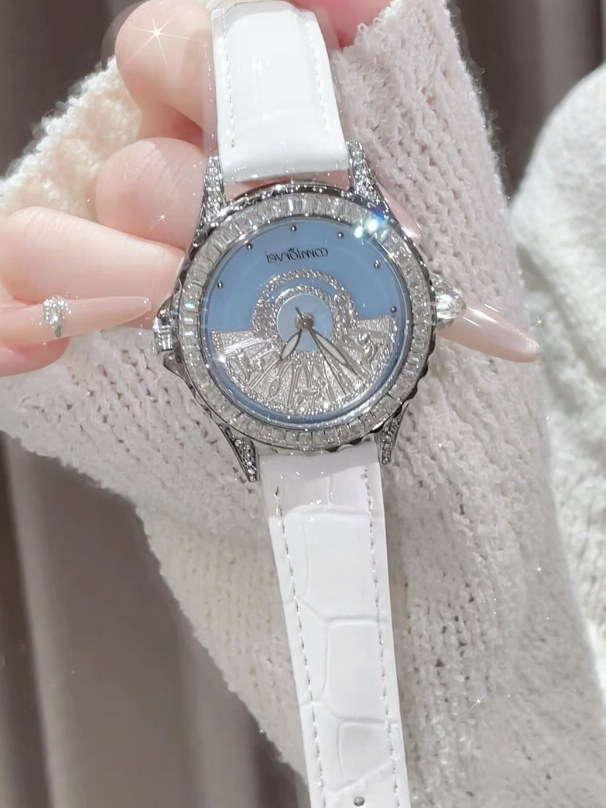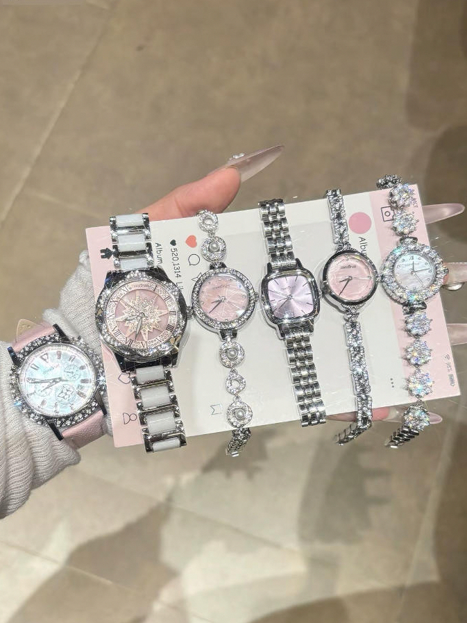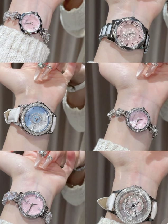 戴了一段时间还是很喜欢 我觉得作为送女生礼物也是挺合适的 1️⃣大表盘的更有存在感 还可以旋转 适合出去旅游的时候戴它们 蛮亮眼✔️ 2️⃣小表盘款像小手链一样 进入职场后我就很喜欢这种气质款 搭配小香风或者修身上衣都很有调性