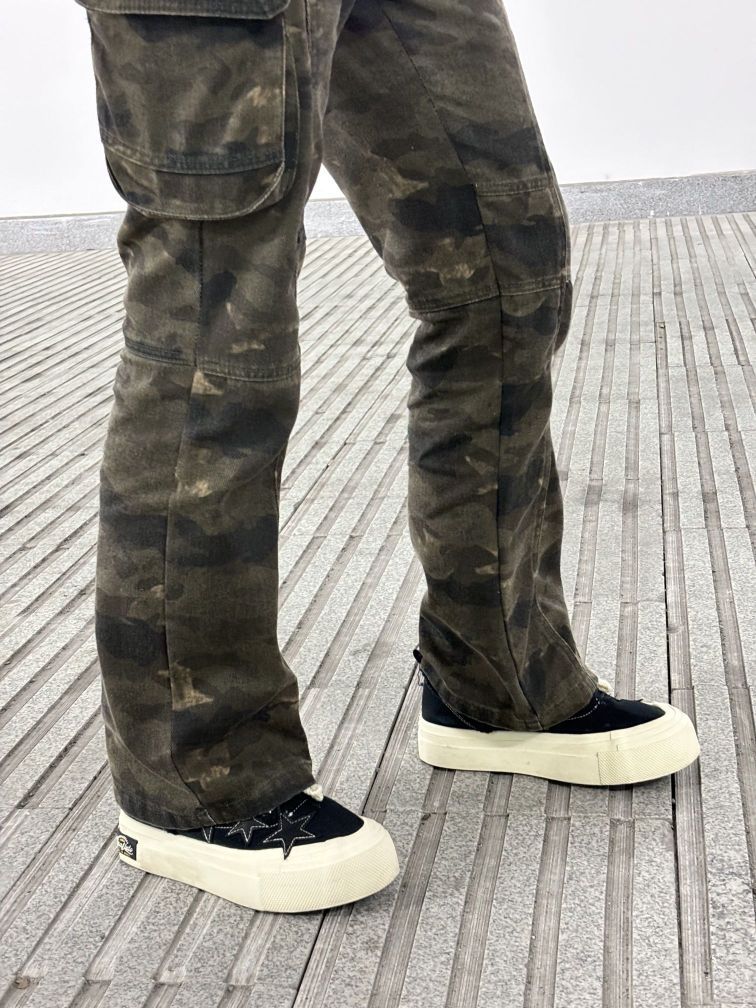 家人们!这条微喇迷彩工装裤也太绝了吧!上身超级舒服透气,料子贼有质感~ 经典迷彩图案怎么搭都好看,随性又时髦!微喇裤型尊滴谁穿谁腿长!工装风口袋酷酷的还很实用~ 日常出街、凹造型就选它了!入股不亏~盘它!