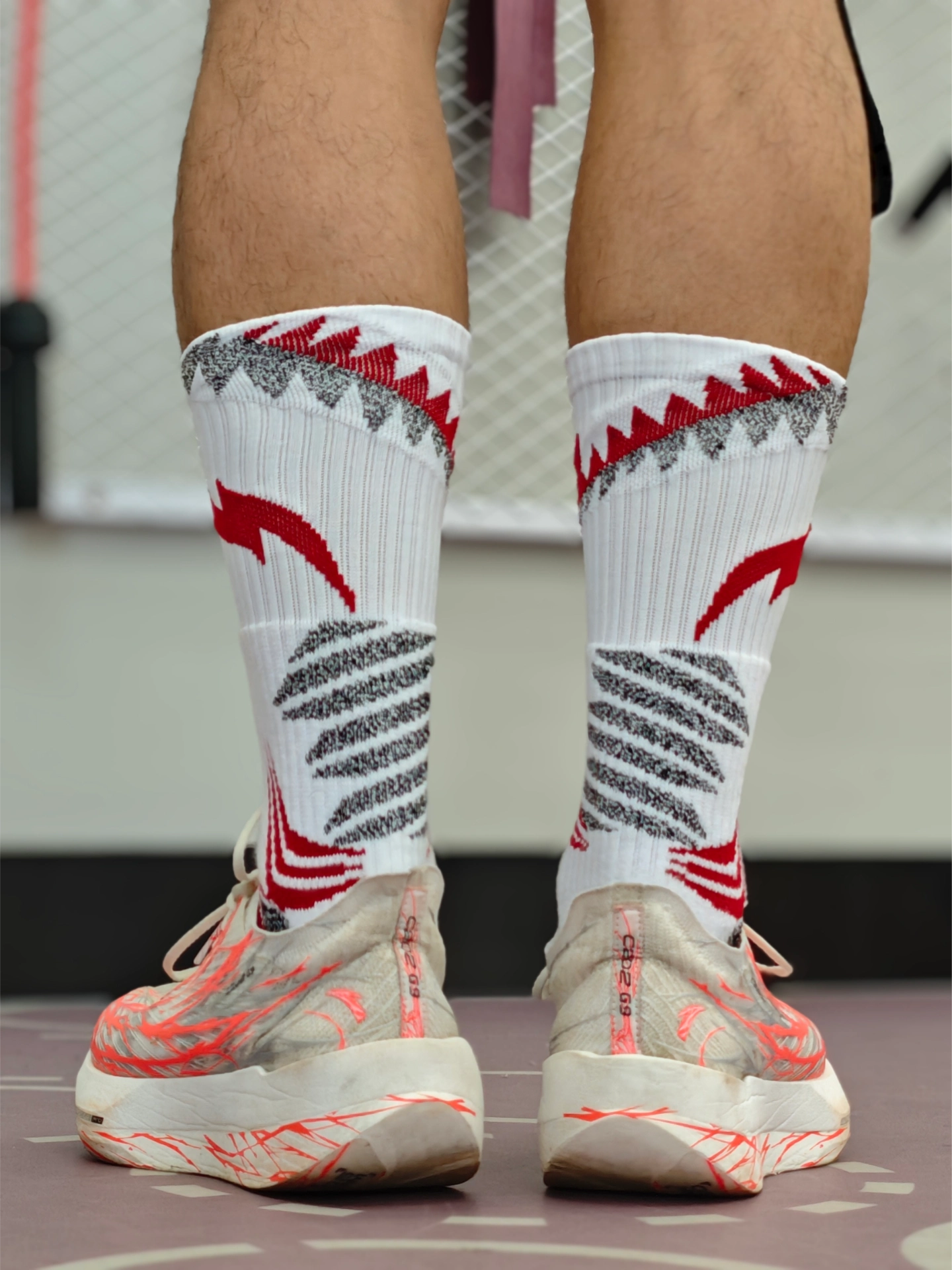 哈喽,兄弟们,今天给大家带来一款#维动 VEIDOORN 的狂鲨篮球袜。 袜子上脚很好看,白红配色非常百搭!!!袜子上脚也很舒服,不会觉得勒脚,袜底独特的防滑设计,运动一些对抗性的时候也非常稳!不会位移[机智_blue] @维动VEIDOORN #黑皮白袜体育生 #维动袜子篮球袜 #超好穿的篮球袜子 #运动怎么能少了这双袜子 #分享我的篮球袜