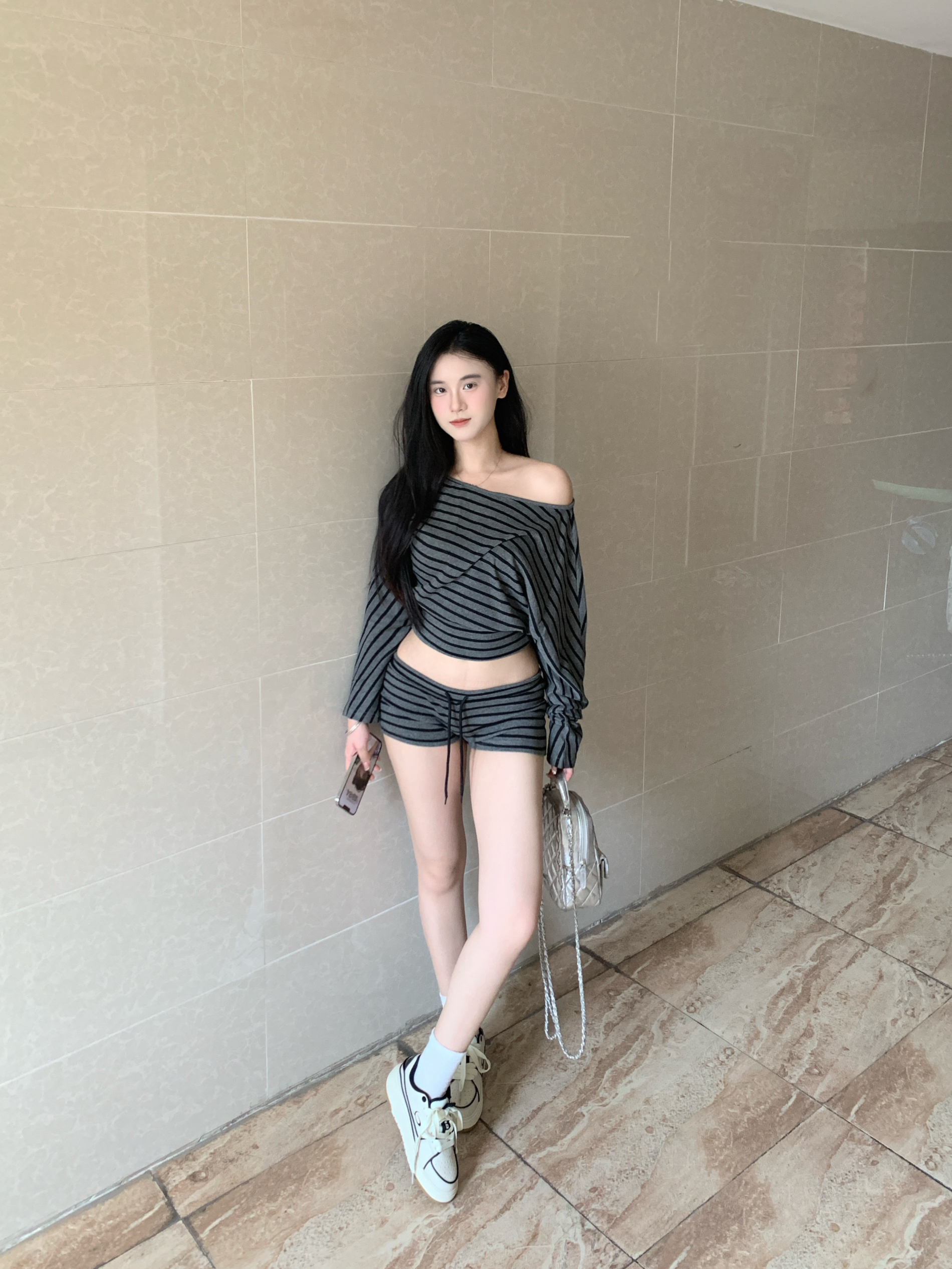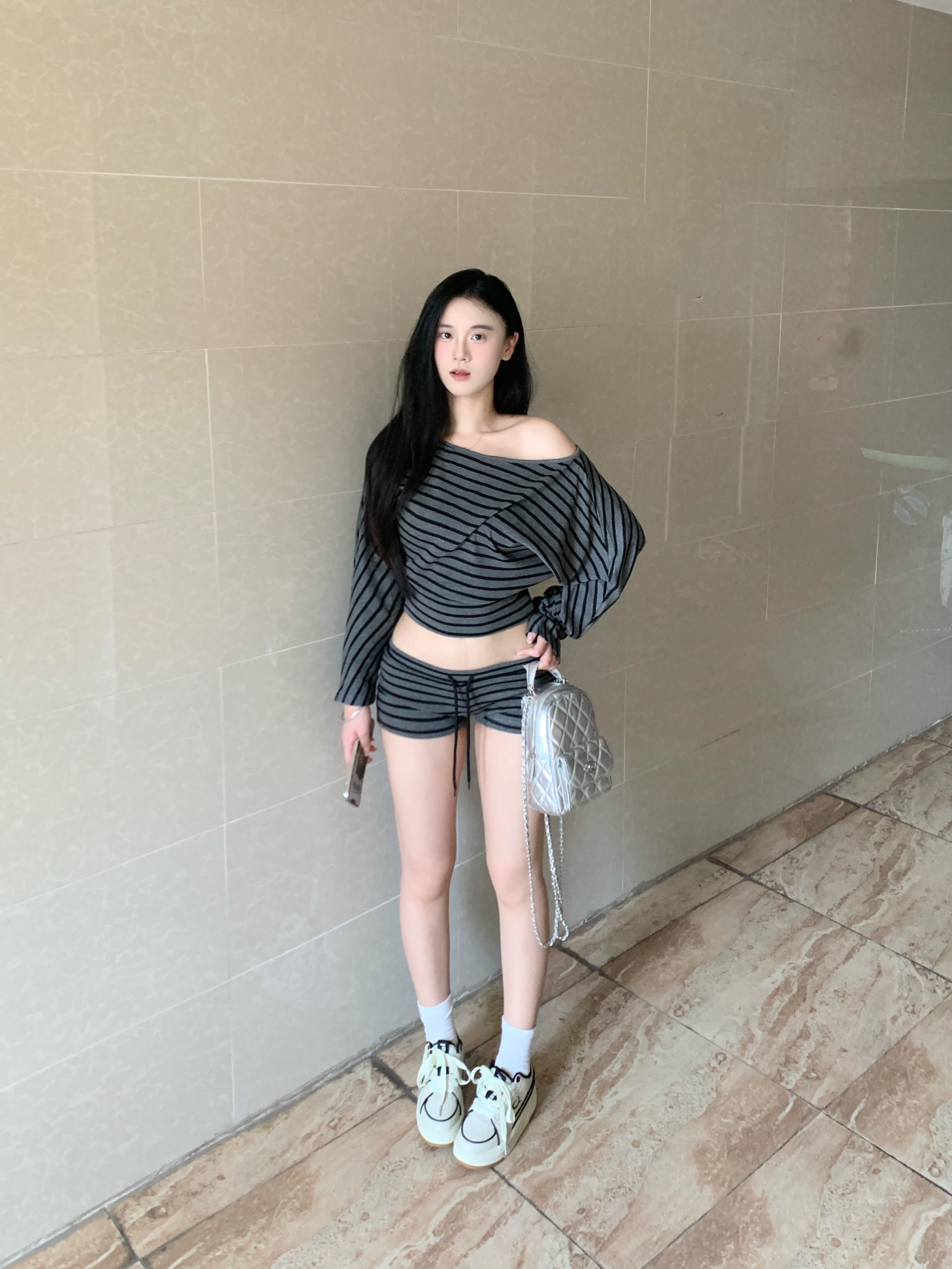 灰色条纹套装十休闲鞋 整套穿搭即慵懒又高级!搭配上这个休闲鞋简直就是我很喜欢的一套!