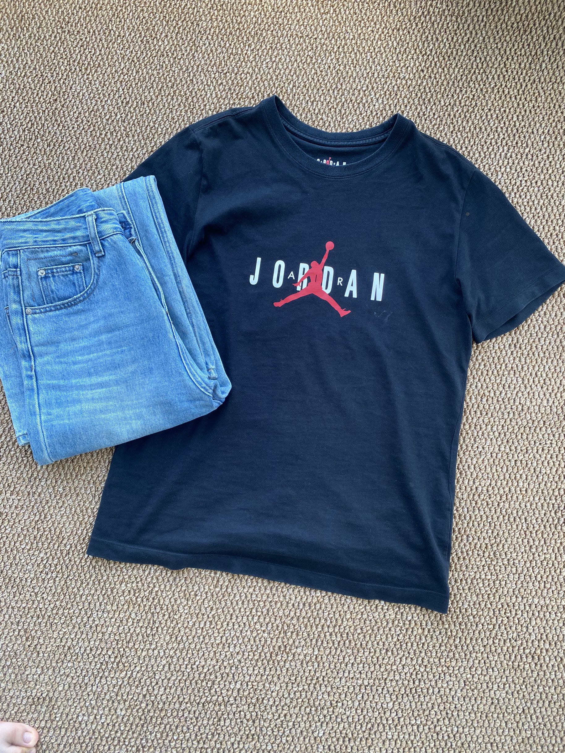 jordan这件T恤我真的爱了😍前后的logo都是印花的,但不失质感,面料是棉的,穿上亲肤不戳人,已经穿了两年了还没出现变形、褪色的现象,搭配一条牛仔工装裤真的少年感满满✨日常逛街、上班都可以穿~