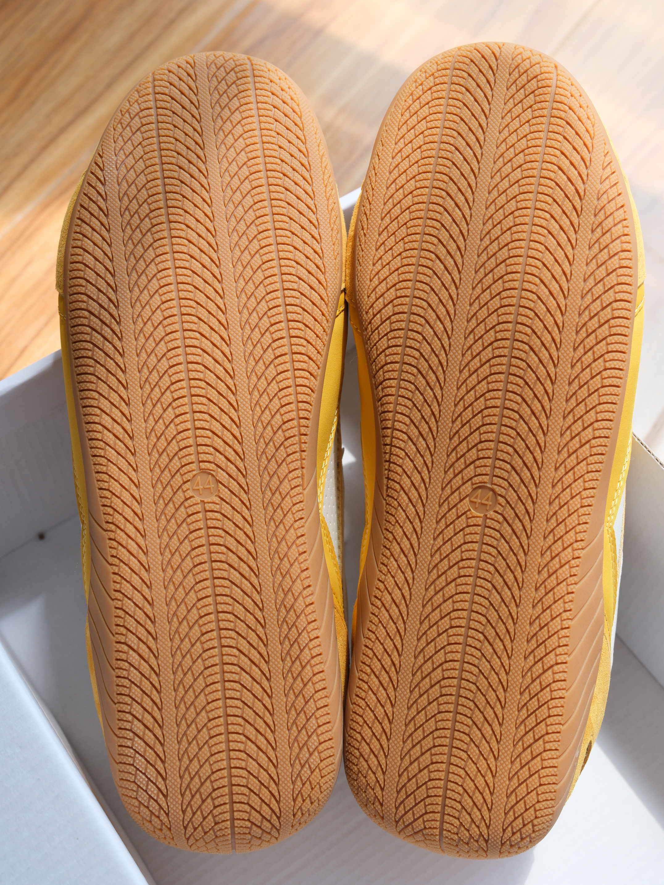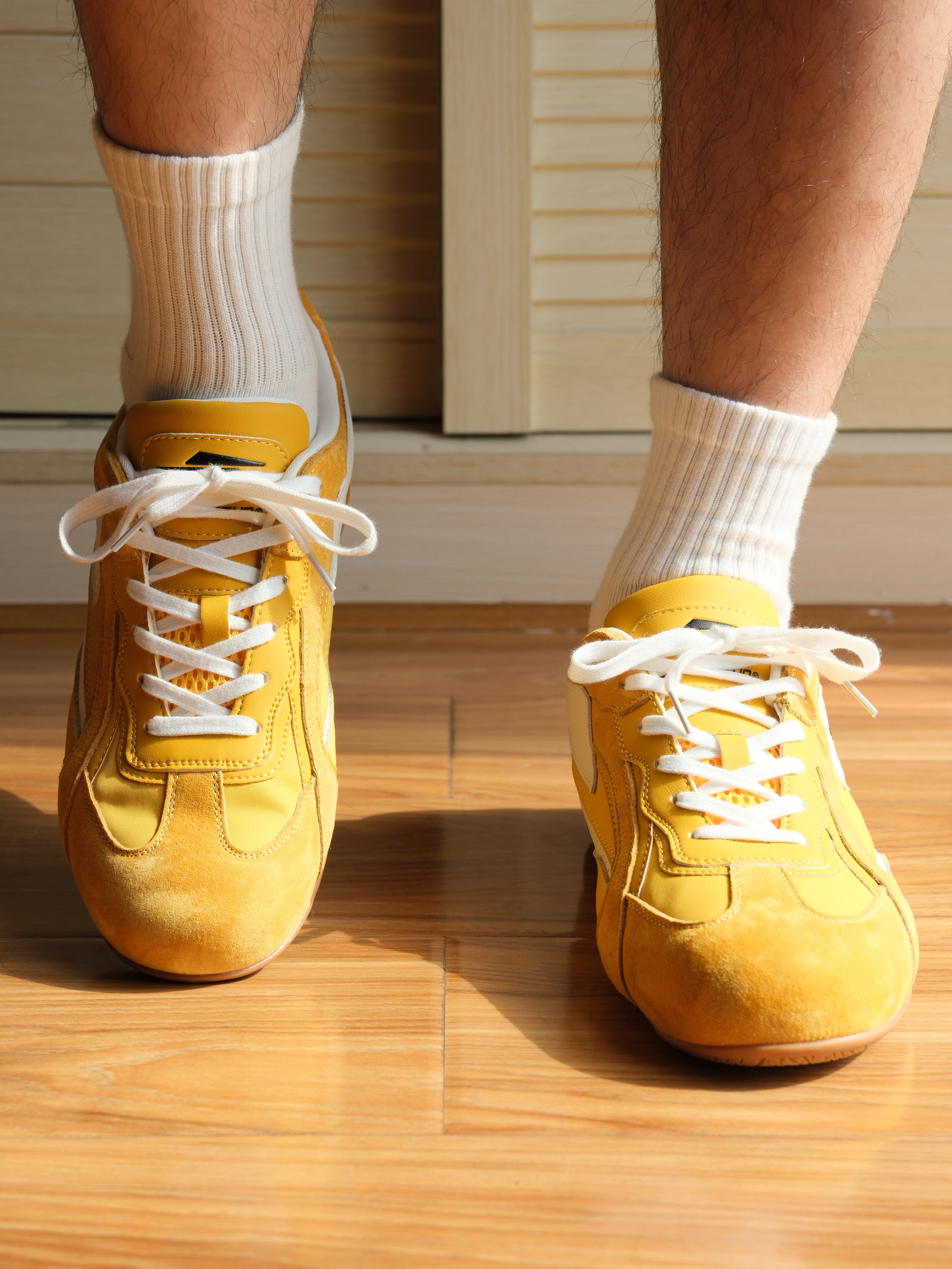 黄色鞋子依旧是多胺安显眼包吧~ 夏季也是比较适合个性穿搭的季节👀 这双薄底赛车鞋我觉得还是蛮吸引我的🤩 赛车鞋的外观也保留了德训鞋的风格整体比较复古~ 是属于比较耐看的类型✨ 尺码上感觉没有偏码,正常选呢~ 面料还蛮厚实的,上脚包裹感比较强👍 整体做工比较细,面料拼接的地方缝制的比较均匀~ 鞋垫比较厚实弹性不错,走路还蛮舒服✅ 上脚个性感还是比较足的,妥妥的显眼包🥳
