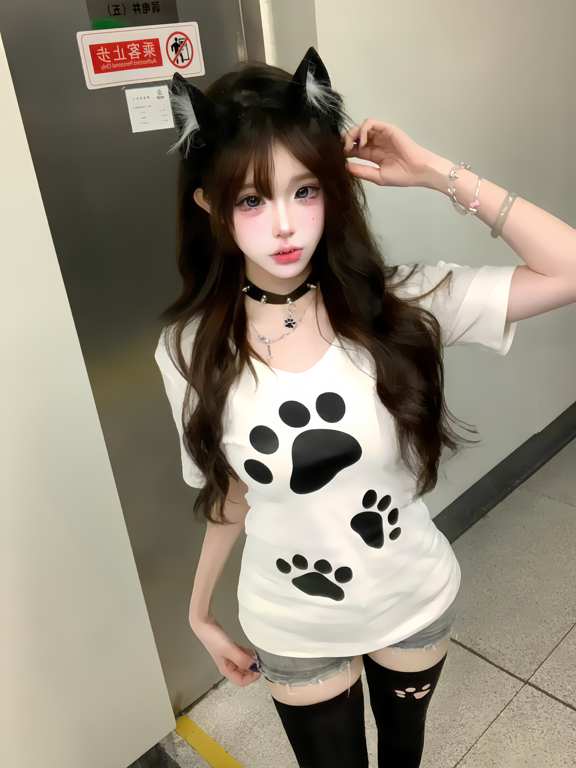 被这件带猫爪印花的上衣狠狠戳中!软萌又俏皮,面料也很舒服,搭配小裙子或者短裤都超合适,一整个甜妹氛围拉满,爱惨啦~