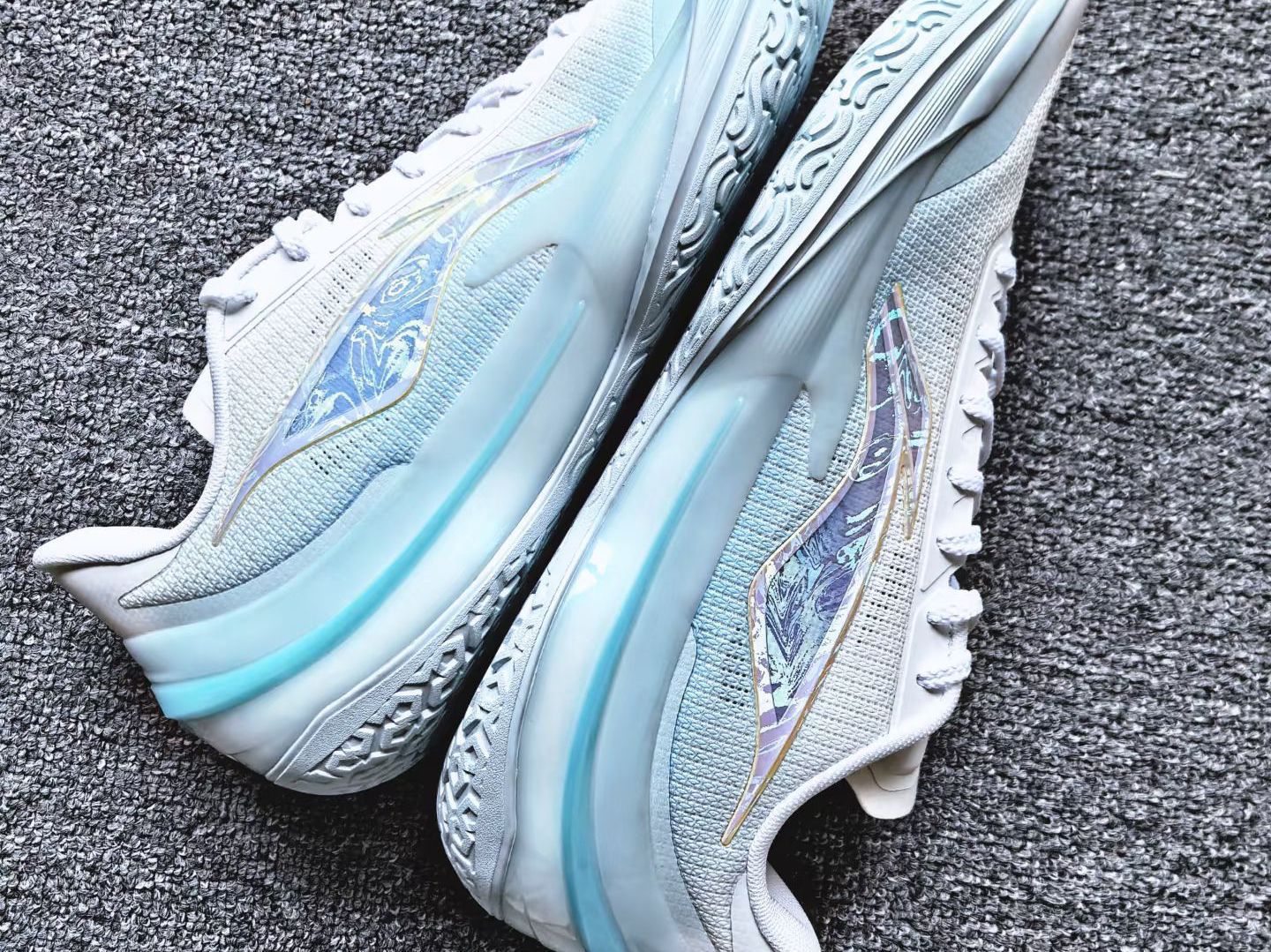 这双看起来就十分凉爽通透的利刃5V2「波光」🧊🧊🧊!整鞋的淡蓝色处理相当应季百搭,波光粼粼的吸睛大Logo就像跳入夏日的泳池一样清凉惬意,组合起来给人一种非常有生命力的感觉~ 后跟利刃Logo加强筋的蓝色细节我们也很喜欢,无论什么角度都是满满的夏日风情~可以说真的非常适合现在这个初夏的季节上脚! 实战方面绝对是上半年目前为止的TOP鞋款之一,体感轻质贴地的同时,聚核芯中底还兼顾启动爆发的需求以及团...