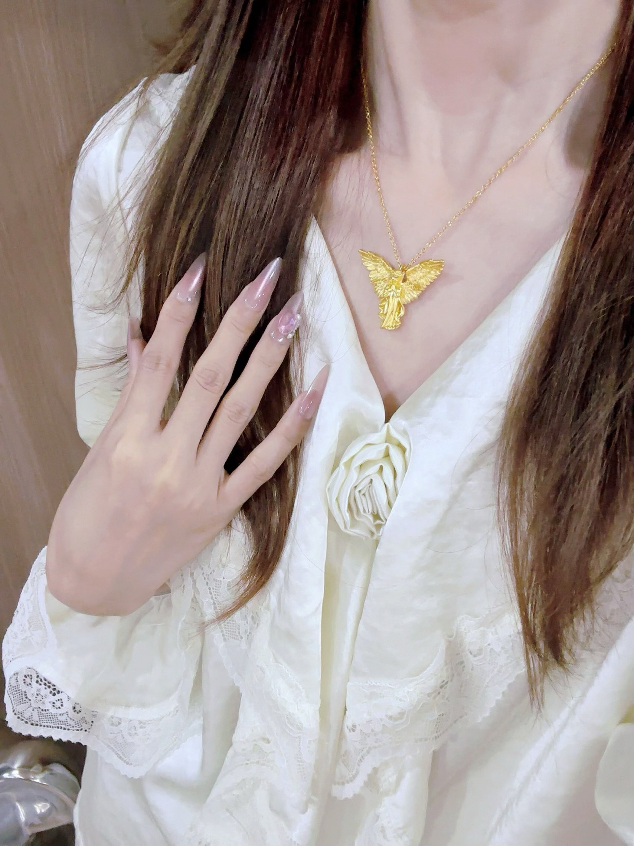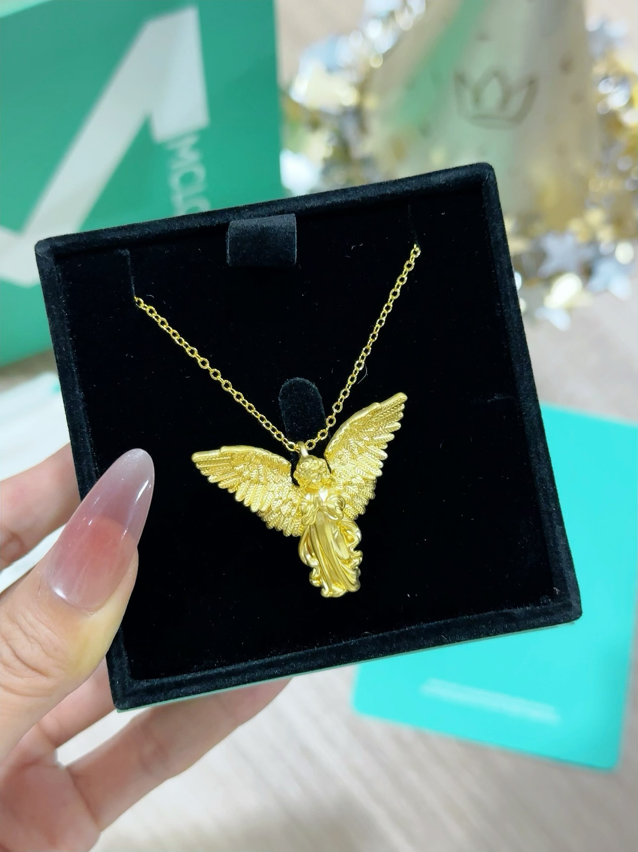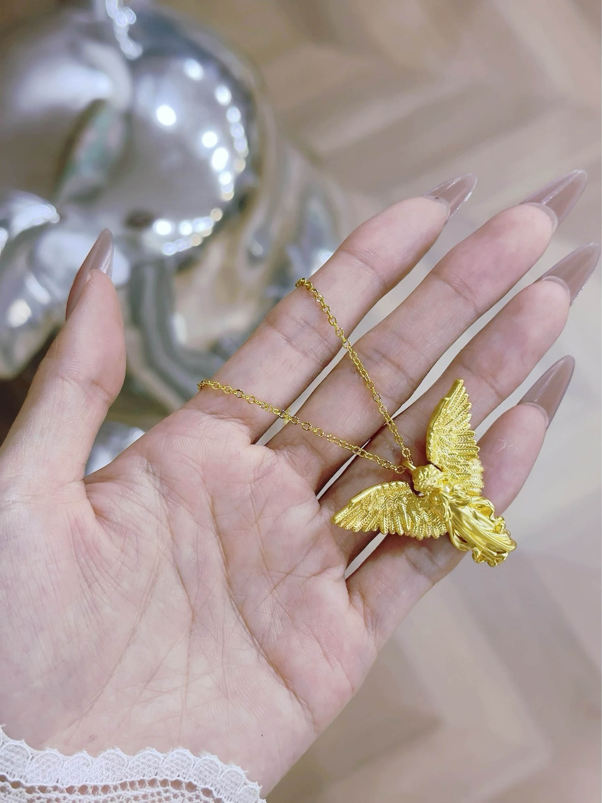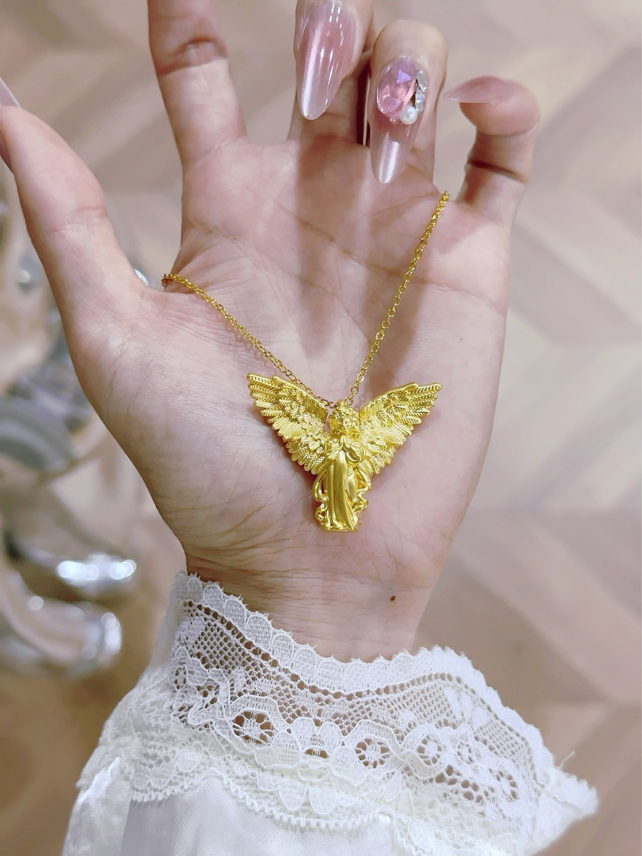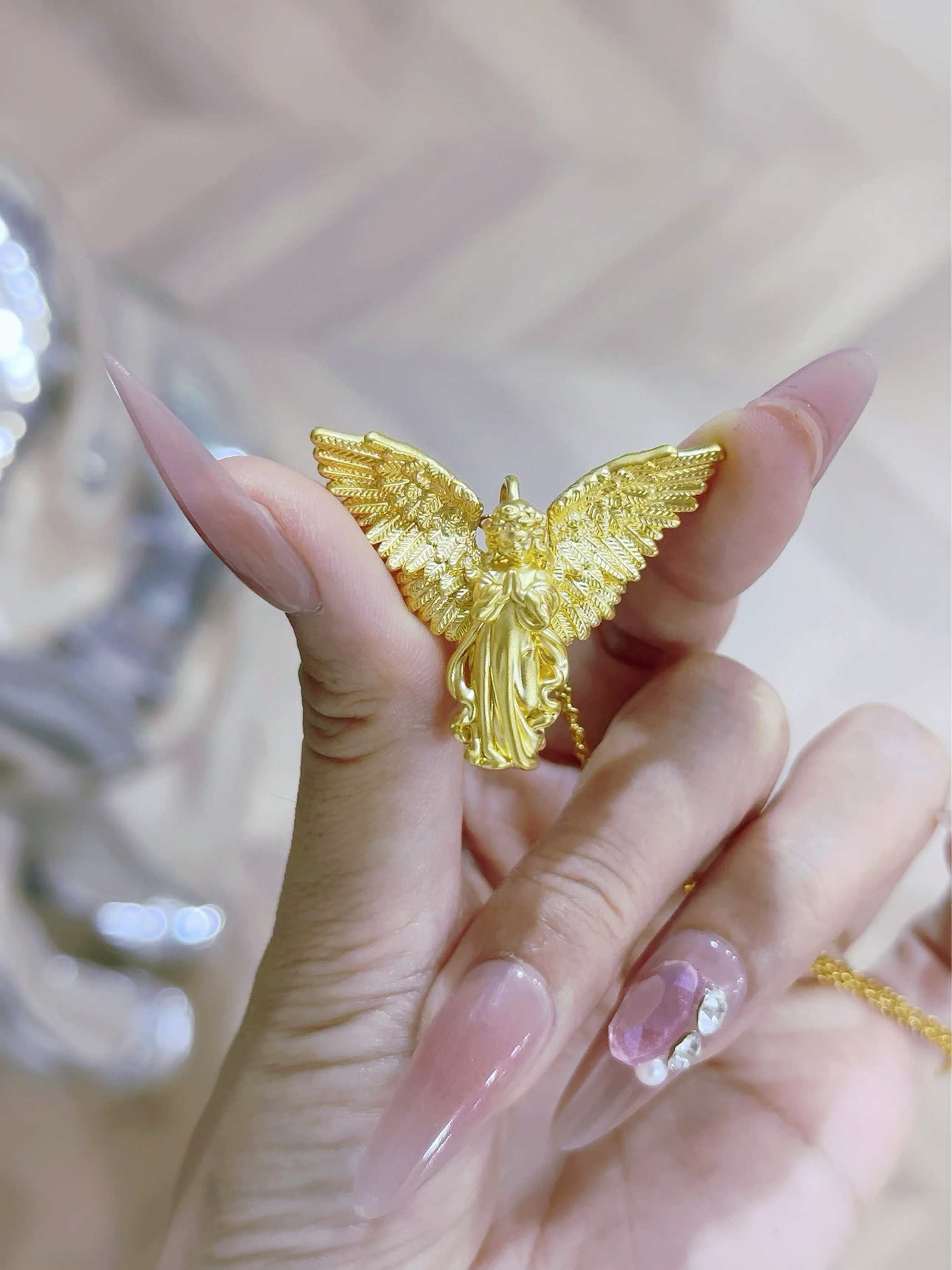 最近买的金金一个赛一个的美! 天使女孩吊坠 软萌小天使造型谁能说不可爱 像把童话里的美好摘下来戴身上 每个天使都有它独特的寓意,希望它能给我带来好运气~ 太喜欢黄金了,夏天一定要戴起来!!