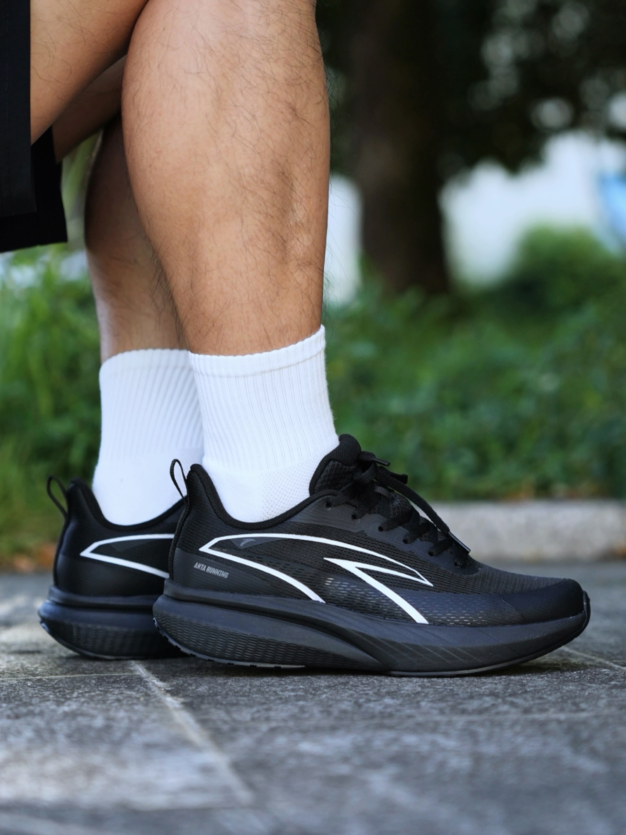 最近一直在体验这款安踏的云踪PRO,真的是又帅又好穿! 黑白设计简洁清爽!倒踏的LOGO也很有识别度,上脚效果非常不错,而且相对来说也更耐脏! 脚感软弹,日常通勤户外运动都能兼备,快来体验一下! #跑步装备红黑榜 #跑鞋新品速报 #穿这双回头率超高 #跟着跑者选装备 #安踏云踪pro