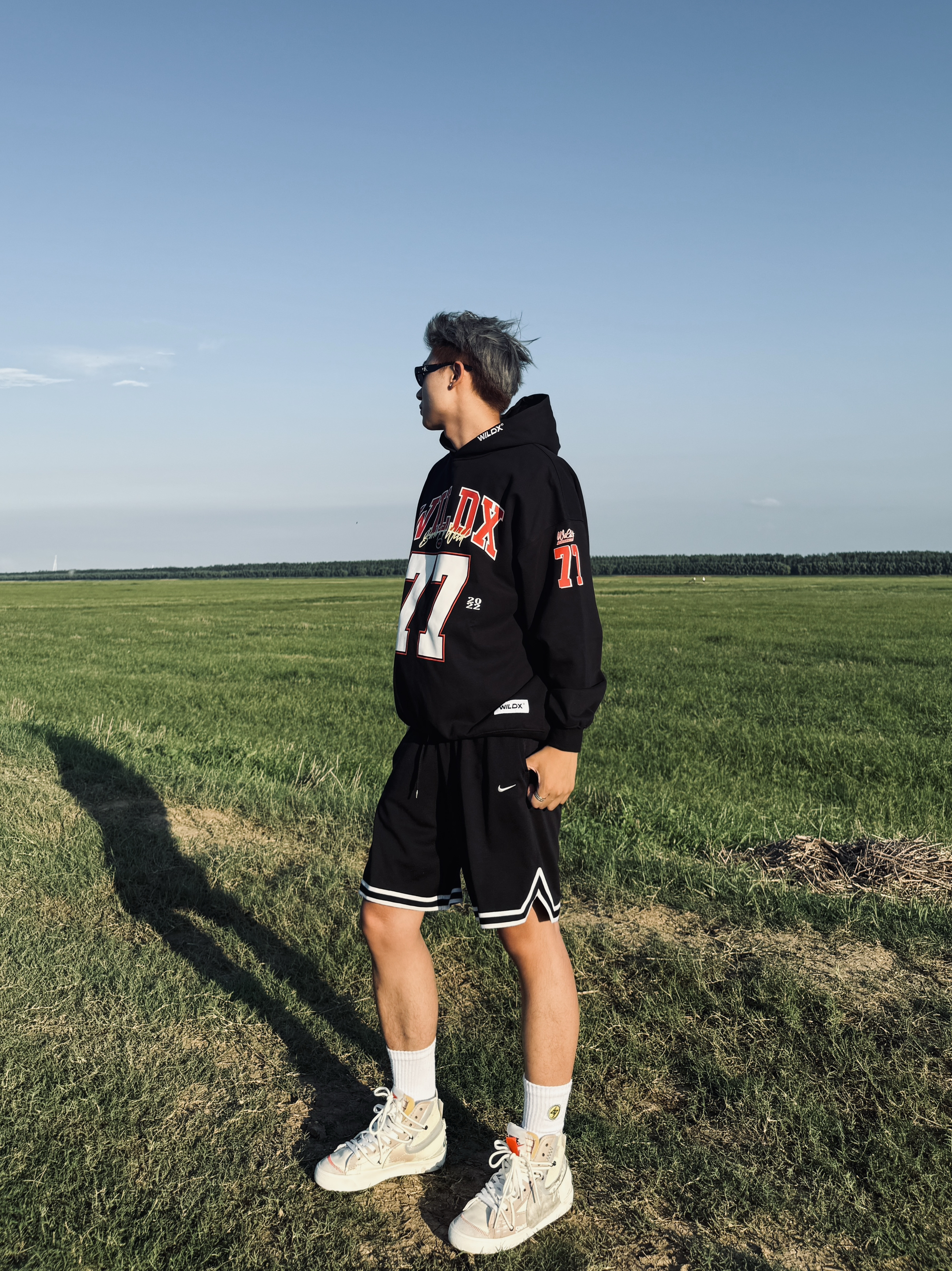 冰美式今日穿搭🧗 明天给大家分享一套入秋打球ootd — 👔上衣一件经典的美式橄榄球卫衣 黑红配色真的不过时 版型还是我还是喜欢💕 — 🩳裤子搭配了一条速干运动短裤 黑白条纹设计颜值在线🪢 — 👟鞋子是一双nike Blazer 定制球鞋 — 身高/体重:178cm/70kg 👔l👖xl👟41