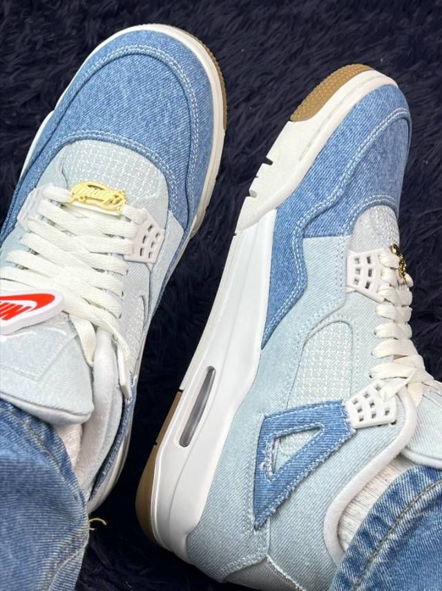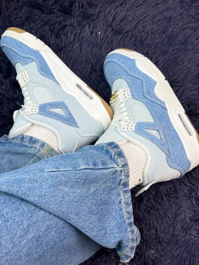 入手这双AJ4牛仔款有一阵啦~浅蓝牛仔布拼接,复古又清新,金色吊牌小细节挺戳人✨ 日常搭浅蓝牛仔裤,同色系呼应很和谐,配简约白T就很清爽;或搭黑色束脚裤,撞色也不违和。 不过说缺点,牛仔面料打理得小心,沾了污渍不太好清洁🧽 而且鞋型偏窄,脚宽的朋友穿久了会有点挤。 上脚脚感还算舒适,但别指望有超软弹体验,就是常规AJ4水平。整体是有风格但挑场景的鞋,喜欢牛仔风和AJ4的可以试试,追求完美适...