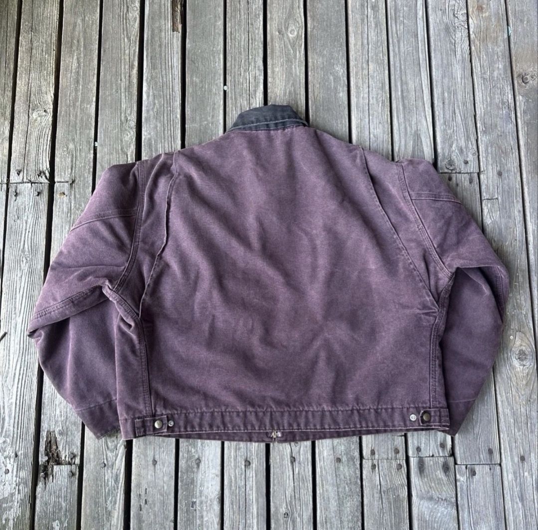 Carhartt 做旧紫夹克|复古工装风 今日分享超爱的一件Carhartt 老货,做旧紫配色太绝,复古又独特✨ 整体版型硬朗,经典工装设计,领口黑灰拼接、胸前口袋与标志,细节满满🏷️ 水洗做旧带来的自然磨损感,岁月痕迹拉满,穿上自带街头故事感~ 搭配牛仔裤、工装裤都很炸,日常出街或citywalk ,轻松拿捏复古工装氛围,谁穿谁酷💥 复古爱好者、工装迷别错过,入手一件,开启你的个...