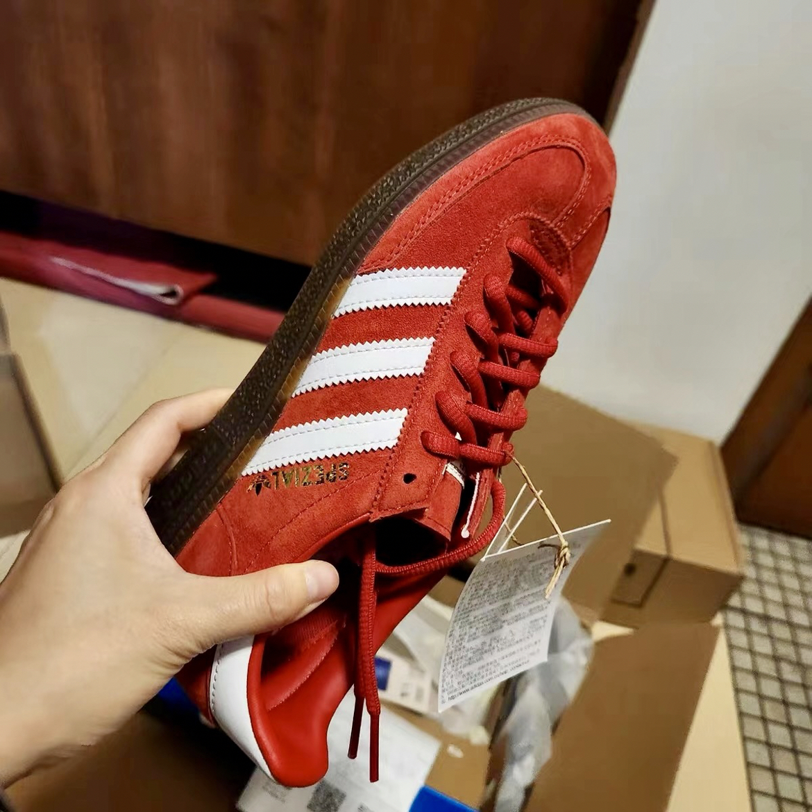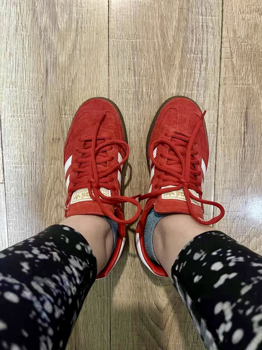 本篇笔记关联了【王安宇同款】 adidas Originals Handball Spezial 薄底鞋 T头鞋 德训鞋 板鞋 简约百搭复古轻便防滑耐磨 猩红/白色/金属金等商品,为用户提供真实的使用体验和购买参考。