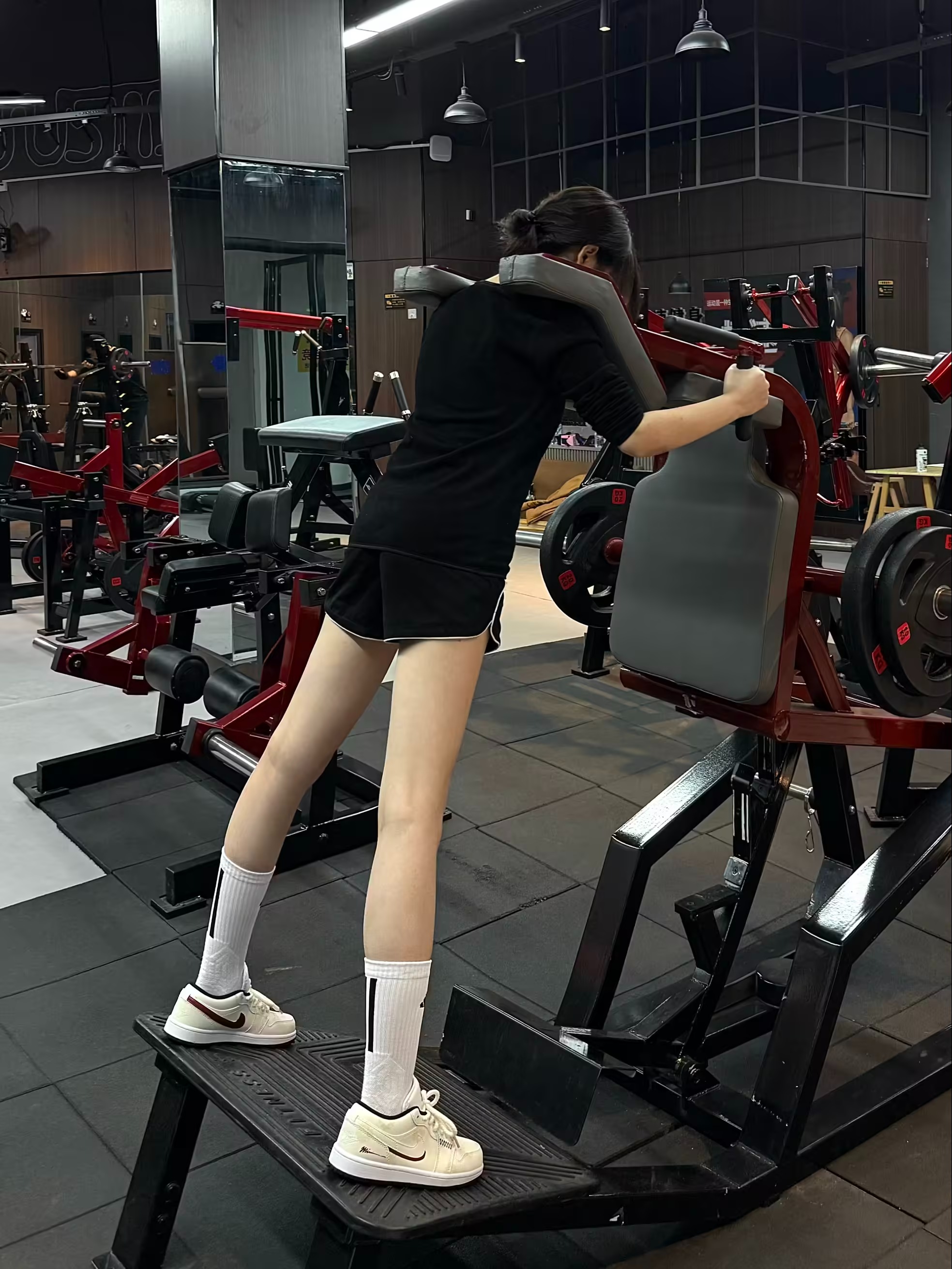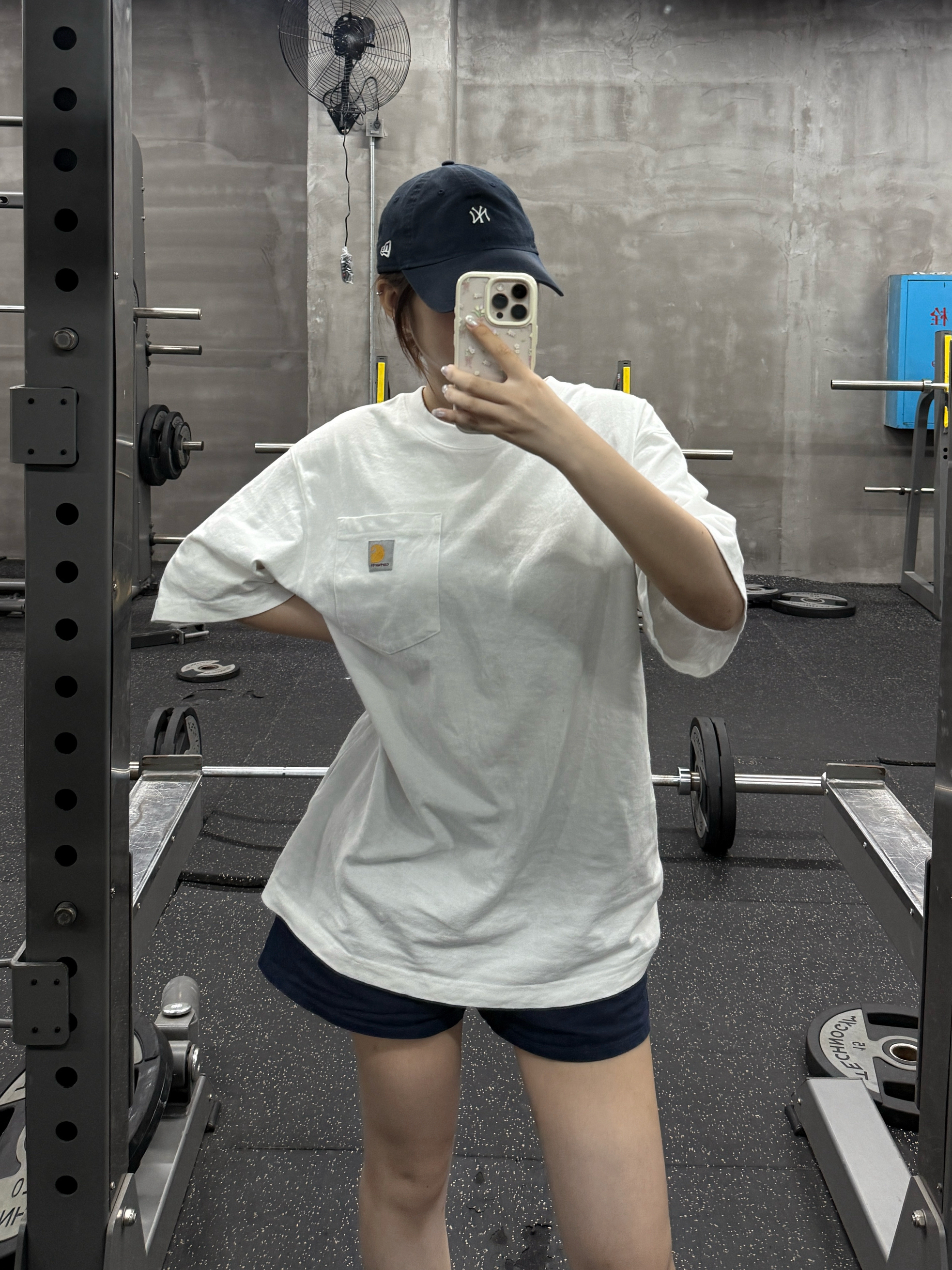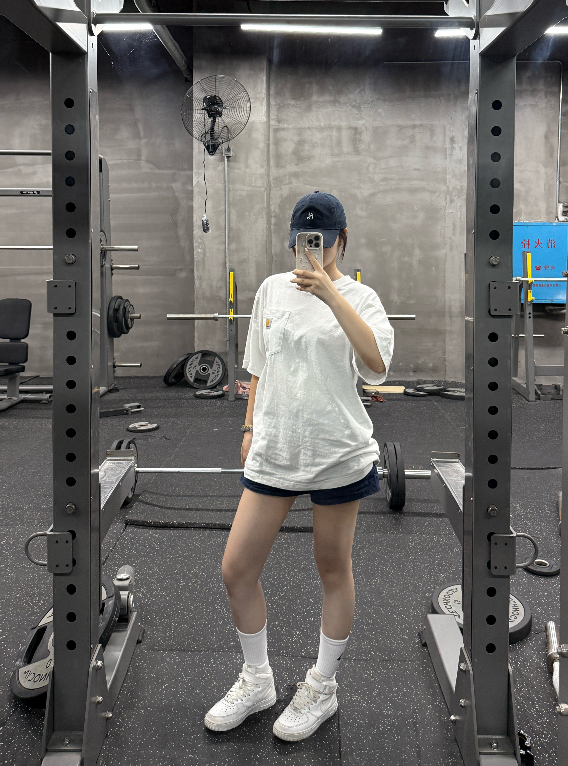 这身健身房穿搭超赞!简约白T宽松又有范儿,短裤露出利落线条,白袜配小白鞋清爽利落,戴个帽子增添随性松弛感~ 运动时方便舒展,把“舒适与时尚兼顾”拿捏住,妥妥运动达人既视感