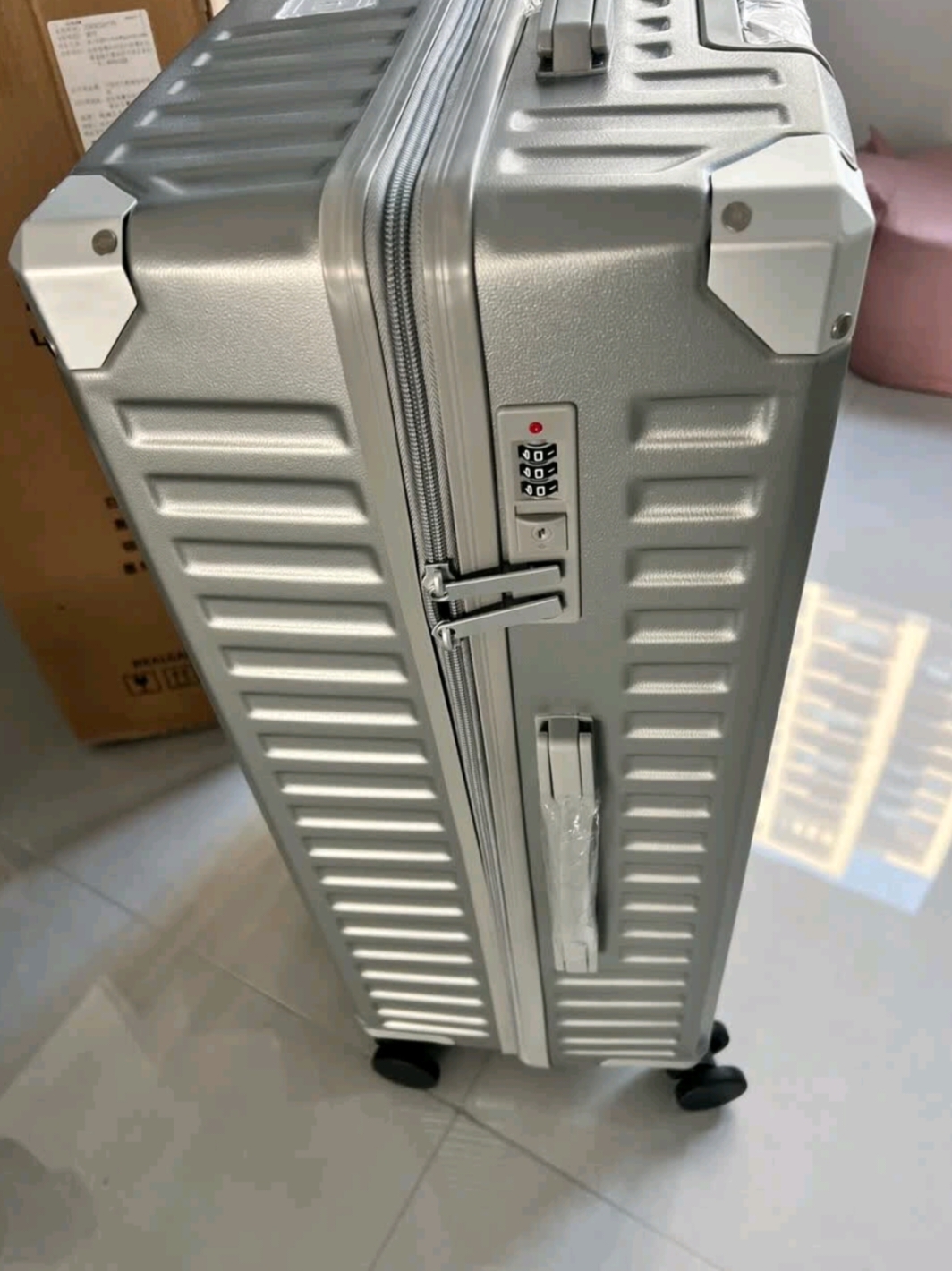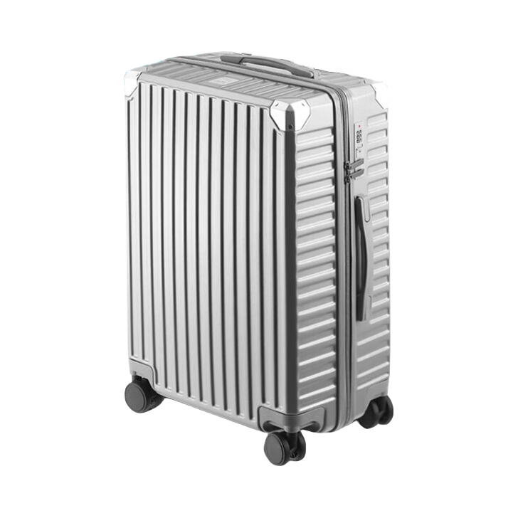 💎24寸刚好能登机,箱体是那种有光泽的银,不廉价还耐脏,刮了几道也不明显。 💎内里分层超贴心,我把内衣、书本分开放,找东西不用翻半天。拉杆拉着很顺,滚轮静音到离谱,在图书馆拖都不怕吵到人。上周回家装了一箱子零食和衣服,密码锁拧着也顺手,安全感拉满。 💎学生党不用买贵的,这只颜值实用度都在线,性价比绝了!