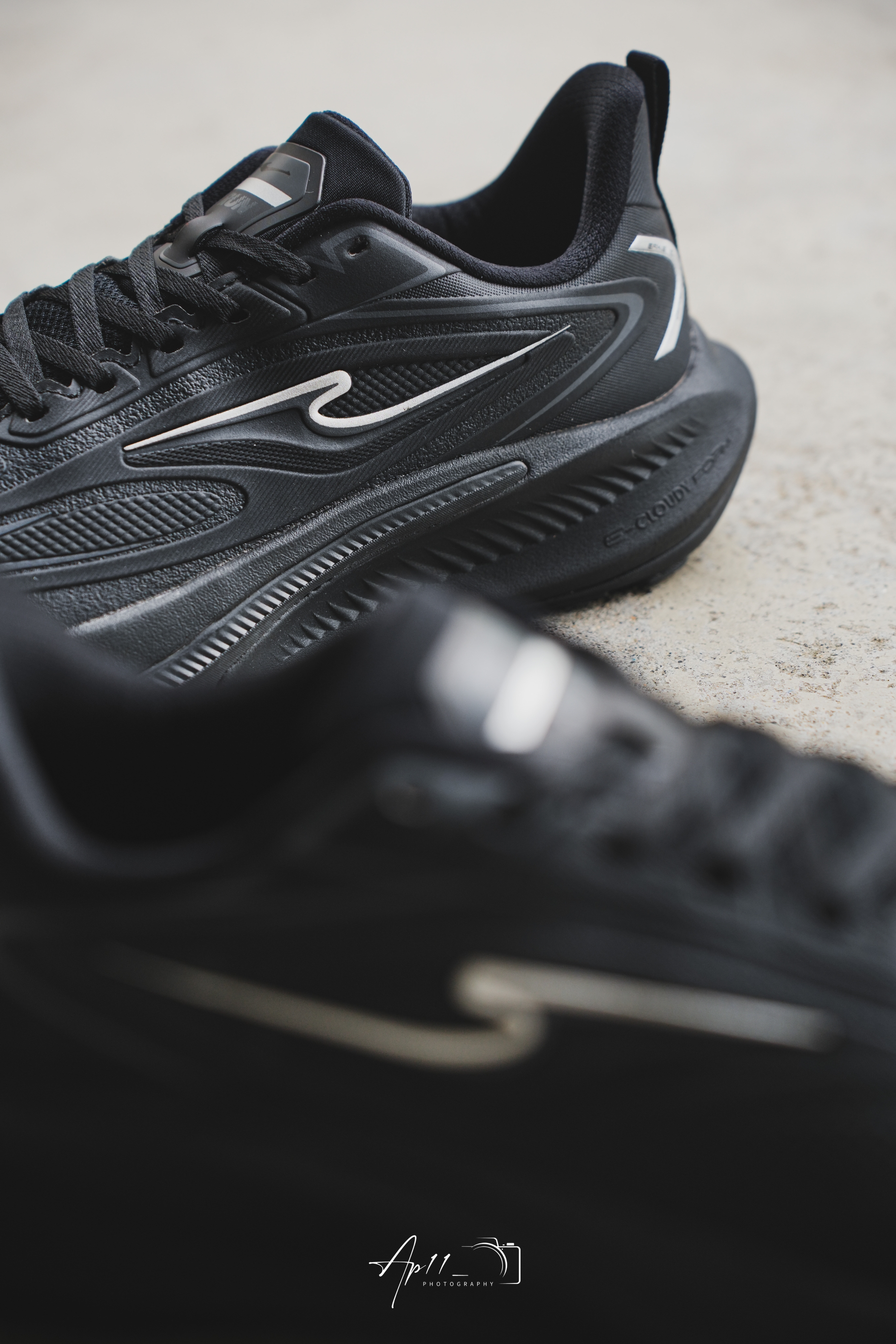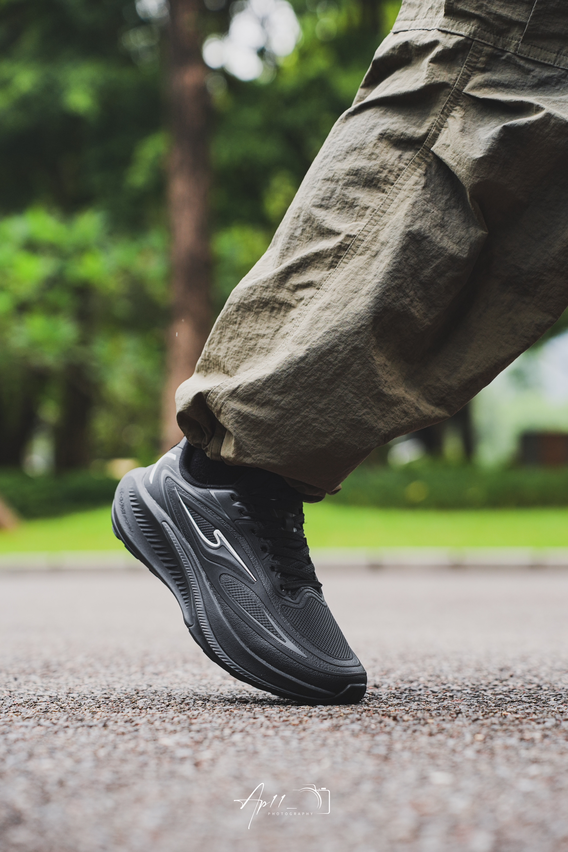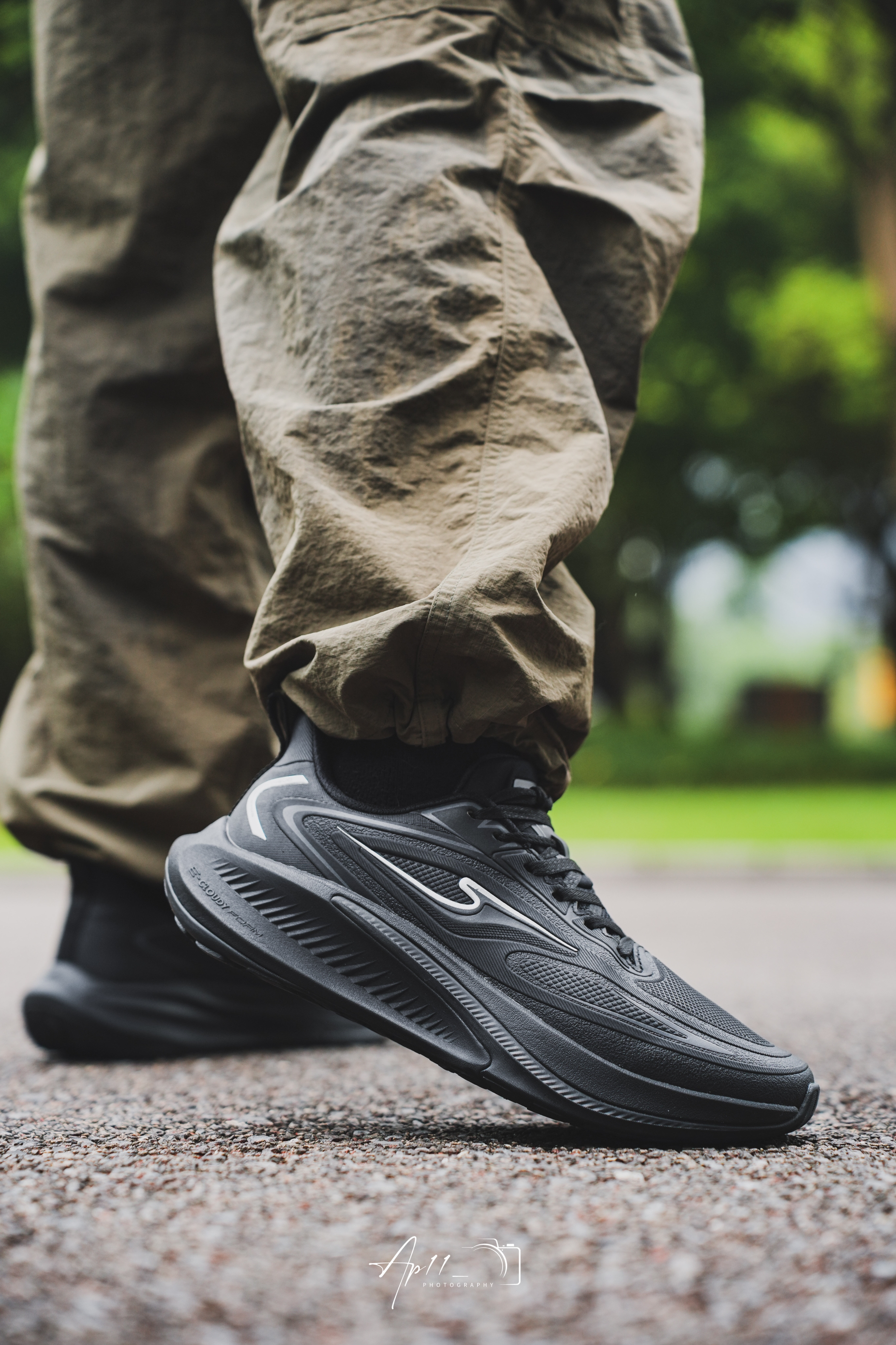 实用主义黑色鞋子get! 鞋身是all black的设计, 加上了灰色的细节点缀。 简约又不失高级感。 鞋身用到流线型的设计, 上脚的运动感十足。 脚感轻盈舒适加上轻质的厚底增高 黑武士的配色也是足够的百搭了。 在日常通勤或是慢跑运动中也是挺合适的。 整体的松弛感拉满!